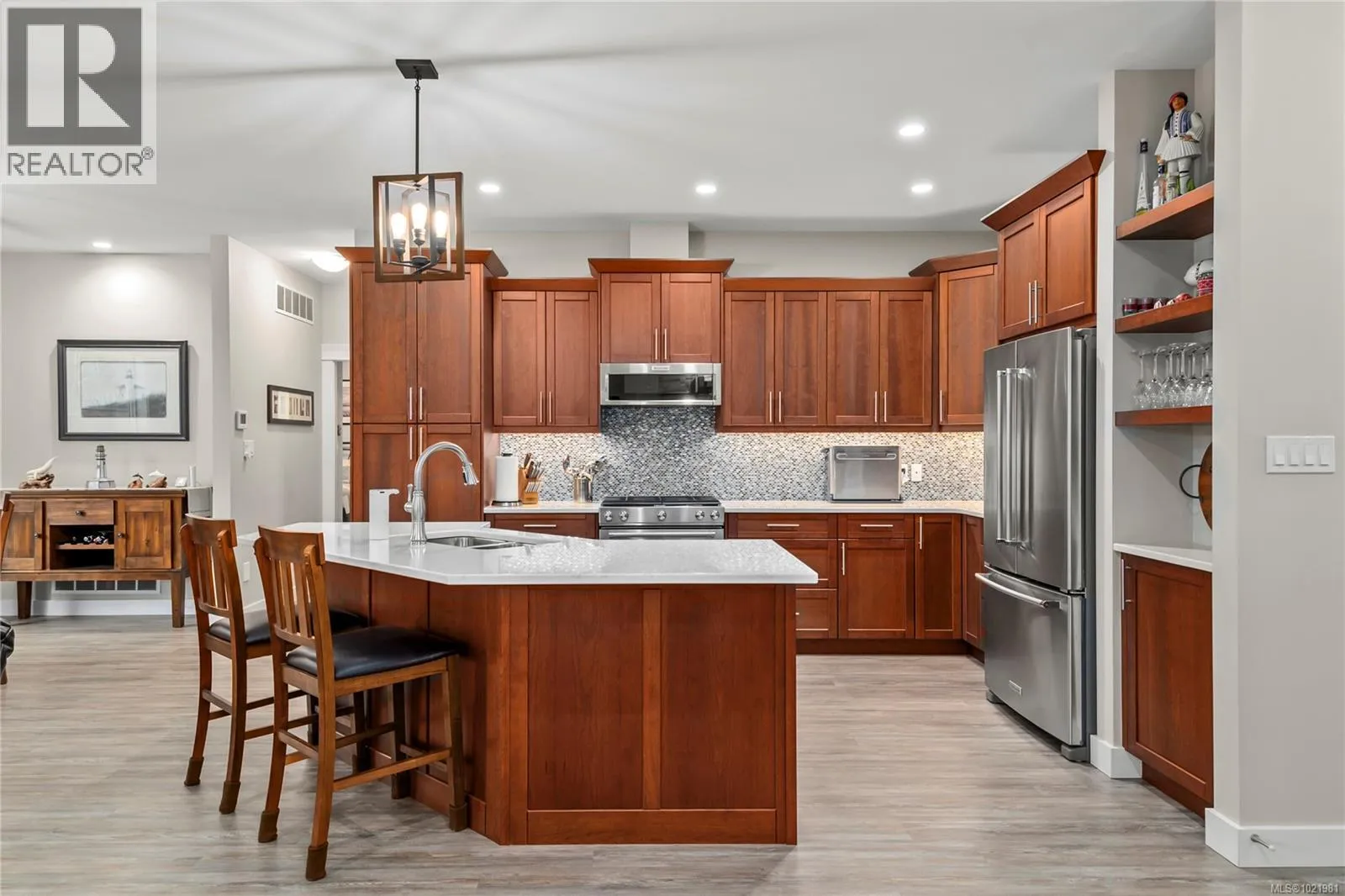 15 Nikola Road is ready to welcome you home- This like-new rancher has been beautifully maintained and offers exceptional open-concept living with vaulted ceilings, quality finishes and and a cozy gas fireplace. The kitchen boasts rich wood cabinetry, quartz countertops, a large island, lots of counter space and KitchenAid stainless appliances. The primary suite features a huge walk in closet and a thoughtfully designed ensuite bathroom. The front bedroom, currently being used as an office is versatile and spacious. Outside, enjoy plenty of parking, with access to the back on both sides, providing space for your RV and/or boat! The fully fenced yard is exceptionally private, low maintenance and backing onto green space. With additional features such as irrigation, built-in vacuum, and gas line to the patio, this home combines comfort, style, and practicality. Centrally located close to trails, shopping, and all amenities Campbell River has to offer. (id:27476)