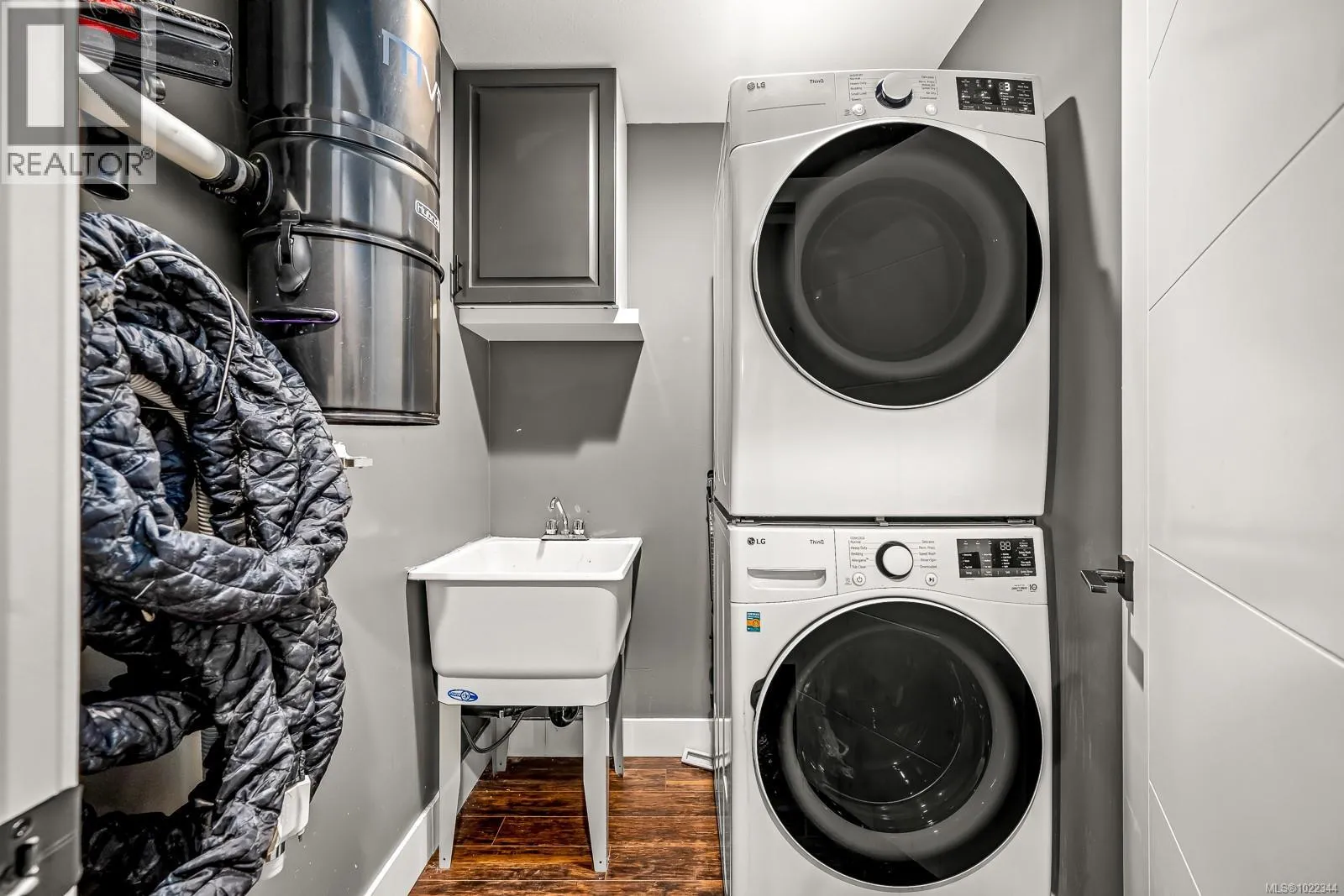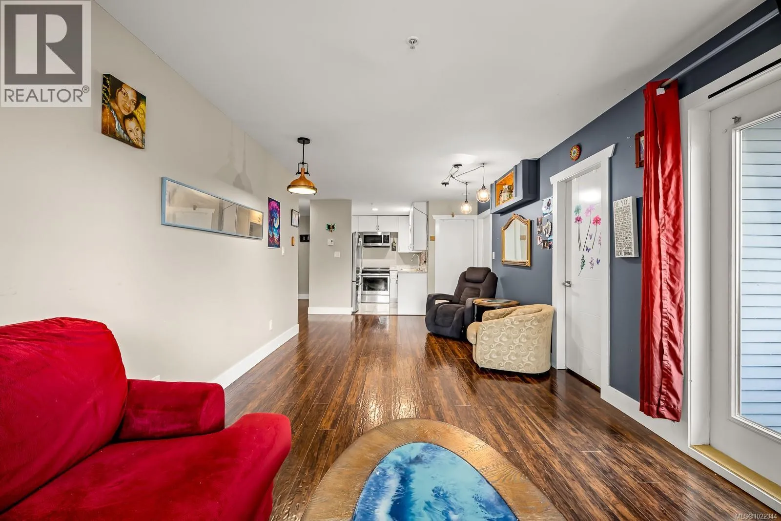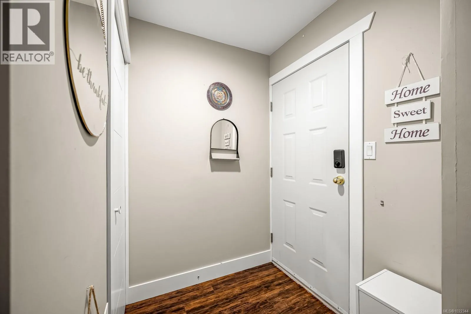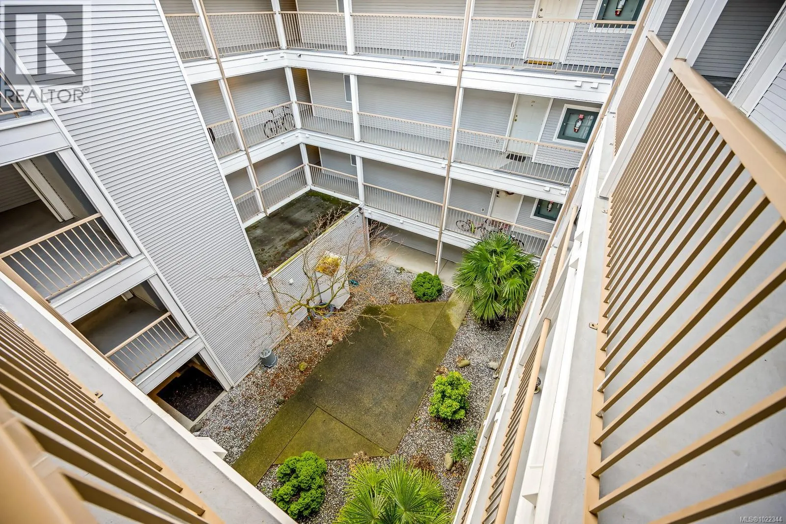 Top-floor, updated northeast corner condo with ocean and mountain views. This spacious 2-bedroom plus den home features a custom built-in electric fireplace with tiled feature wall, central vacuum system, a vanity sink within the walk-in closet, and new Washer & Dryer installed in 2025. The separate den provides ideal space for a home office or additional storage. The unit has updated flooring and trim along with lighting and plumbing fixtures. The kitchen has updated cabinetry, countertops, and appliances, and the bathroom features a modern redesign with a tiled shower. Updated interior doors and hardware complete the contemporary feel. Enjoy ocean views from the living room window seat and the private top-floor patio. The building offers elevator access, condo units also have fire sprinkler system, allows rentals, and permits one pet. Ideally located just one block from the hospital, close to shopping, schools and from downtown. (id:27476)