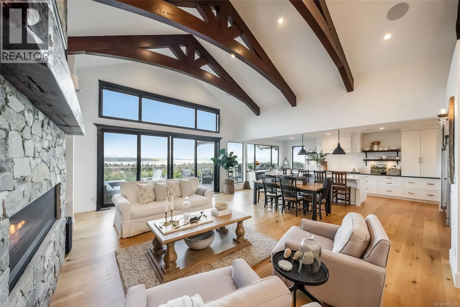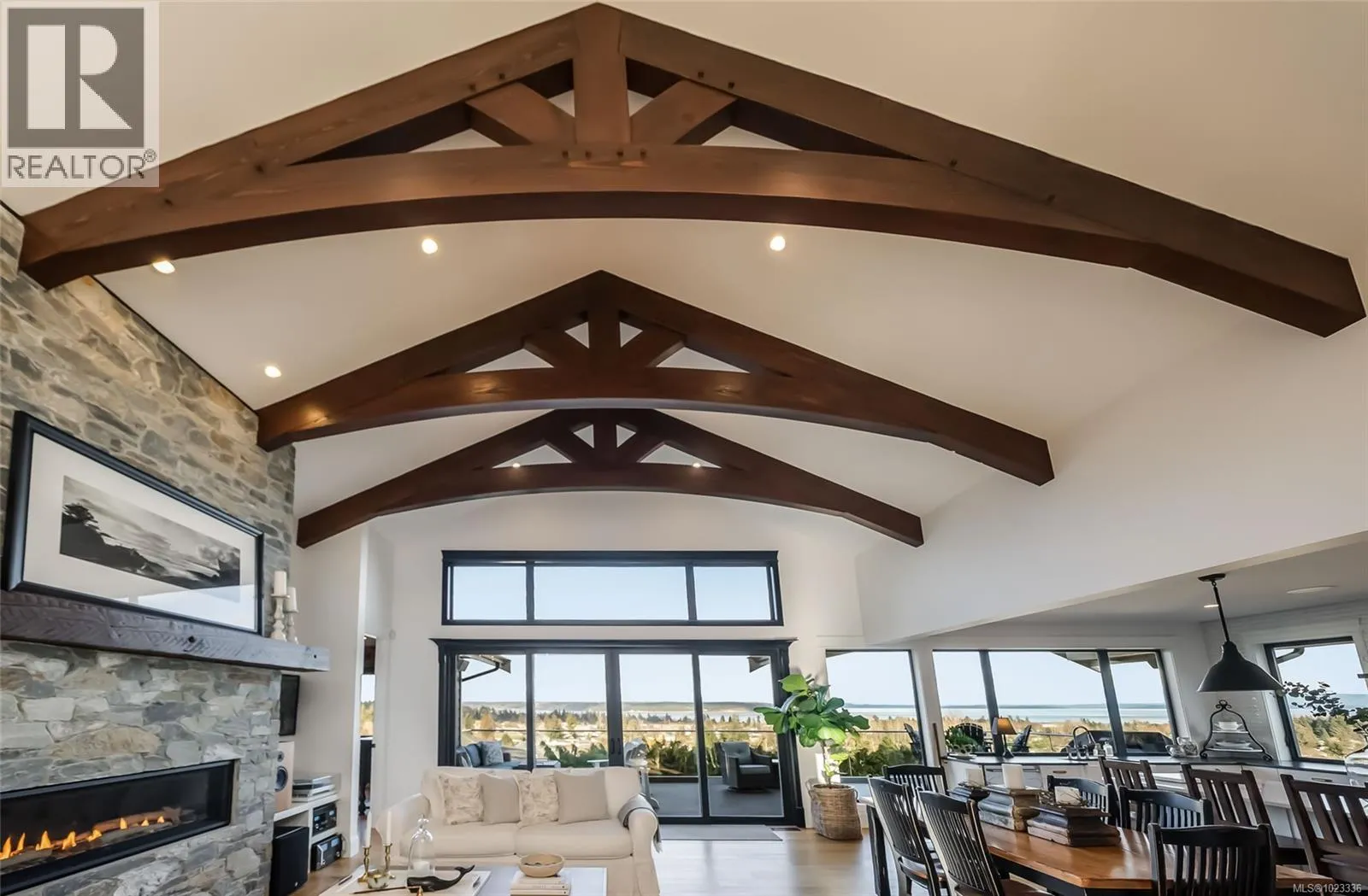 This breathtaking custom-built home was designed with intention and finished to perfection by Twelve Oaks Construction Ltd. offering panoramic ocean views that will leave you speechless. The living room is a showstopper, with vaulted ceilings showcasing old-growth custom curved exposed trusses and a sleek linear gas fireplace framed in real stone. The kitchen is a chefâs paradiseâsprawling and stylish, with a shiplap ceiling, an oversized quartz-topped island, a full-size fridge and freezer, a Wolf six-burner dual-fuel range, a glass-front entertainment fridge, and a walk-in prep pantry. The primary suite feels straight out of a design magazine, featuring a reclaimed brick accent wall that frames the ocean view window, plus a spa-inspired ensuite with a walk-in tiled shower and a freestanding soaker tub. Downstairs, the bright walkout basement impresses with 10-foot ceilings, a cozy family room with a gas fireplace and entertainment bar, a soundproof theatre room, a secondary primary suite with its own ensuite, a spacious guest room, a full bathroom, and a home gym. The attention to detail in this home is truly unmatchedâit has to be experienced to be fully appreciated. Step inside and fall in love. (id:27476)