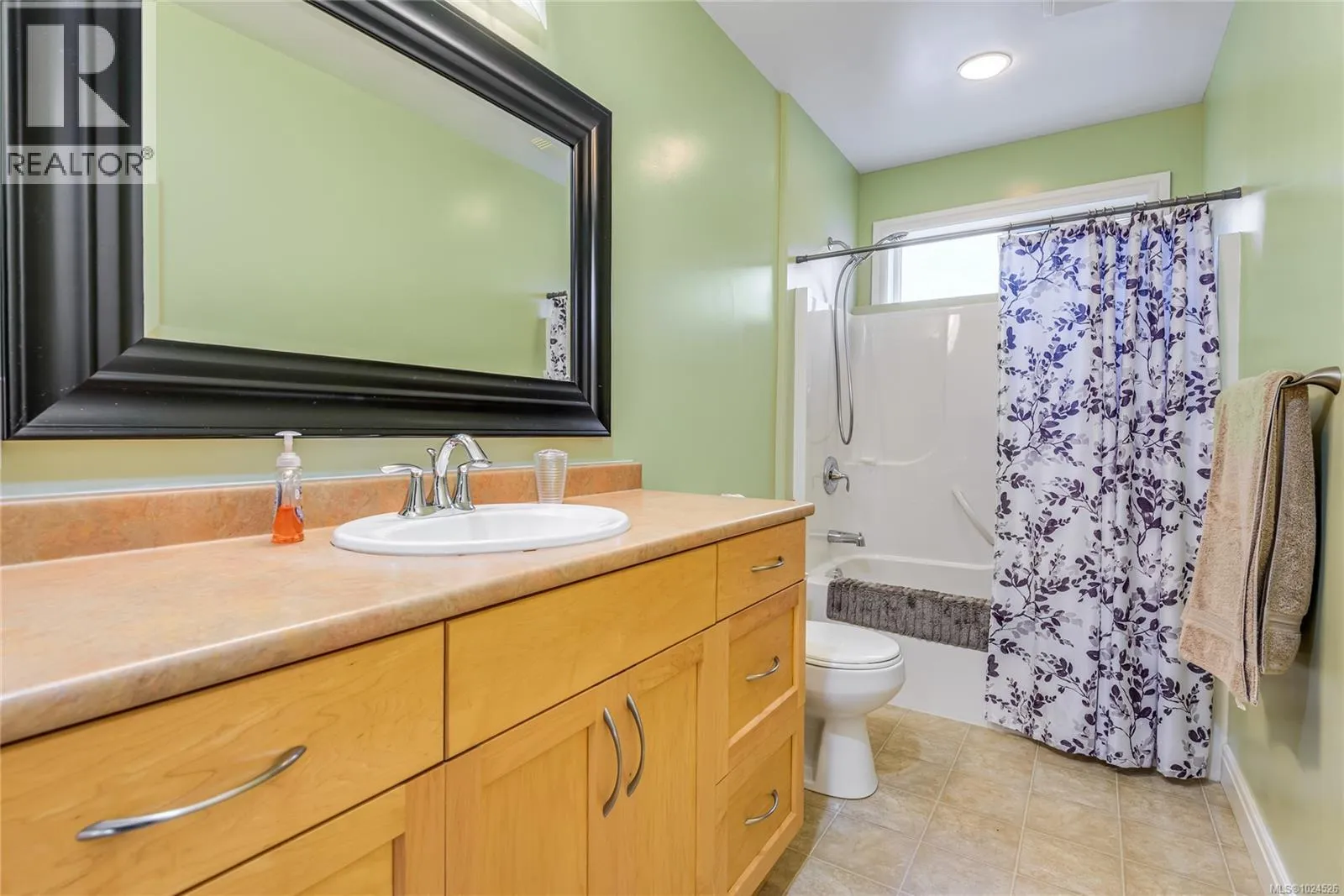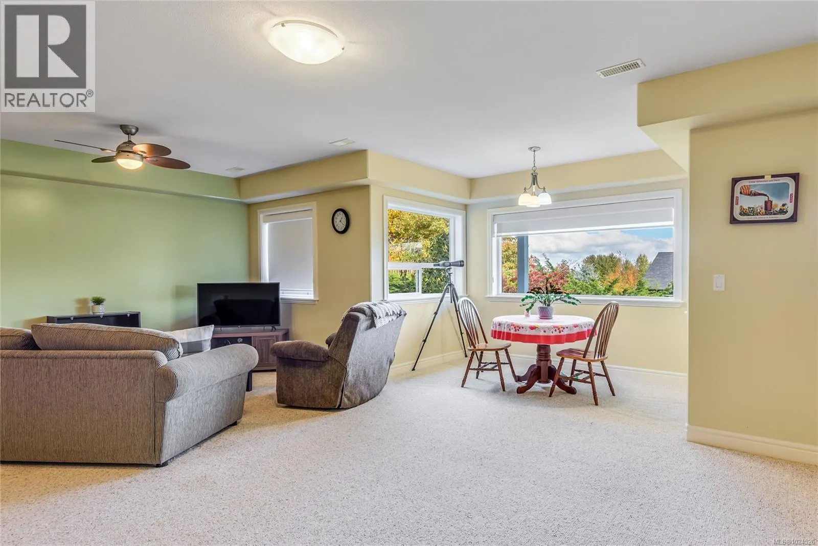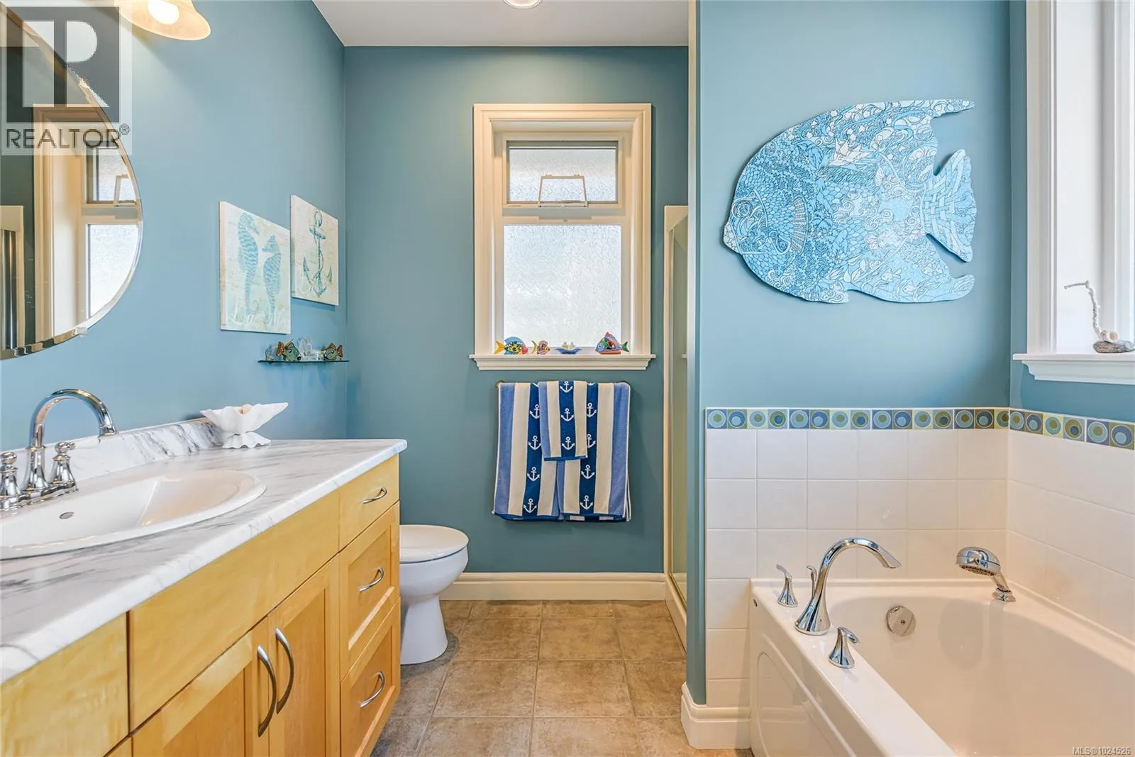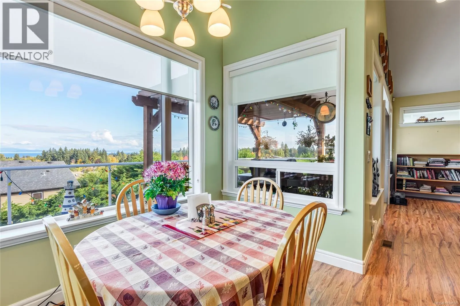Large family home with Ocean and Mountain views with a 1 bedroom suite! This main level entry home lives like a rancher with 3 bedrooms and 2 full bathrooms on the main floor. The great room concept is bright, with lots of natural light and expansive high vaulted ceilings.. The kitchen has been updated with matte white quartz counters and is perfect for a tall chef. The living room has a nice and cozy gas fireplace, perfect for those winter nights. French doors out to a beautiful covered deck that has gorgeous wooden pergola and looks out to views of the ocean and beyond. The primary bedroom, captures a nice view as well, and has a walk in closet with a 4pc ensuite with separate soaker tub and shower. The downstairs suite is self contained with its own laundry, and full kitchen. The living area is huge, with access to a covered patio and back yard. There is also a large unfinished storage and mechanical room the entire width of the home. This is a must see, Don't wait! (id:27476)