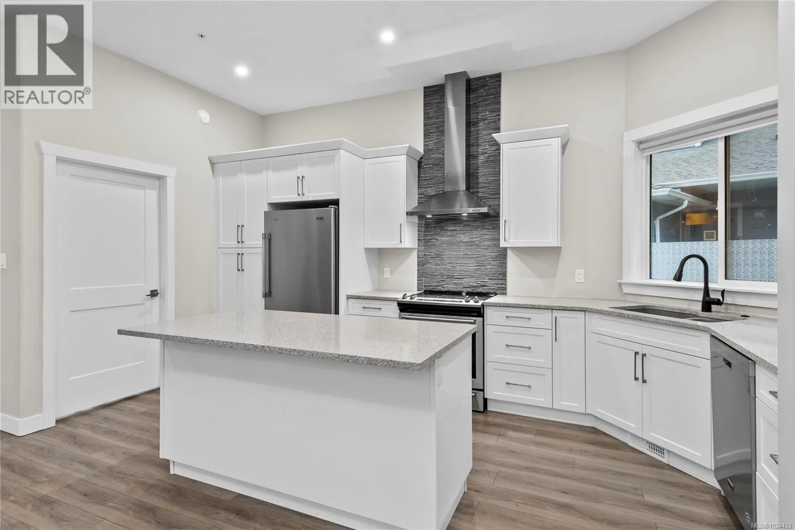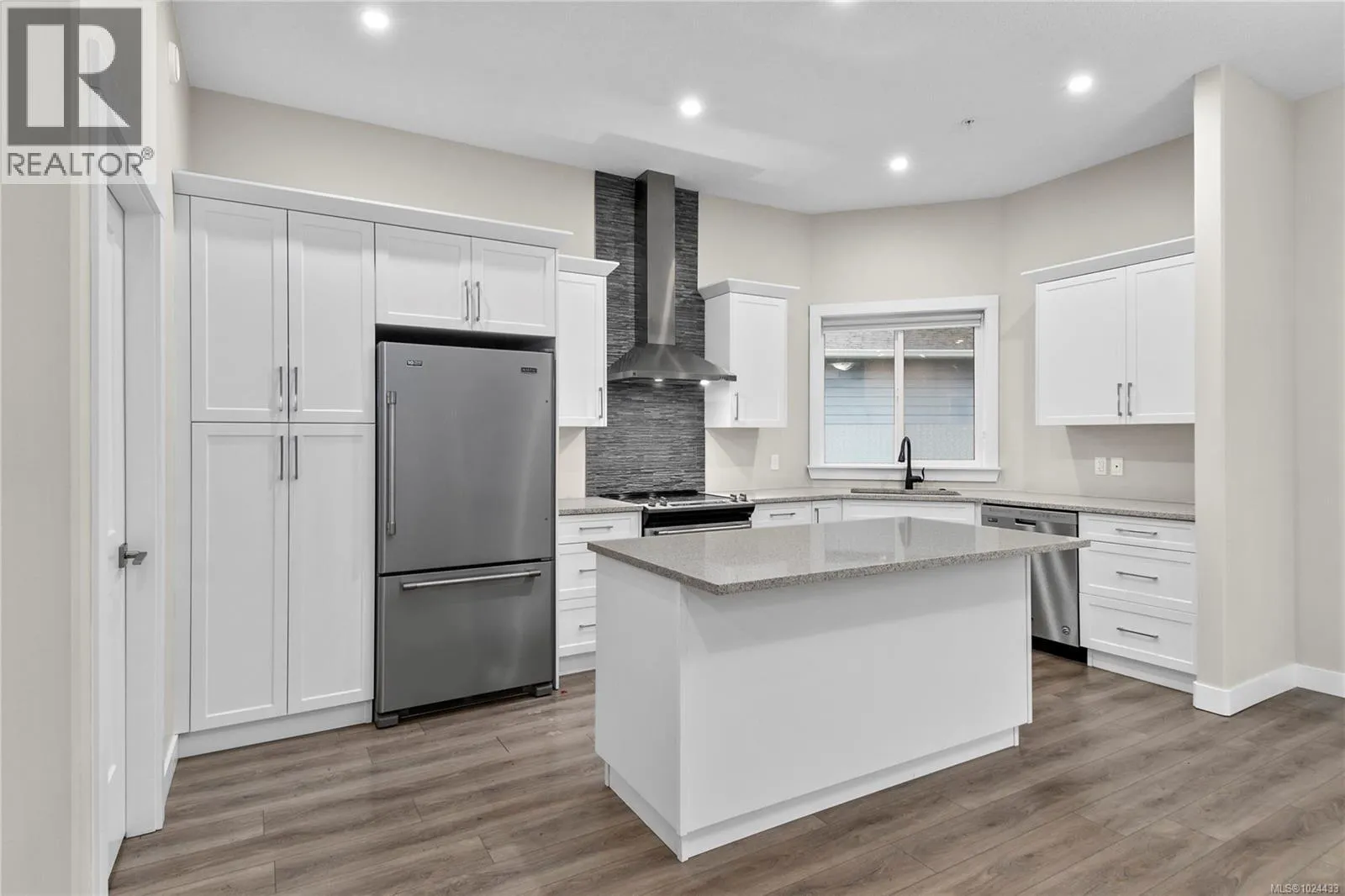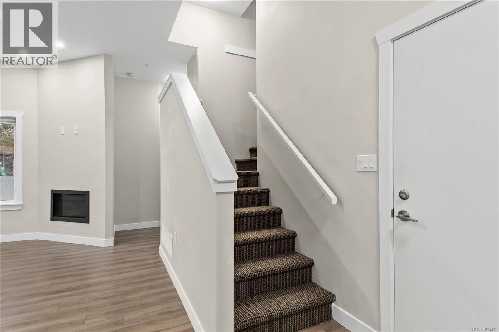 Welcome to this newer, thoughtfully designed townhome perfectly situated in an ideal location backing onto peaceful green space. Enjoy the rare combination of privacy and convenience, with nature at your doorstep and everyday amenities just minutes away. Inside, the home offers modern efficiency and comfort with a heat pump for year-round heating and cooling, hot water on demand, and a cozy gas fireplace that anchors the main living area. The open-concept layout is bright and functional, ideal for both everyday living and entertaining. The main floor hosts the primary bedroom with a walk-in shower and walk-in closet. You will love quartz countertops throughout, easy care laminate floors, and a single garage. This low-maintenance home delivers contemporary style, energy efficiency, and a tranquil settingâan exceptional opportunity for those seeking modern living in a prime location. Strata allows all ages, and one cat or dog. (id:27476)