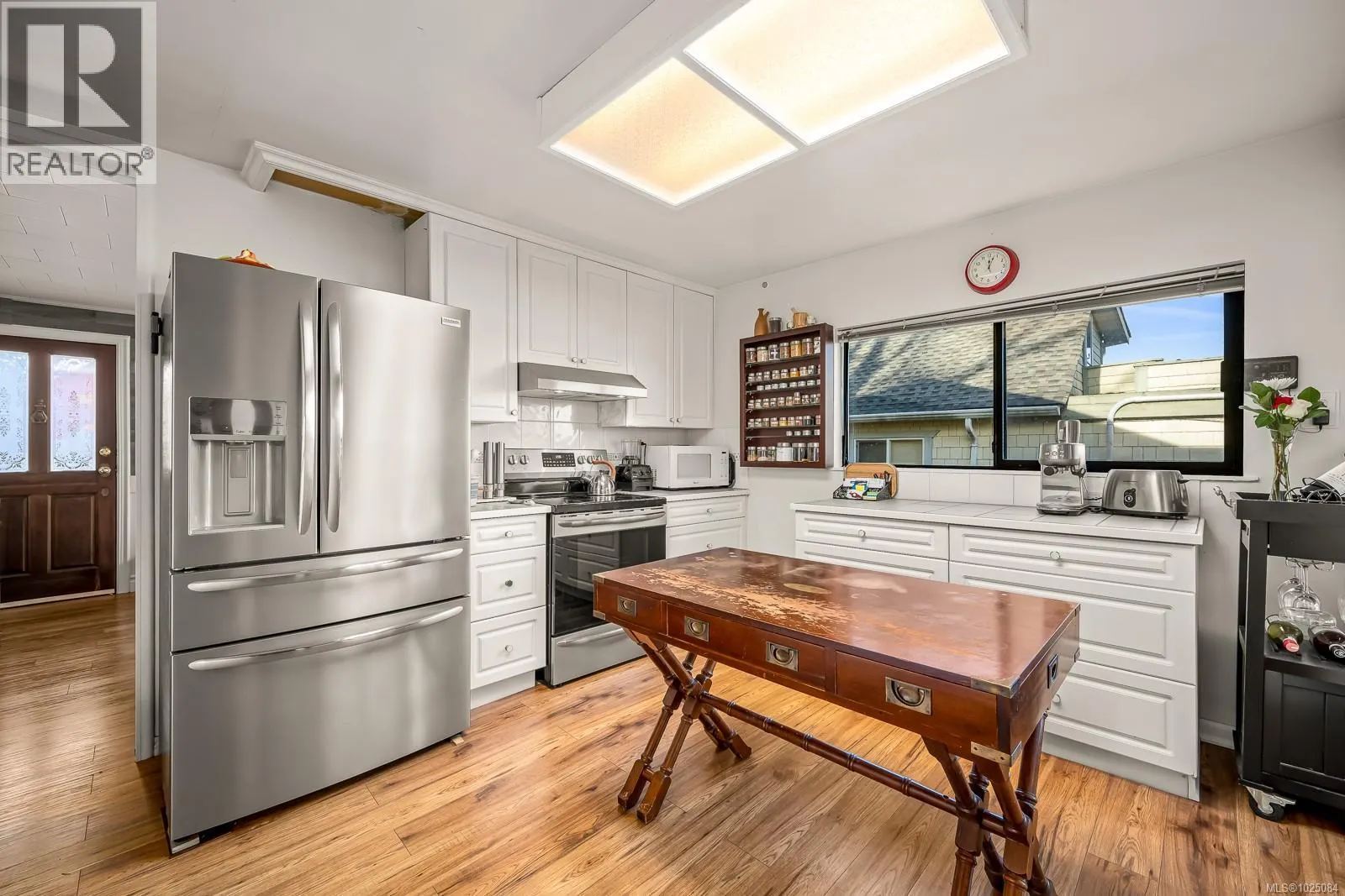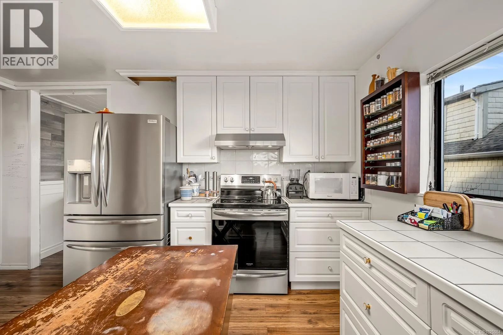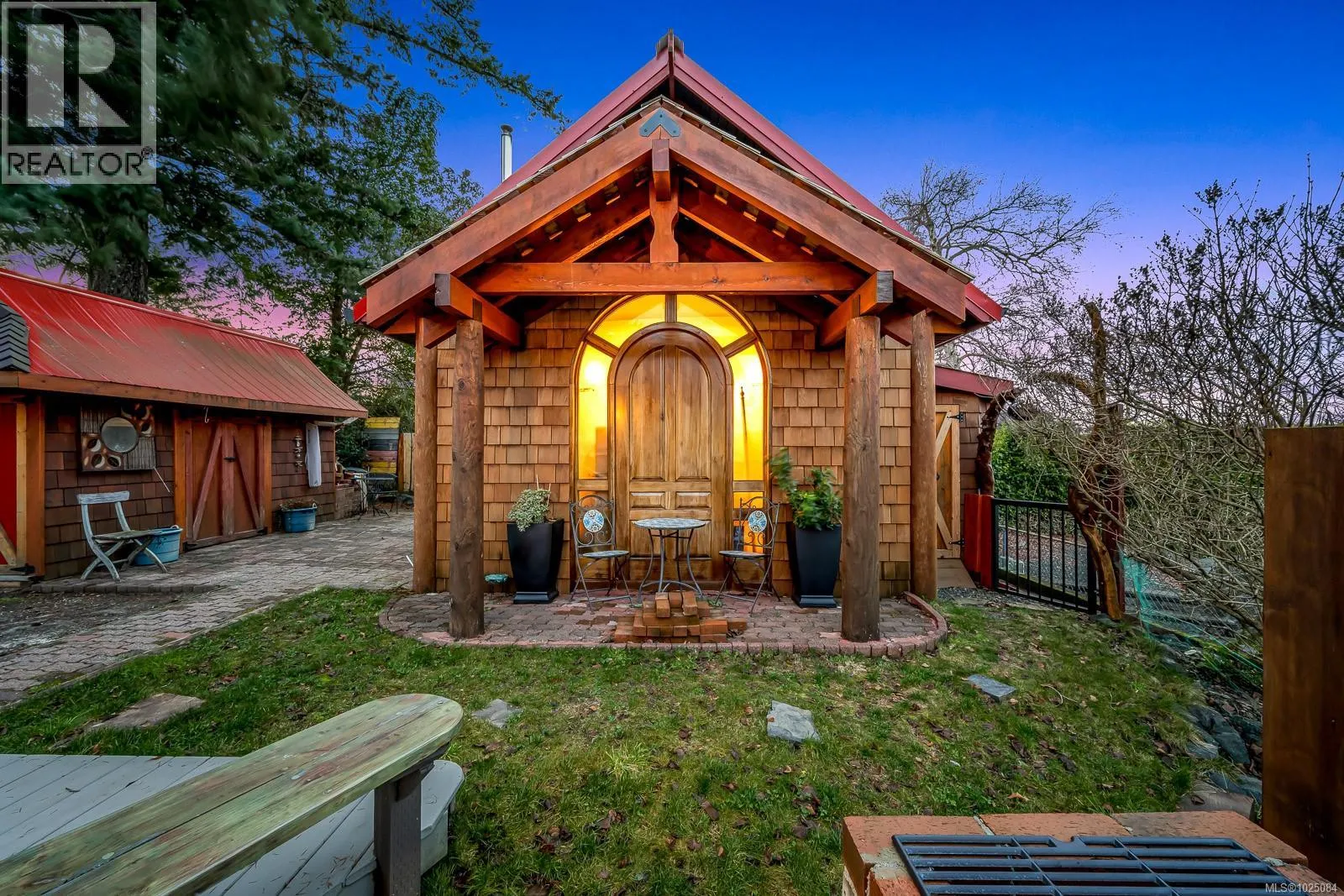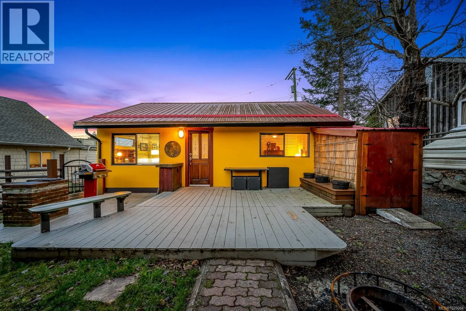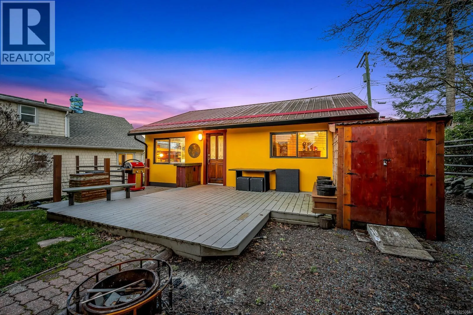 URBAN LIVING WITH VIEWS, CHARM & CHARACTER! This one-of-a-kind 1951 home is full of surprises and unforgettable panoramic views ~ ocean, mountains, city, and even Quadra Island! Inside, 807 sq ft of bright, playful space features a kitchen with stainless steel appliances, pantry, and a cozy window seat, two bedrooms, a custom bathroom, and a funky living room that flows directly to the backyard. The backyard is a showstopper: a custom stunning 18â3â x 14â workshop with wood stove and loft with potential living space, a mini garage, two storage sheds, and a deck with custom planters, built-in bench, and a Mexican hibachi grill ~ perfect for entertaining. Adding whimsy and a smile, an 8â carved wooden Gandolph with torch lights up to greet you at the front. Nestled on a quiet dead-end lane with RV parking, this rare & unique gem blends charm, creativity, and community with views that wow at every turn. (id:27476)