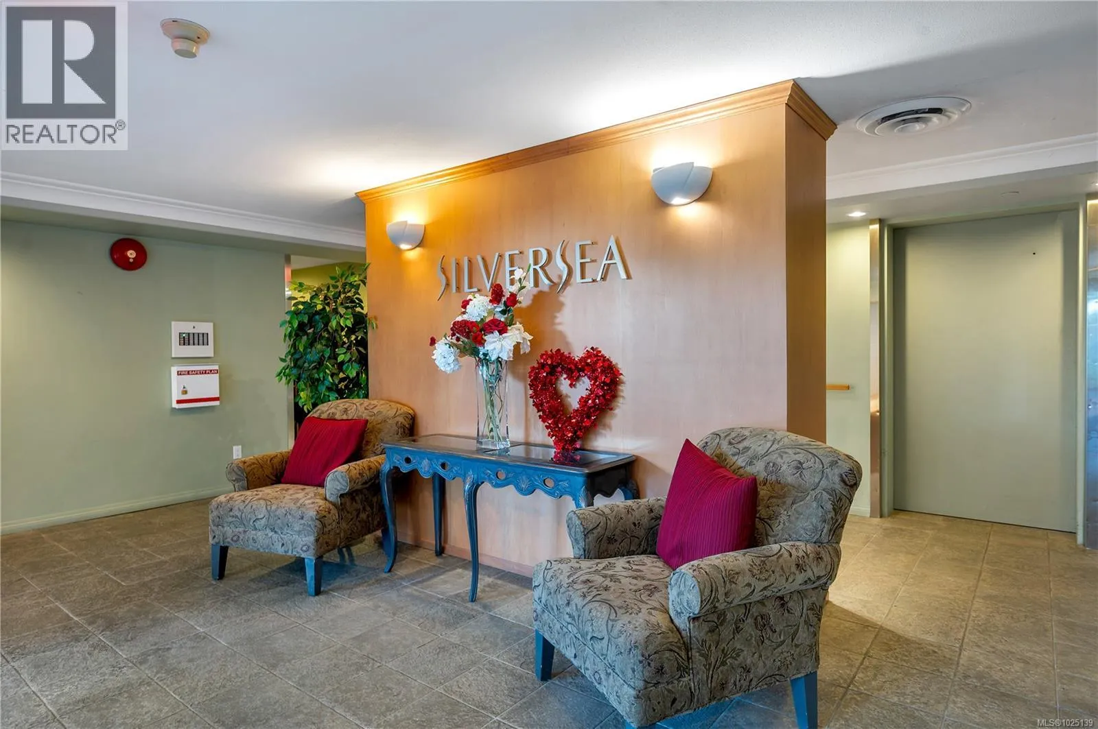 Lovingly cared for by its original owner, this bright top-floor 2-bedroom plus den, 2-bath suite offers stunning southern exposure and a warm, inviting atmosphere. The Silver Seas complex welcomes you with charming curb appeal, manicured landscaping, elegant lobbies, a fitness room, community lounge, guest suite, and secure underground parking. Inside, vaulted ceilings and a wall of windows flood the living and dining areas with natural light, enhanced by fresh flooring, paint, and updated fixtures. The best seat in the home is at the dining room table, where you can sip your morning coffee while watching the sun rise over the ocean to the east â a breathtaking start to every day. To the west, a tranquil view of trees and hillside creates a peaceful, natural backdrop where birds and deer are frequent visitors. The spacious sundeck, accessed from both the living room and the primary bedroom, is perfectly positioned to soak up the homeâs sunny southern exposure â ideal for lounging, container gardening, or simply enjoying the fresh air. Complete with in-suite laundry room, plenty of storage, and two designated parking spaces, this beautiful condo welcomes people of all ages and one furry friend. This residence offers the unique balance of privacy, space and location making it an exceptional place to call home. (id:27476)