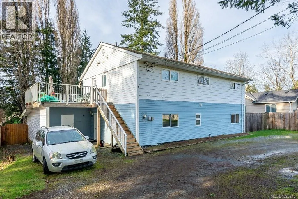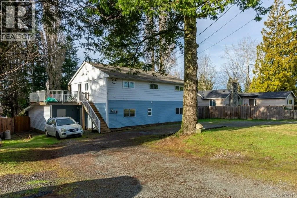 Centrally located two story duplex-style house with upper and lower units, on a large residential lot. A circular gravel driveway provides abundant parking options. The home sits back from the road and the rear yard, with abundant lawn and mature trees at the back, is fully fenced. The lower residence is a 2 bedroom, 1 bathroom home with its own laundry. This attractive unit has large windows in the kitchen and a glass sliding door, which allow for lots of natural light into the living areas. The sliding door provides access to the backyard and patio. This lower unit has been freshened up with numerous updates in the last year, including new coat closet and bathroom doors, new entry door, fresh paint in the common spaces, laminate vinyl plank flooring in the second bedroom, and tiled floor in the laundry closet. A carport provides access to the lower residence as well as to a storage room at the back of the carport. The upper level has a large side deck over the carport that wraps around the back of the home, with the main entrance off the side deck. The deck enjoys south-west exposure, making it a nice bright space. The upper level is a 3 bedroom, 1 bathroom residence with its own laundry. The kitchen, dining and living space looks out over the backyard, with lots of natural light. The living room floor was redone about a year and a half ago. A peninsula provides separation between the kitchen and open concept dining and living space where a sliding door leads out to the deck. There is no connecting door between the two levels and they are accessed completely separately. While living like a duplex, the two units share a BC Hydro account and a hot water tank. This home would be ideal for multi-generational families. One of the units could also be used as an in-law suite, or as a mortgage helper rental unit. (id:27476)