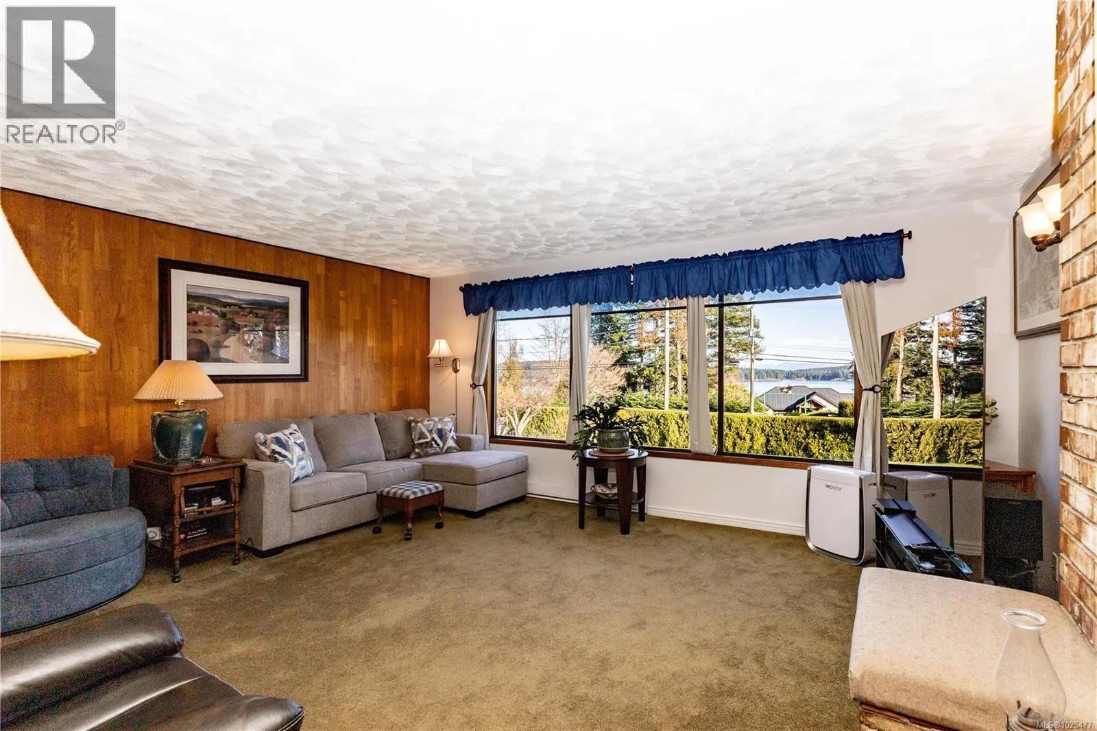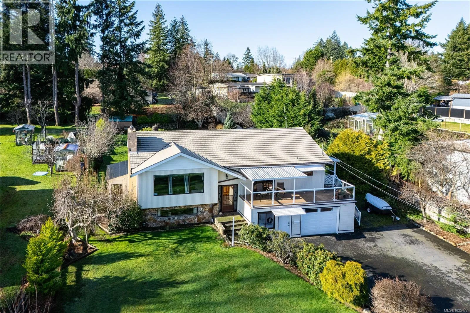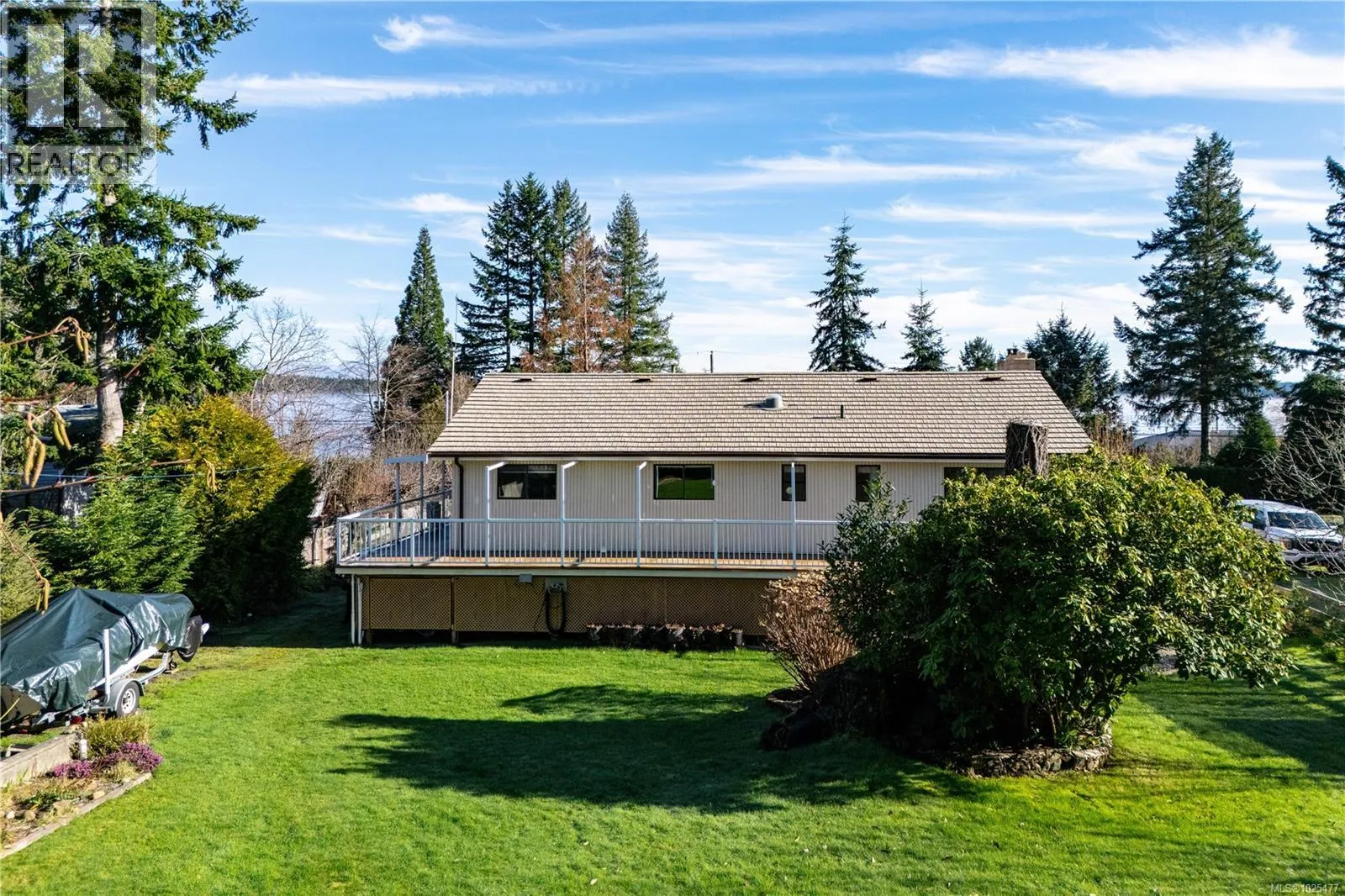 Beautifully maintained family home on an almost 1/2 acre lot with an ocean view in the Painter Barclay neighbourhood. This well-kept 2590 sq ft, two-level, 4 or 5 bedroom, 2 full bath home, offers plenty of updates, nice paint, updated lighting, a remodeled kitchen with nice appliances, some laminate floors, and a lifetime metal roof. There are 3 bedrooms upstairs with the primary taking advantage of the almost full wrap around deck with slider access and a cheater ensuite that you will love with a stand up shower, double sinks, jetted soaker tub and heated floors. The living room and family room (down) both have cozy gas fireplaces. The lower floor features another full bath with a Finnish sauna and a family room, den (could be the 5th bedroom), 4th bedroom, storage and access to the true double car garage. Beautiful landscaping on the .44 acre lot with front and back garden drip irrigation, plenty of fruit trees, flowering shrubs, and landscape cloth under gardens for easy care. Extras include: paved driveway with timed lighting, full service RV parking with 30-amp power, 2x sani-dump and water, greenhouse/potting area for the green thumb. This is a peaceful area of Campbell River with nearby restaurants at Dolphins Resort and Painters Lodge, open year round. All just a short 7-minute drive from downtown. On all city services (water and sewer). (id:27476)