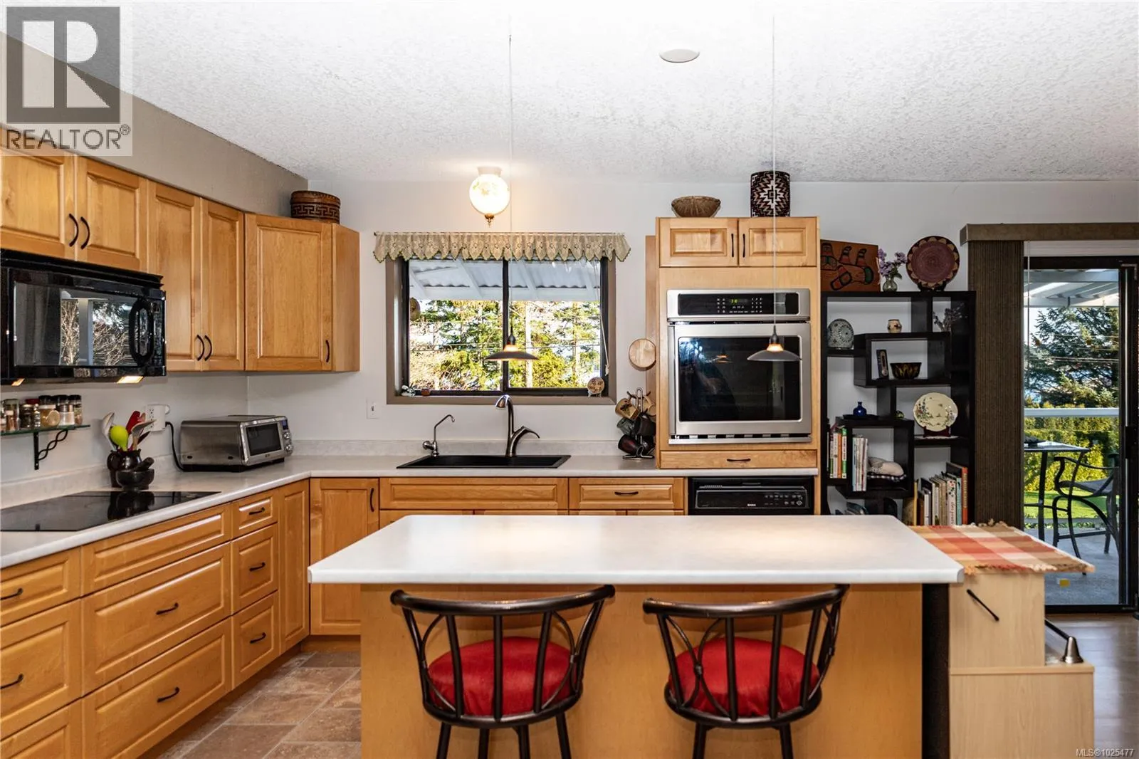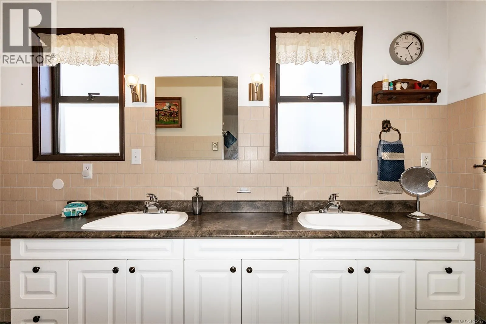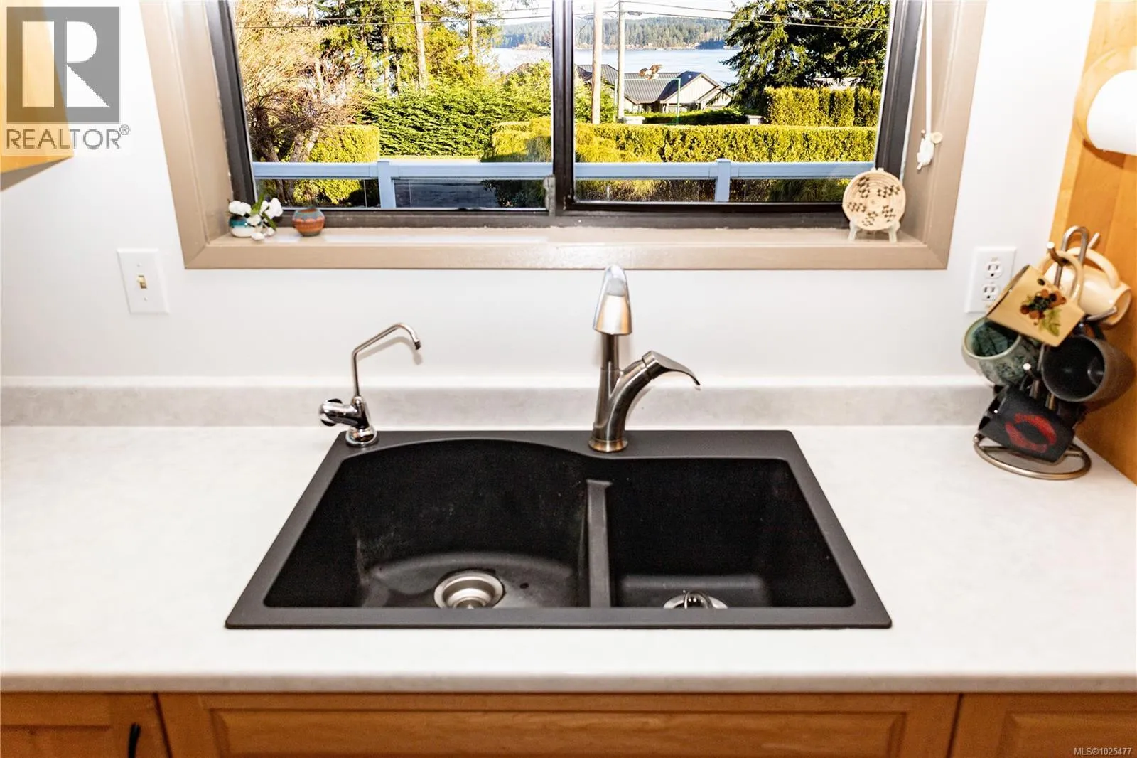 Beautifully maintained family home on an almost 1/2 acre lot with an ocean view in the Painter Barclay neighbourhood. This well-kept 2590 sq ft, two-level, 4 or 5 bedroom, 2 full bath home, offers plenty of updates, nice paint, updated lighting, a remodeled kitchen with nice appliances, some laminate floors, and a lifetime metal roof. There are 3 bedrooms upstairs with the primary taking advantage of the almost full wrap around deck with slider access and a cheater ensuite that you will love with a stand up shower, double sinks, jetted soaker tub and heated floors. The living room and family room (down) both have cozy gas fireplaces. The lower floor features another full bath with a Finnish sauna and a family room, den (could be the 5th bedroom), 4th bedroom, storage and access to the true double car garage. Beautiful landscaping on the .44 acre lot with front and back garden drip irrigation, plenty of fruit trees, flowering shrubs, and landscape cloth under gardens for easy care. Extras include: paved driveway with timed lighting, full service RV parking with 30-amp power, 2x sani-dump and water, greenhouse/potting area for the green thumb. This is a peaceful area of Campbell River with nearby restaurants at Dolphins Resort and Painters Lodge, open year round. All just a short 7-minute drive from downtown. On all city services (water and sewer). (id:27476)