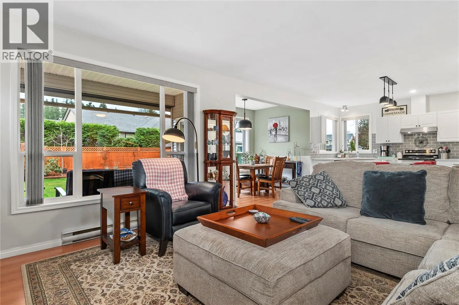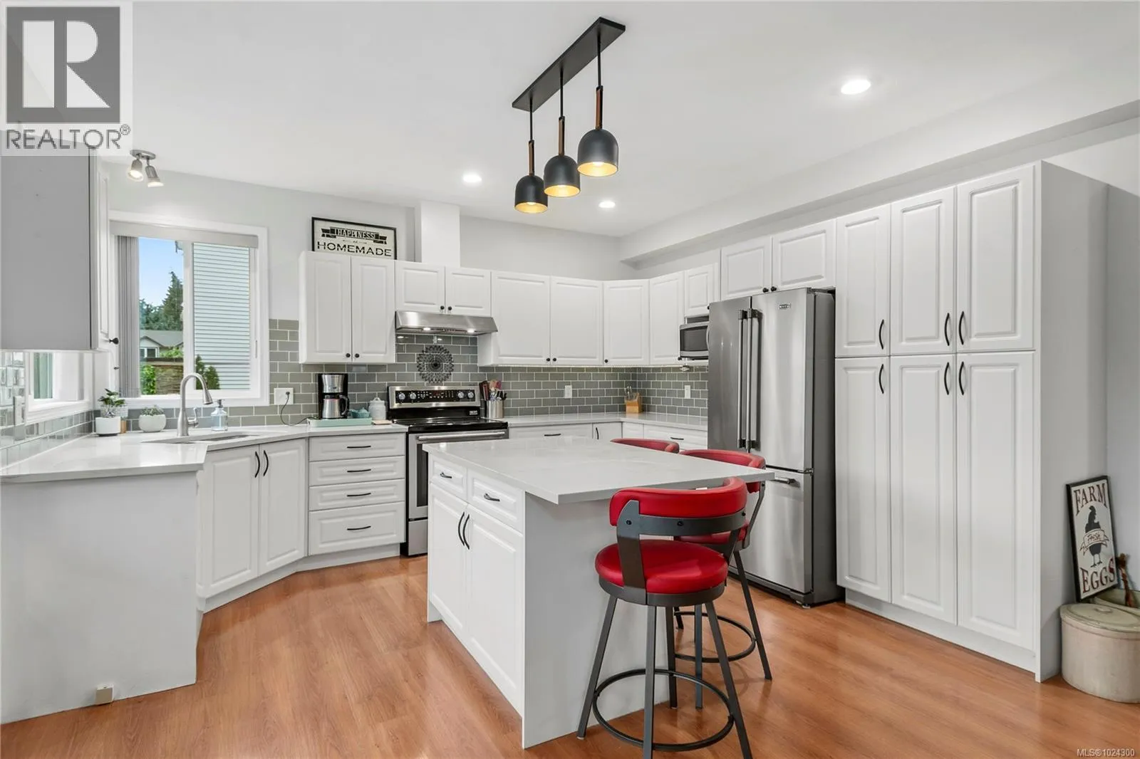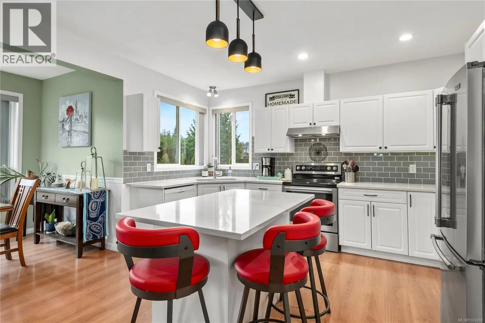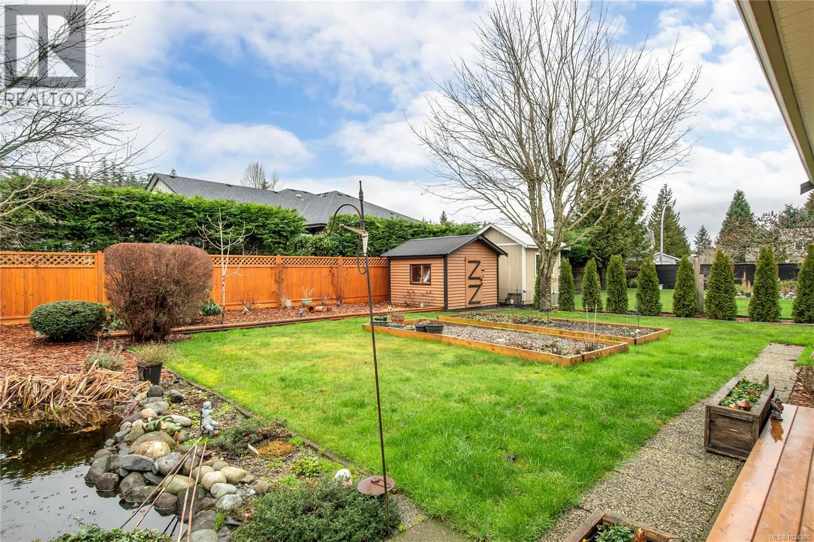 Exceptionally maintained family home located in a sought-after neighborhood. Bright and open living area with a cozy gas fireplace with custom built-in shelving, the kitchen has been updated with a new backsplash and quartz counters. The adjoining dining area opens to a private backyard retreatâperfect for indoor-outdoor living. Upstairs, youâll find three bedrooms, including a generous primary suite with a walk-in closet and a full ensuite featuring a relaxing soaker tub. Lovingly maintained outdoor space with a covered deck overlooking the fully fenced backyard with a tranquil fish pond, abundant perennials, raised garden beds, and a garden shed. Thereâs plenty of room for vehicles and toys with a double attached garage and ample RV parking. Recreation and amenities are right at your doorstep, with the Sportsplex and Beaver Lodge trails as well as the shopping all within walking distance. Conveniently located near all levels of schools, including North Island College (id:27476)