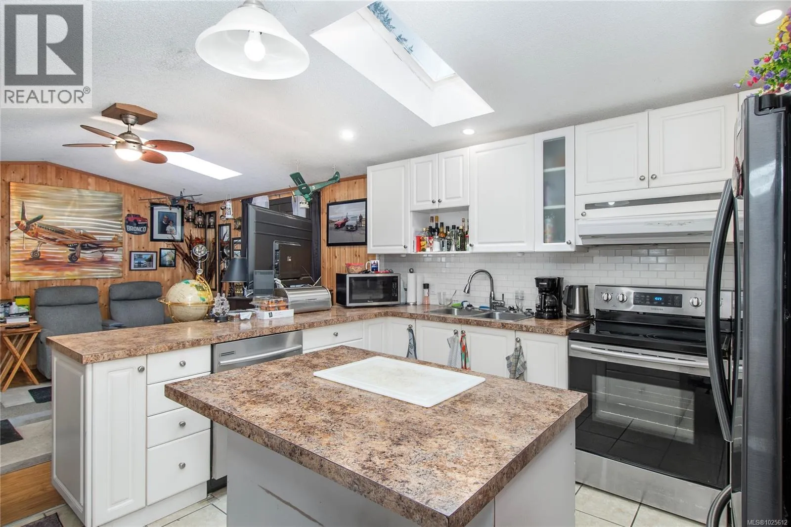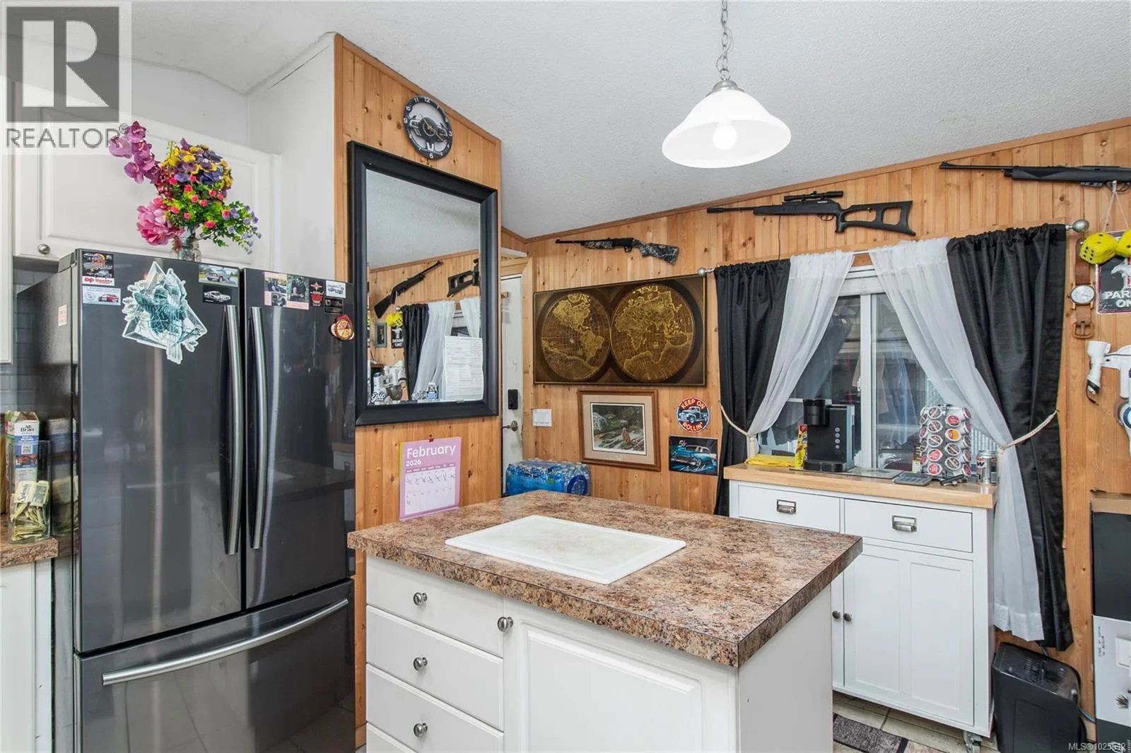 Just outside the main entrance of Quinsam Park, this well-maintained manufactured home offers the perfect blend of privacy and convenience with easy access directly off Detwiler Road. Inside, youâll find an updated kitchen with modern appliances, a newer roof for peace of mind, and comfortable living spaces ready to enjoy. The fully fenced yard is ideal for pets or gardening, and the garage plus storage shed provide plenty of room for tools, toys, or hobbies. A rare location within the park that truly sets this home apart. (id:27476)
