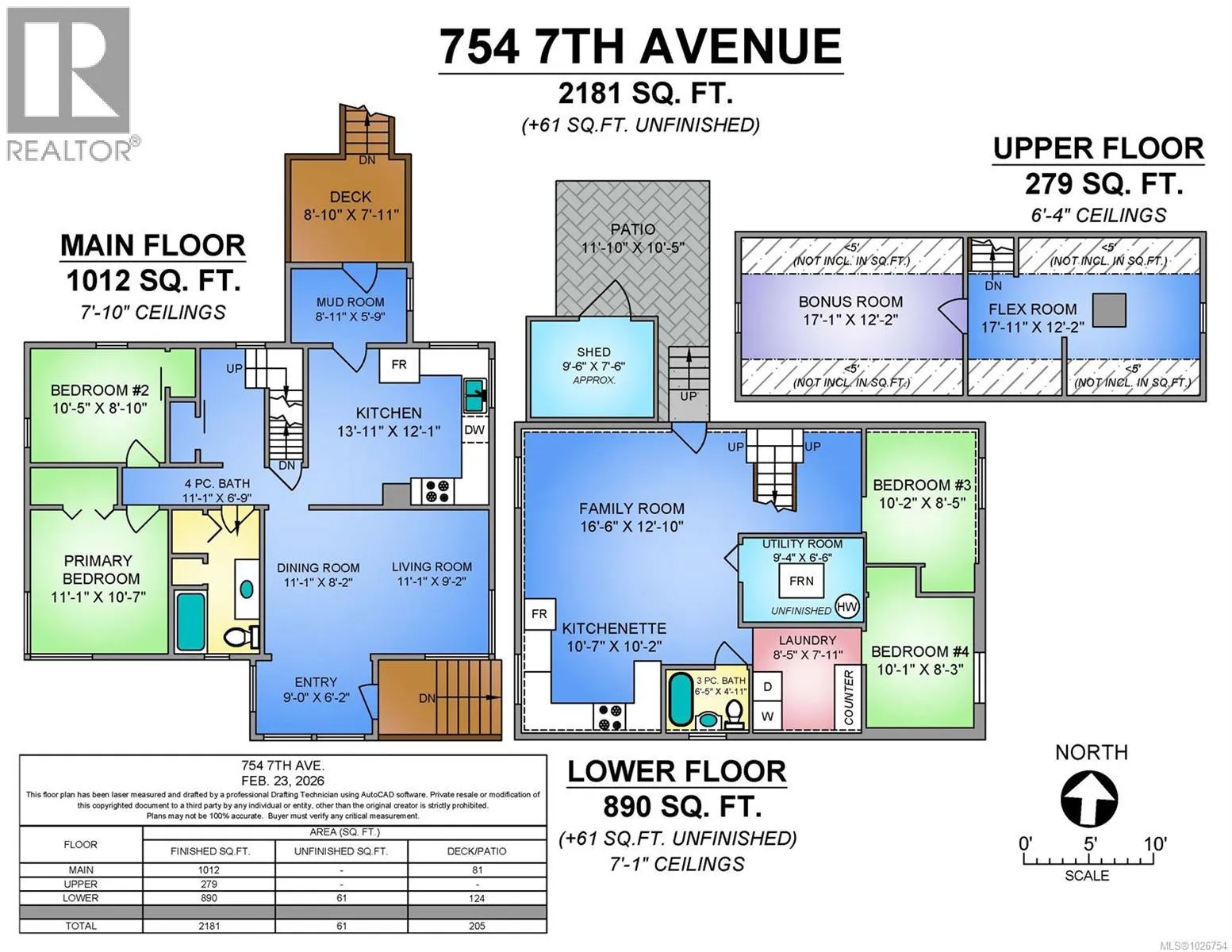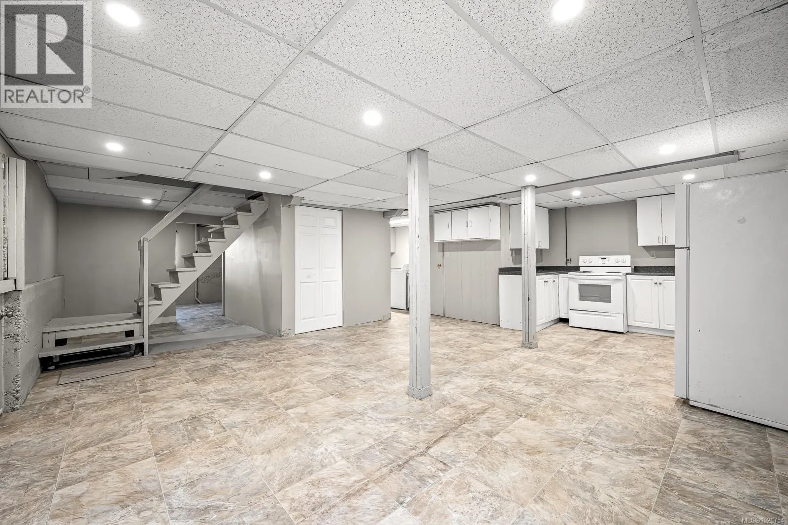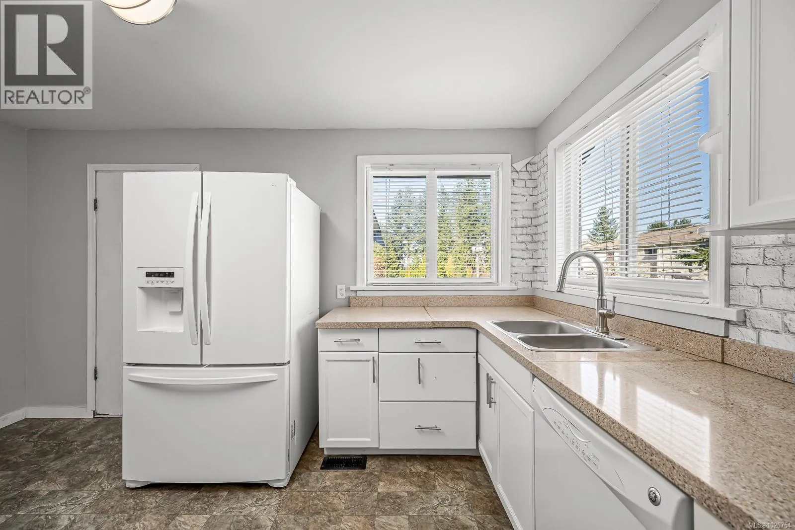 Welcome to 754 7th Ave in beautiful Campbell River. This 4 Bedroom, 2 Bathroom home has space for everyone. The home is centrally located and close to bus routes, schools and all other shopping/conveniences. The main floor offers 2 bedrooms, main bathroom, spacious kitchen and living room all with ample natural light and a character feel. Upstairs are two large loft areas for office space or playrooms. Downstairs is a large family room, 2nd bathroom, laundry, and 2 bedrooms.The second kitchen on the lower floor has cabinets, fridge and a stove (not hooked up) and could easily be utilized as an in-law suite. The yard is fenced and there is ample parking for vehicles and all the toys. Future development potential with RM2 zoning. (id:27476)