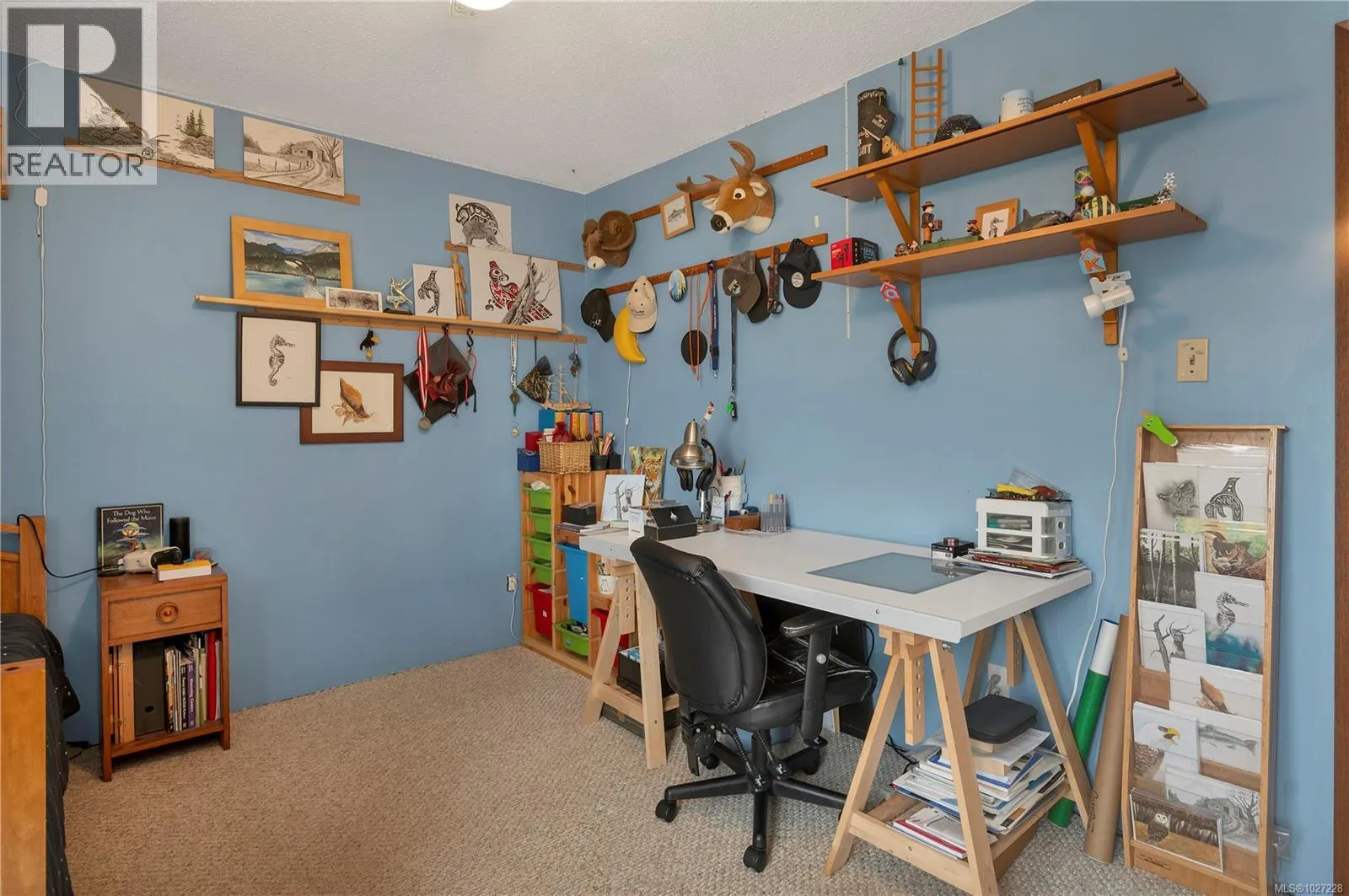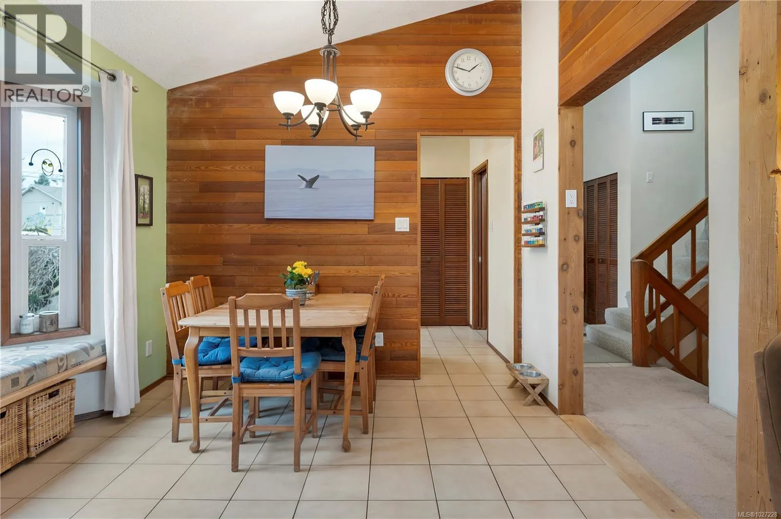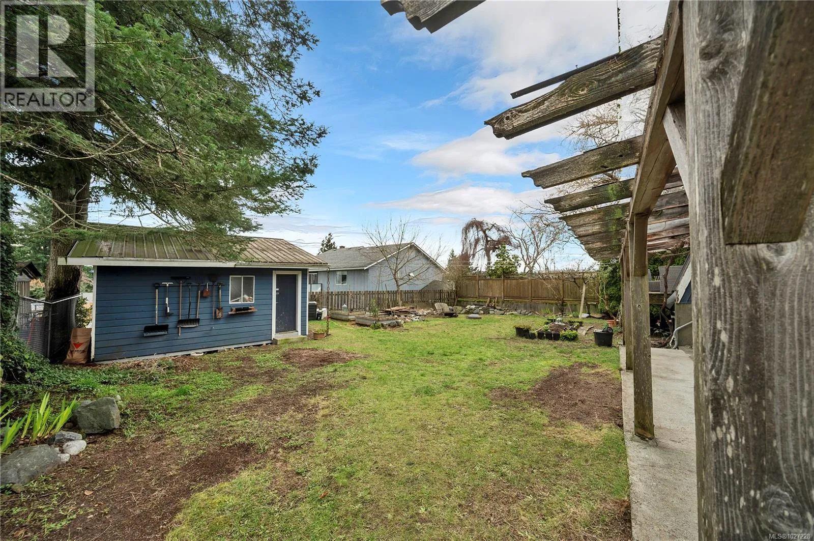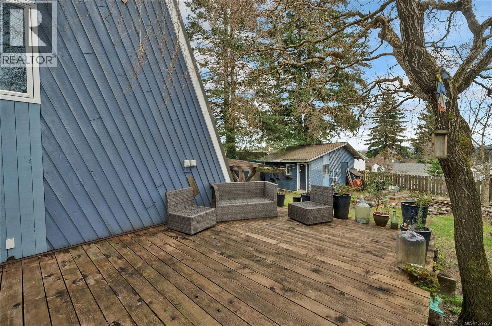 Welcome to this character filled West Coast Contemporary offering space, flexibility, and incredible storage for todayâs busy family. The main level features a vaulted ceiling and an open-concept Kitchen, Dining, and Living area that flows seamlessly together, perfect for gathering, entertaining, or simply enjoying everyday life. Sliding patio doors open onto a generous deck, creating effortless indoor/outdoor living and extending your entertaining space into the fresh coastal air. Upstairs, youâll find three bedrooms, a full bathroom, and additional storage, thoughtfully separated from the main living areas to provide peace and privacy when itâs time to unwind. The lower level adds even more versatility with a Family Room and combined Den ideal for a home office, media space, playroom, or teen retreat. A second bathroom and dedicated laundry room enhance functionality and convenience. Step outside to your private back garden framed by mature trees and established hedging, offering shade, beauty, and year-round privacy. Garden beds are ready for vegetables, flowers, or low-maintenance landscaping, design it to suit your lifestyle. A detached workshop provides excellent additional storage for tools, bikes, and outdoor gear. If youâre looking for a home with personality, flexible living spaces, and room to grow â this one delivers. (id:27476)