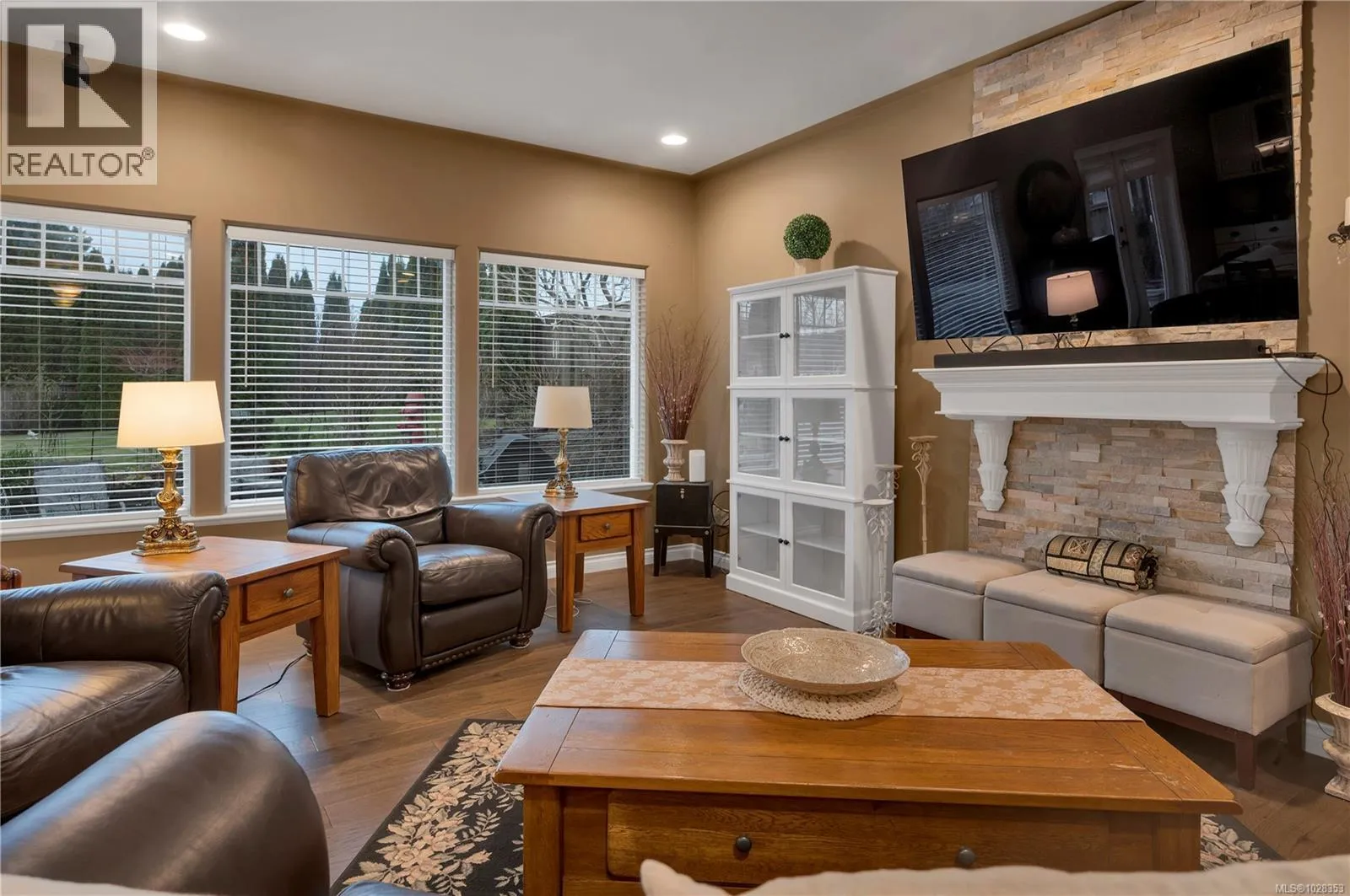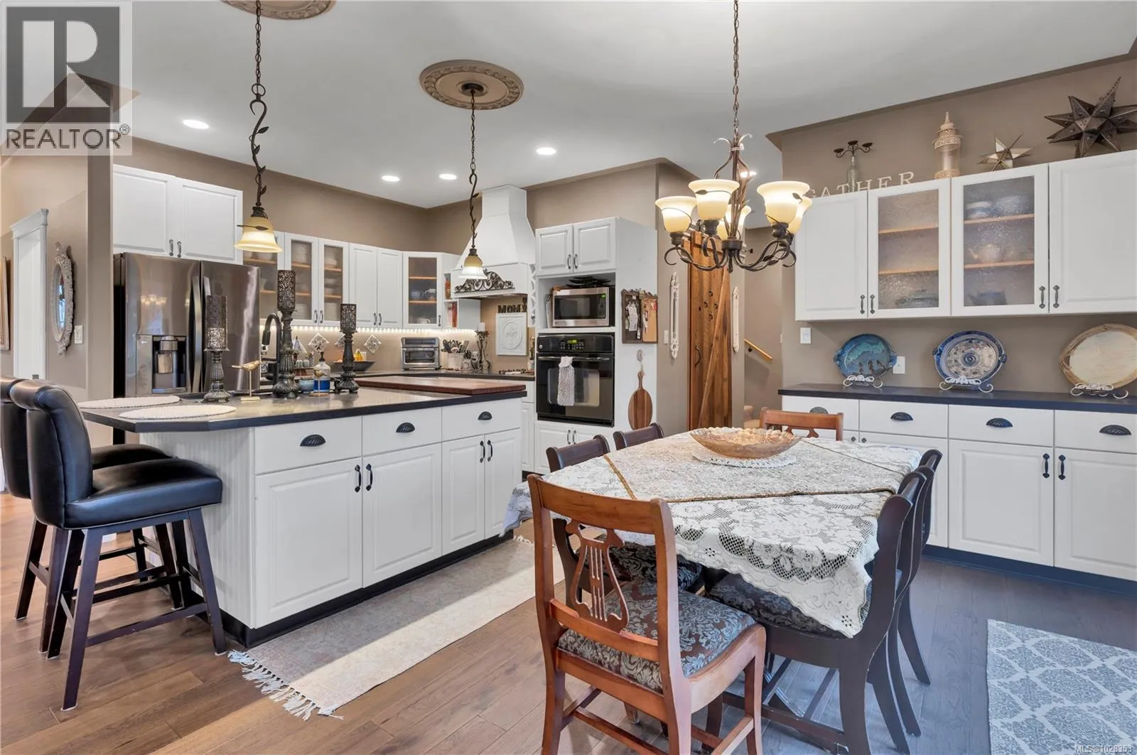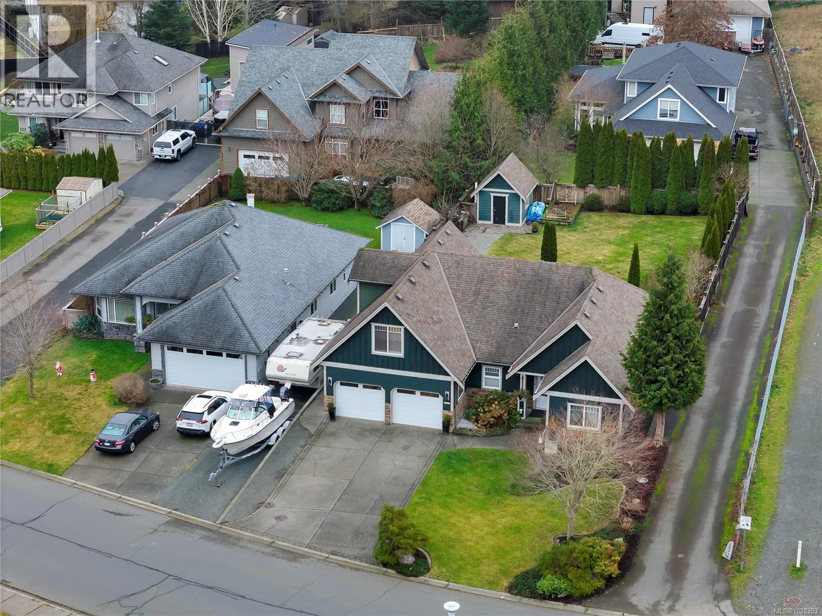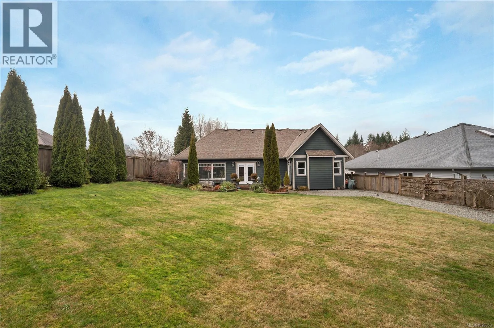Welcome to this thoughtfully designed 1,840 sq ft rancher with bonus room, perfectly situated on a generous 0.22-acre lot in the highly desirable Willow Point neighbourhood. This home offers exceptional versatility with three bedrooms plus a den and three bathrooms, including a primary suite on the main level featuring a walk-in closet and a spa-inspired ensuite with a two-person soaker tub and separate shower. Upstairs, the bonus room hosts a secondary primary suite, ideal for guests, extended family, or a private retreat. At the heart of the home, custom kitchen cabinetry blends timeless elegance with everyday functionality, while hot-water-heated hardwood floors provide luxurious comfort and impressive energy efficiency year-round. Step outside to a private, fully usable backyard designed for both relaxation and entertaining. Enjoy the expansive poured concrete patio, a levelled area ready for an above-ground pool, hot tub pre-wiring, raised vegetable garden beds, and an abundance of fruit from cherry and apple trees as well as blueberry bushes. Additional features include a 10â x 12â detached garden shed, a 4-foot concrete crawl space offering excellent storage, oversized garage, and peaceful greenspace directly across the street. This is a rare opportunity to own a meticulously cared-for home that offers comfort, efficiency, and outdoor enjoyment in one of Campbell Riverâs most sought-after communities. (id:27476)