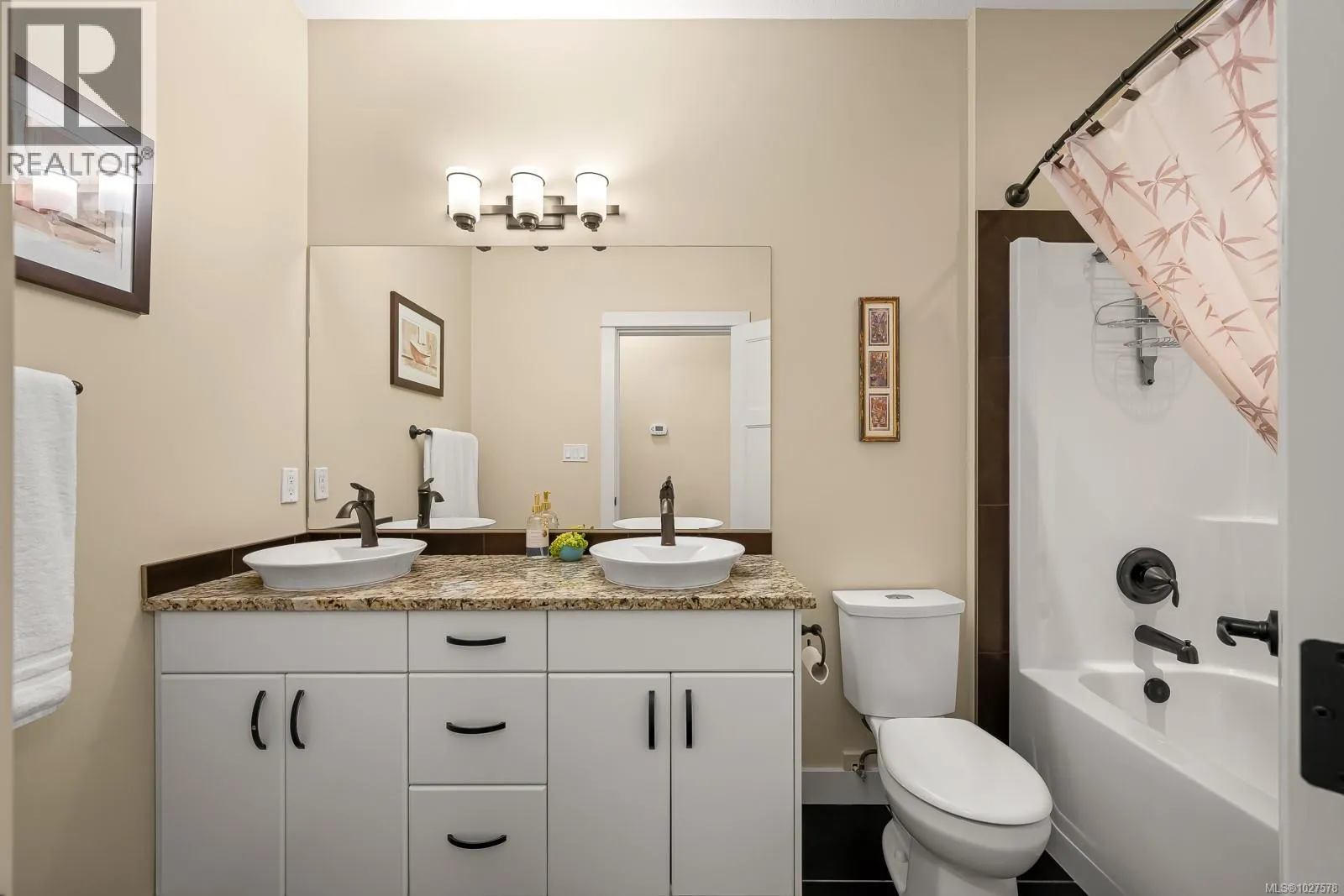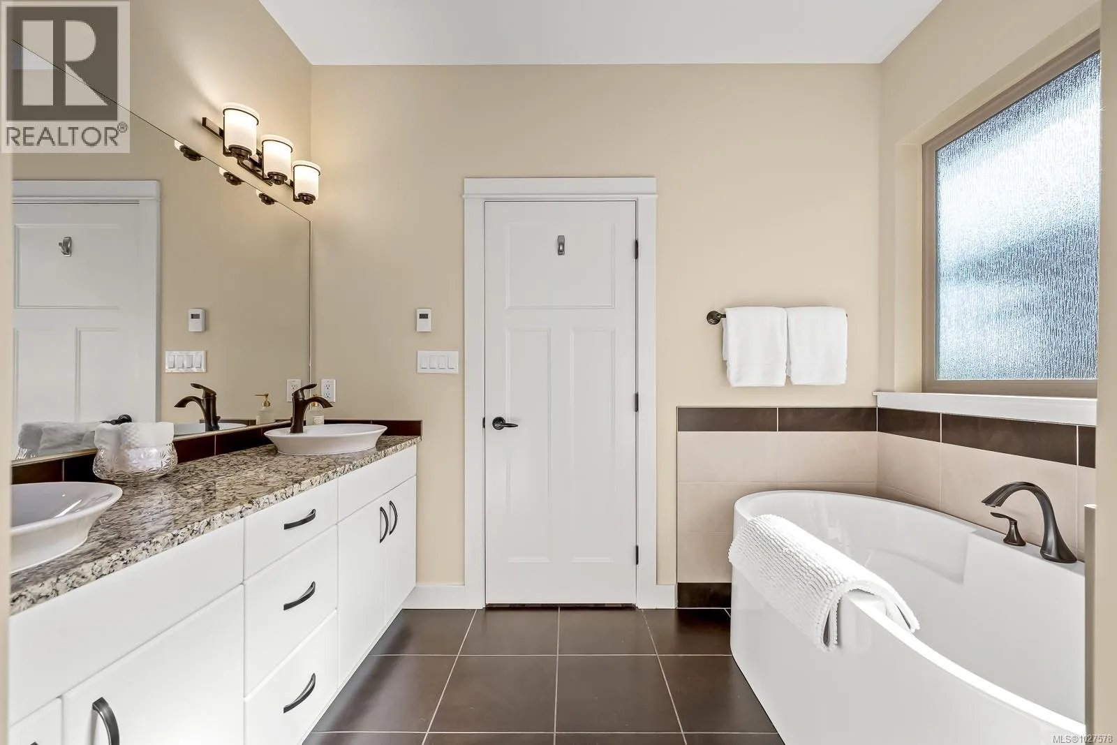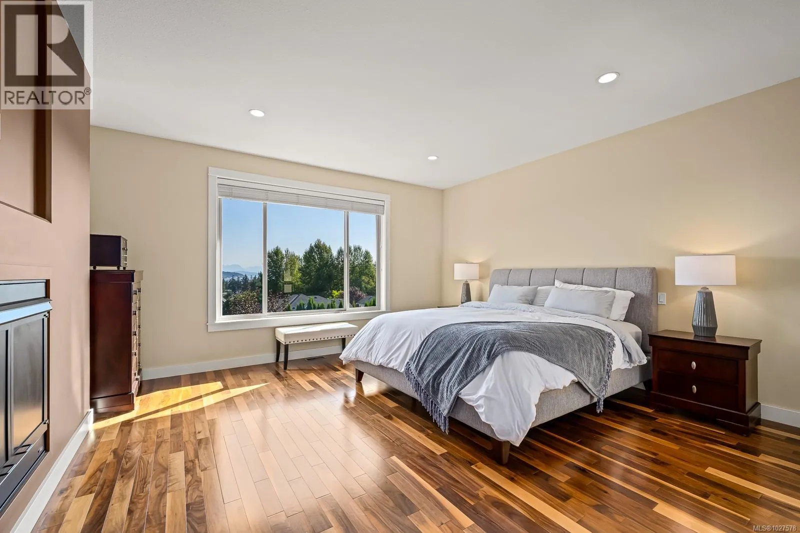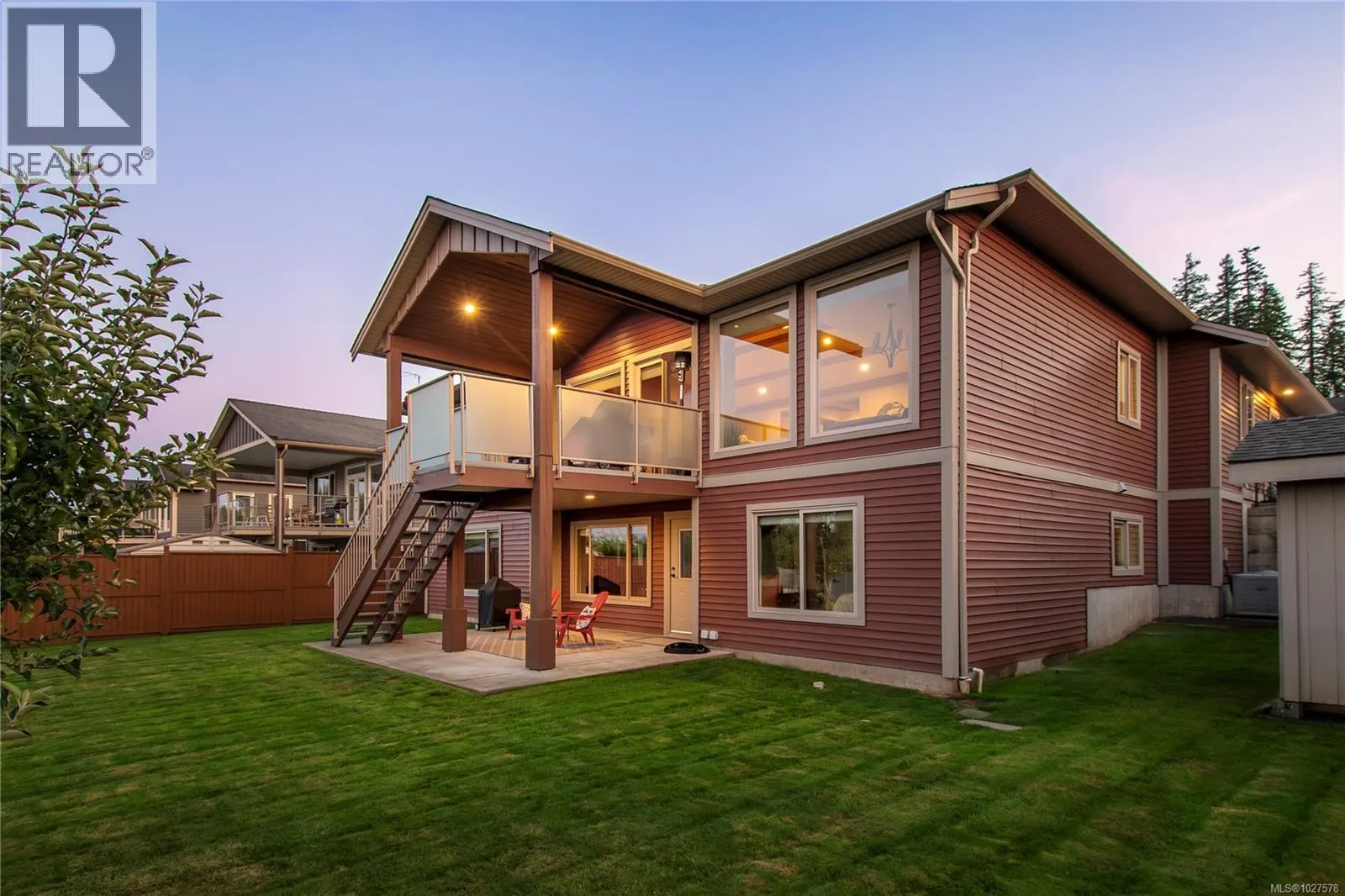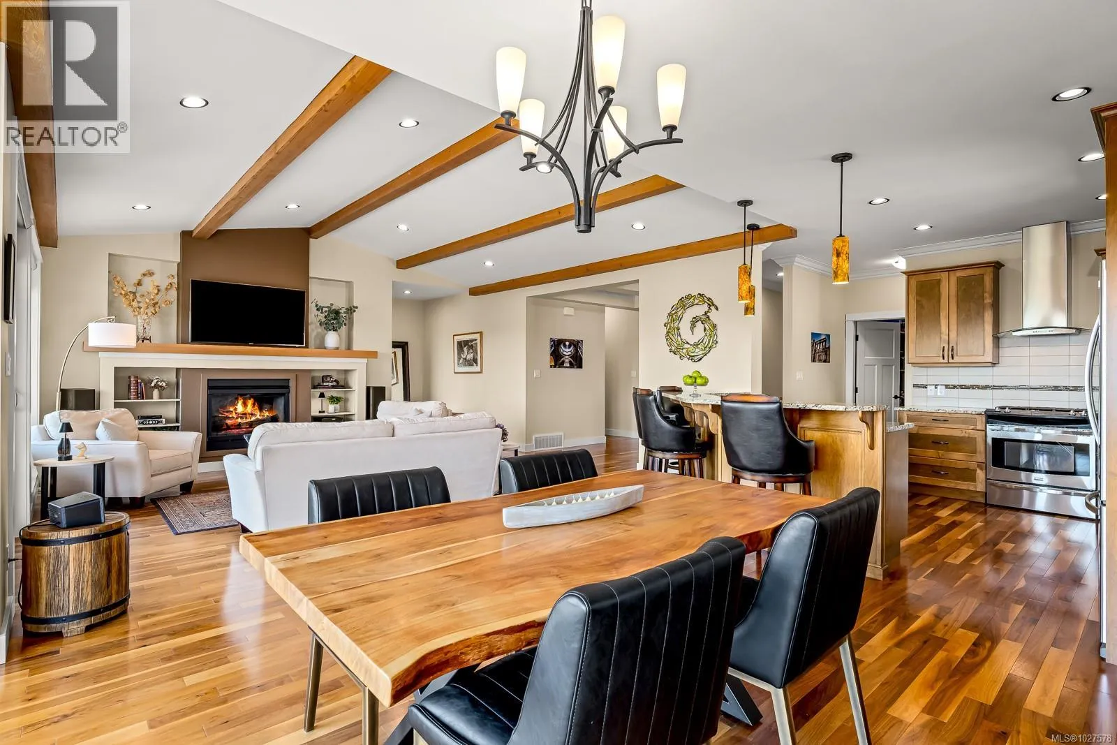 This custom, showhome-quality residence offers over 4,100 sq. ft. of thoughtfully designed living space complemented by stunning ocean and mountain views. The main level features a striking great room with vaulted ceilings, exposed wood beams, walnut flooring, and expansive windows that frame the coastal views. The gourmet maple kitchen is equipped with a granite island, walk-in pantry, and plenty of storage, while the dining area and covered deck make entertaining effortless year-round. The primary suite is a private retreat with a two-sided fireplace and spa-like ensuite, and two additional bedrooms plus a full bathroom with dual vanity complete the main level. The walk-out basement is expansive, with two more large bedrooms, two full baths, a rec room, play area, flex zones, and exceptional storage. Outside, mature landscaping enhances curb appeal, while RV and boat parking provide rare convenience. A perfect blend of craftsmanship, functionality, and west coast lifestyle. (id:27476)