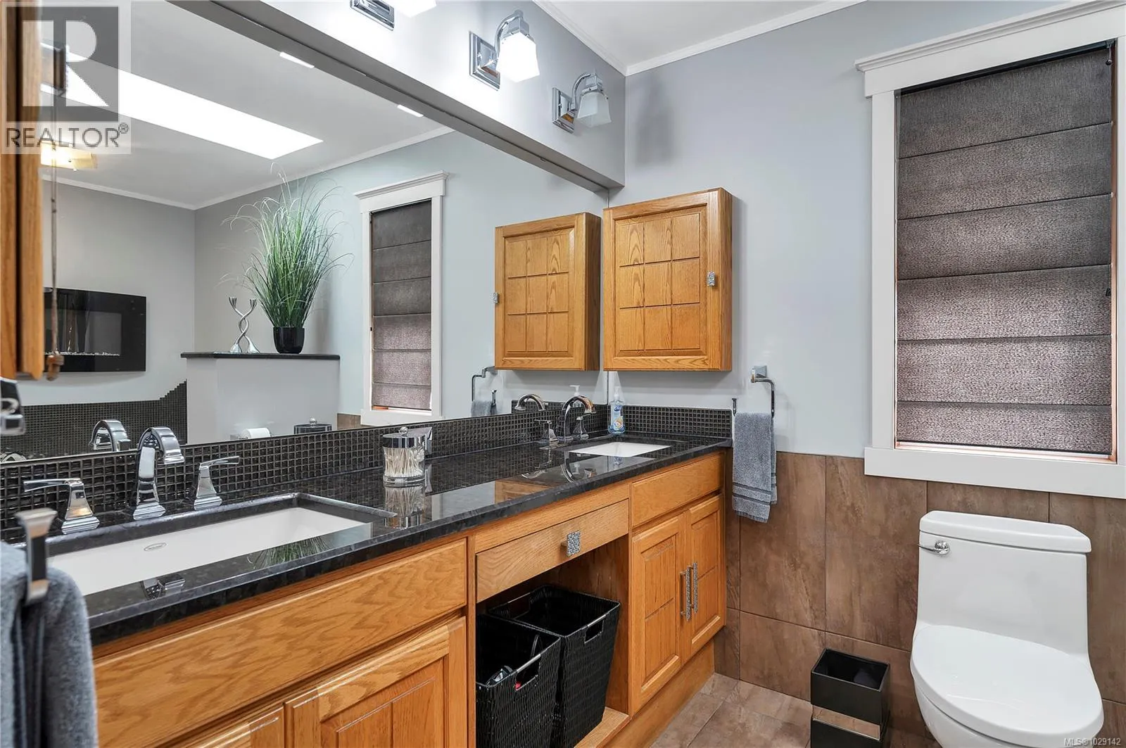 Tucked away on a quiet cul-de-sac on Passage View Drive, this beautifully built custom home offers privacy, partial ocean views, and exceptional space throughout. The main floor features a spacious kitchen and dining area with solid wood cabinetry, stone countertops, and a cozy wood insert fireplace, while the grand living room impresses with vaulted ceilings, a gas fireplace, and a wall of windows that fills the home with natural light. The primary bedroom is a peaceful retreat with ocean views, balcony access, two walk-in closets, and an updated ensuite complete with heated tile floors, a jetted tub, and a walk-in tile shower. Downstairs offers a generous bedroom, additional living space with walk-out access to the backyard, and a perfect in-law suite with its own private entrance. With an oversized garage and plenty of RV parking, this property delivers comfort, flexibility, and room for all your toys. (id:27476)