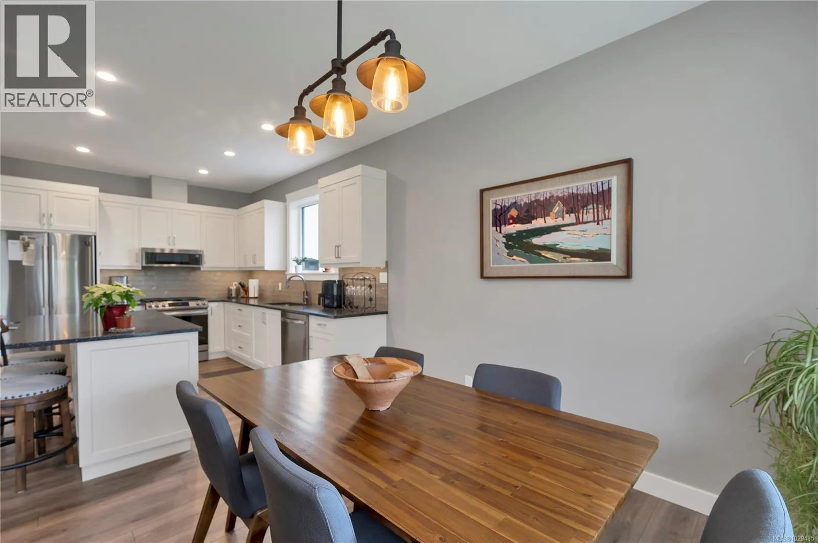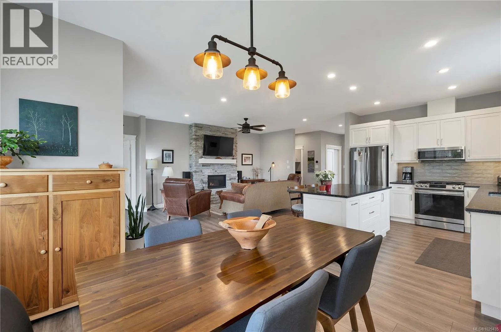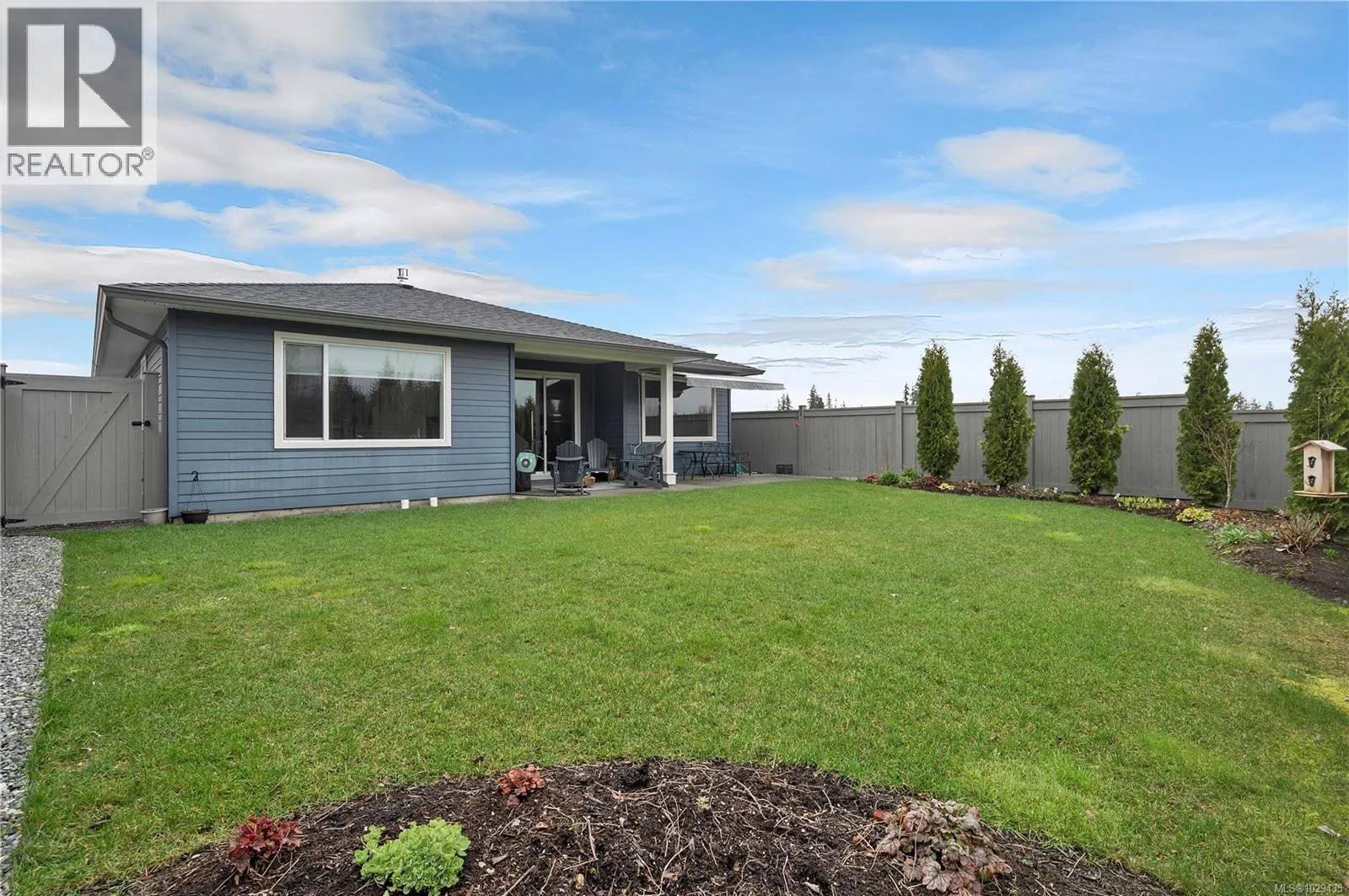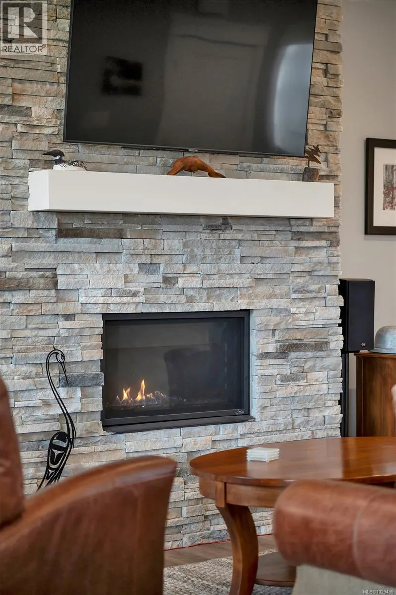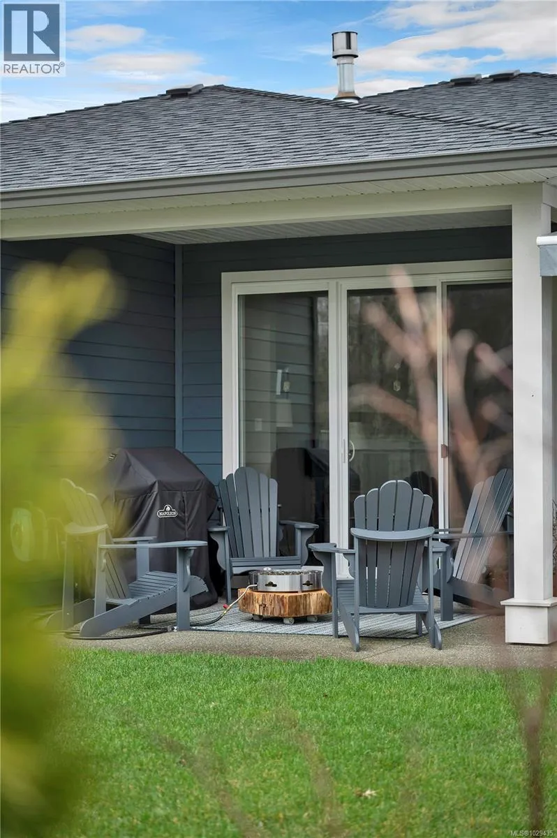 Introducing this stunning, like-new, 3-bed, 2-bath executive rancher in a quiet, well-maintained bareland strata complex. This end unit was thoughtfully customized at construction and is a masterpiece of modern living, featuring hot water on demand, an efficient heat pump, and heated floors in the master bathroom. The chefâs kitchen offers custom cabinets, under cabinet lighting, quartz countertops, a gas stove, matching quartz in both bathrooms and laundry and a tiled shower upgrade in the ensuite. The bright, open-concept layout is enhanced by 9-foot ceilings and a custom fireplace, perfect for comfortable living and entertaining. Step outside to a private, south-facing backyard backing onto undevelopable parkland, complete with a steel-reinforced aggregate patio, gas BBQ outlet, and custom awning. Additional highlights include a 3-zoned irrigation system with censors, a spacious, heated double-car garage and a central location near shopping, trails, and amenities. (id:27476)