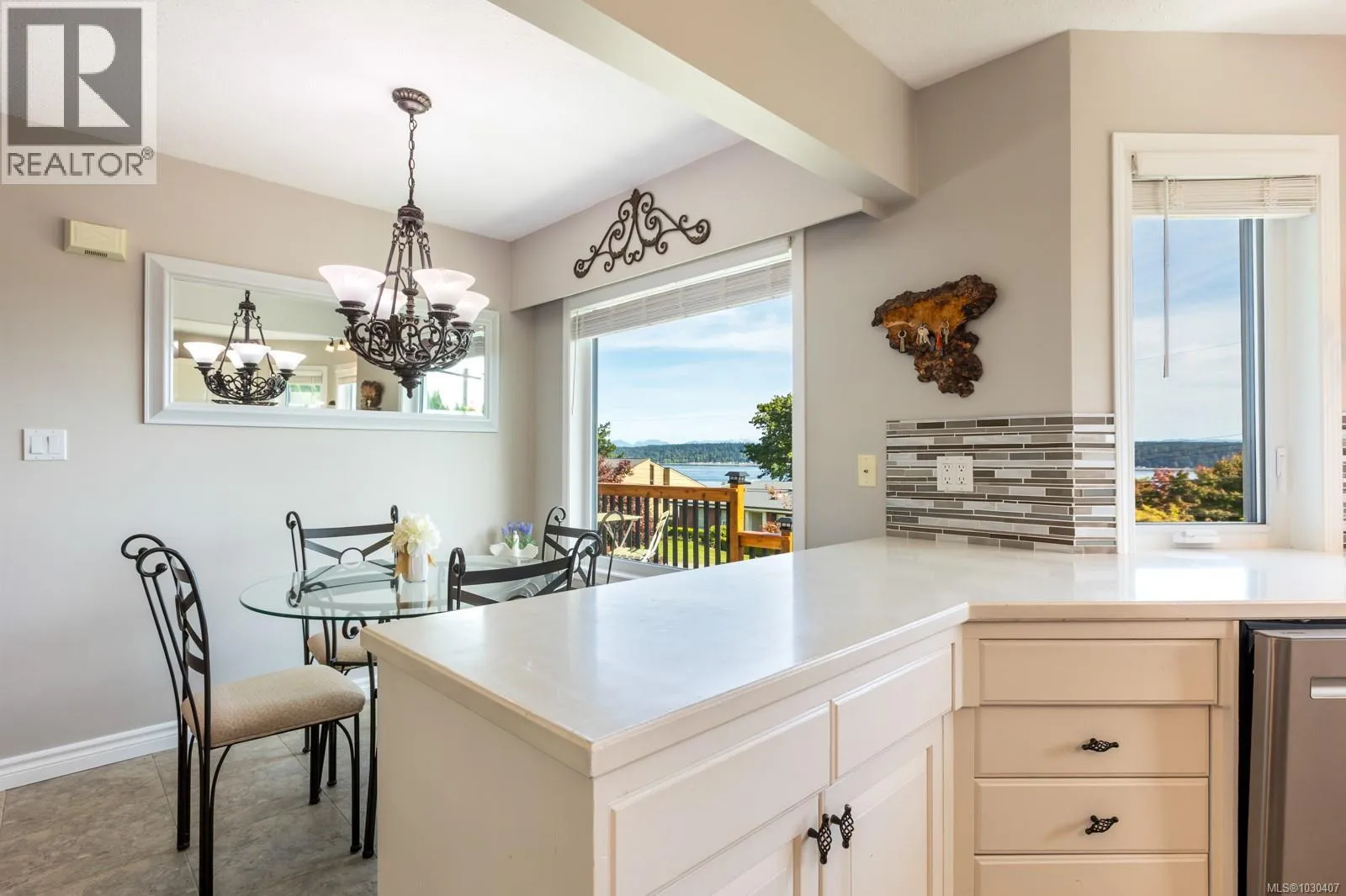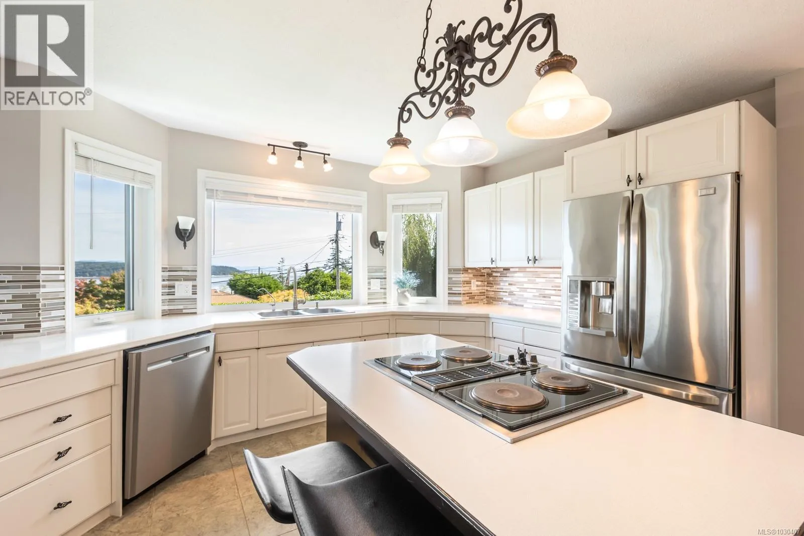 This stunning 3-level home offers breathtaking, uninterrupted views of the Discovery Passage. The custom-built residence exudes quality and craftsmanship. Set on a private 0.25-acre lot, it features 5 spacious bedrooms, 3 bathrooms, and a chef-inspired kitchen with an inviting eating area. The elegant dining room opens onto a large patio, ideal for entertaining or soaking in the ocean vistas. The fenced backyard is a private oasis, while the side yard offers 35 feet of green space next to the neighbourâs home for added privacy. Explore the beautifully landscaped gardens, with serene sitting areas, tranquil ponds, and the gentle flow of marine traffic. This home blends thoughtful design, incredible views, and ample space, creating the perfect family sanctuary. A rare vendor financing opportunity you wonât want to miss. For more information, please contact Ronni Lister at 250-702-7252 or ronnilister.com. (id:27476)