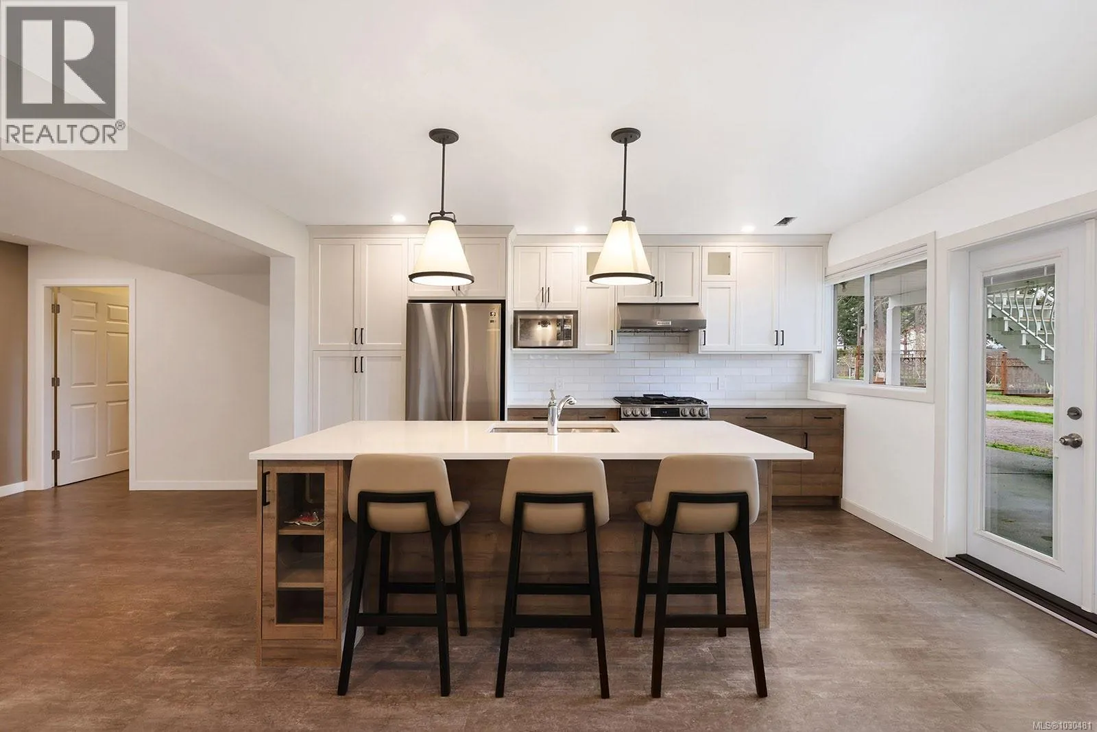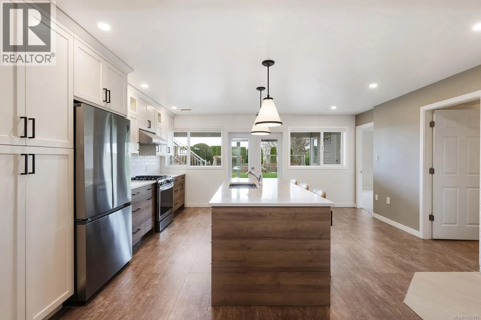 Perched to capture breathtaking ocean views, this 3,407 sqft home blends space, flexibility, and coastal living! An expensive driveway and 2-bay garage provide abundant parking. The main level entry opens to a bright, elevated living and dining area, featuring expansive windows and ocean views from many of the main floor rooms. Step onto the spacious balcony, perfect for morning coffee or entertaining friends and family on summer evenings as the glow of cruise ships pass by. The home features two full kitchens, seperate lower floor acces and a second laundry, ideal for extended family or guests. An irrigated yard keeps outdoor spaces lush with minimal effort. Generous indoor and outdoor areas combine comfort, function, and lifestyle, making this property truly special. (id:27476)
