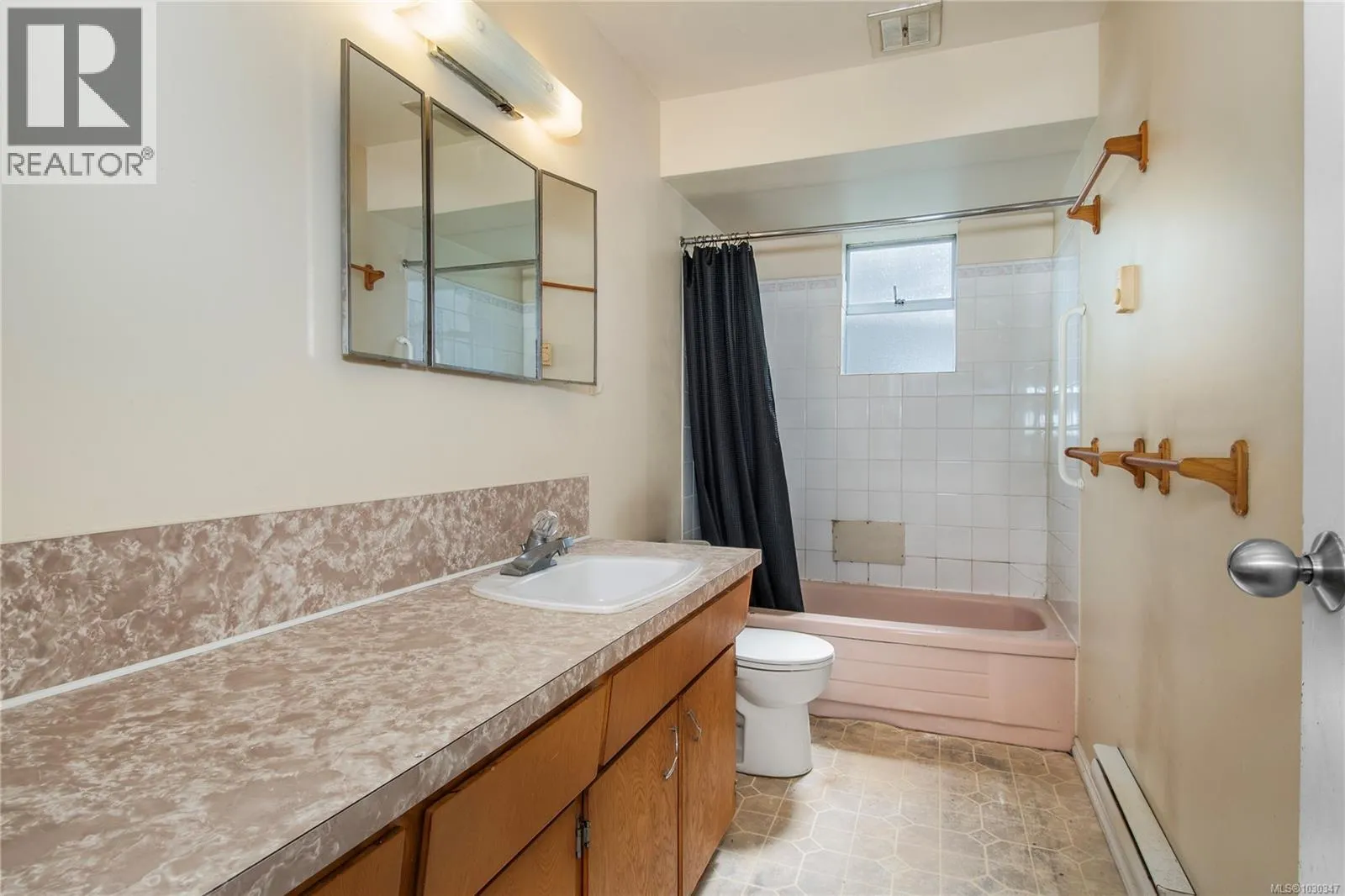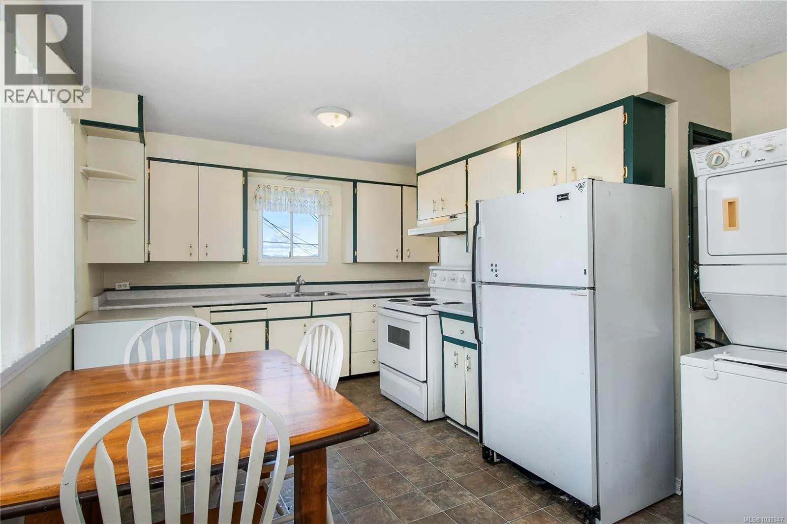 Perched just above the heart of downtown Campbell River, this 4 bedroom, 2 bathroom home is packed with potential. Set up as two self-contained 2 bedroom suites, each with its own kitchen, full bathroom, and generous living space, this property offers a flexible layout for extended family, guests, or the chance to live upstairs and generate income below. Ocean views can be enjoyed from both levels, with a sunny upper deck and a covered lower patio taking full advantage of the outlook. While the home is in need of renovations, the possibilities here are clear for a buyer with vision looking to add sweat equity. With ample parking and a walkable location close to Shopperâs Row, Robert Ostler Park, and Tyee Plaza, this is a rare opportunity to transform a well-located property with excellent views into something special. (id:27476)