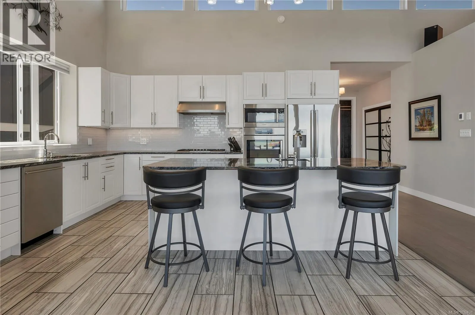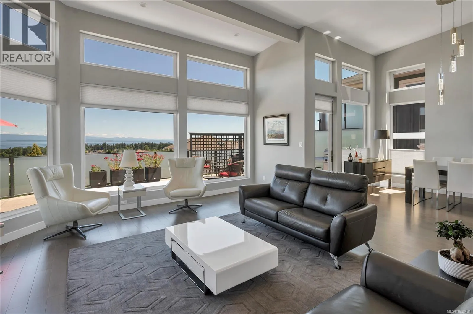 Prepare to be captivated before you even step inside this exceptional executive residence. A serene Zen garden guides you to the covered front entrance, setting the stage for the understated luxury that lies beyond. Inside, a bright, open-concept layout welcomes you with effortless grace. Floor-to-ceiling windows draw the eye outward to panoramic ocean viewsâan ever-changing canvas of sea and sky that infuses the home with natural beauty and light. Designed with both comfort and connection in mind, the heart of the home features a striking kitchen with a generous island, ideal for gathering and conversation. Guests can mingle in the elegant piano lounge, relax beneath vaulted ceilings in the expansive living room warmed by an oversized gas fireplace, or step out onto the expansive oceanview deck to savour the West Coast surroundings. The main floor primary suite offers a private retreat, where sunrise over the water becomes part of your morning routine. Step through the doors to the sundeck or begin your day in the spa-inspired ensuite, complete with dual a large walk-in closet, spa-like shower, and a deep soaker tub. The lower level continues to impress, with 9-foot ceilings and a wall of windows creating a sense of space and grandeur. A cozy library, expansive recreation room, two additional bedrooms, and a substantial storage room offer both function and flexibility. With roughed-in plumbing in place, thereâs potential to create a wet bar or self-contained guest suite. A fully framed and wired elevator shaft ensures ease of future access, should your needs evolve. Beneath its elegant exterior, this home is a triumph of thoughtful engineering. Constructed with insulated concrete form (ICF) walls and warmed by radiant in-floor heating, it delivers lasting comfort, remarkable energy efficiency, and superior structural integrity. Where timeless design meets modern craftsmanshipâthis is a home built to elevate every aspect of everyday living. (id:27476)