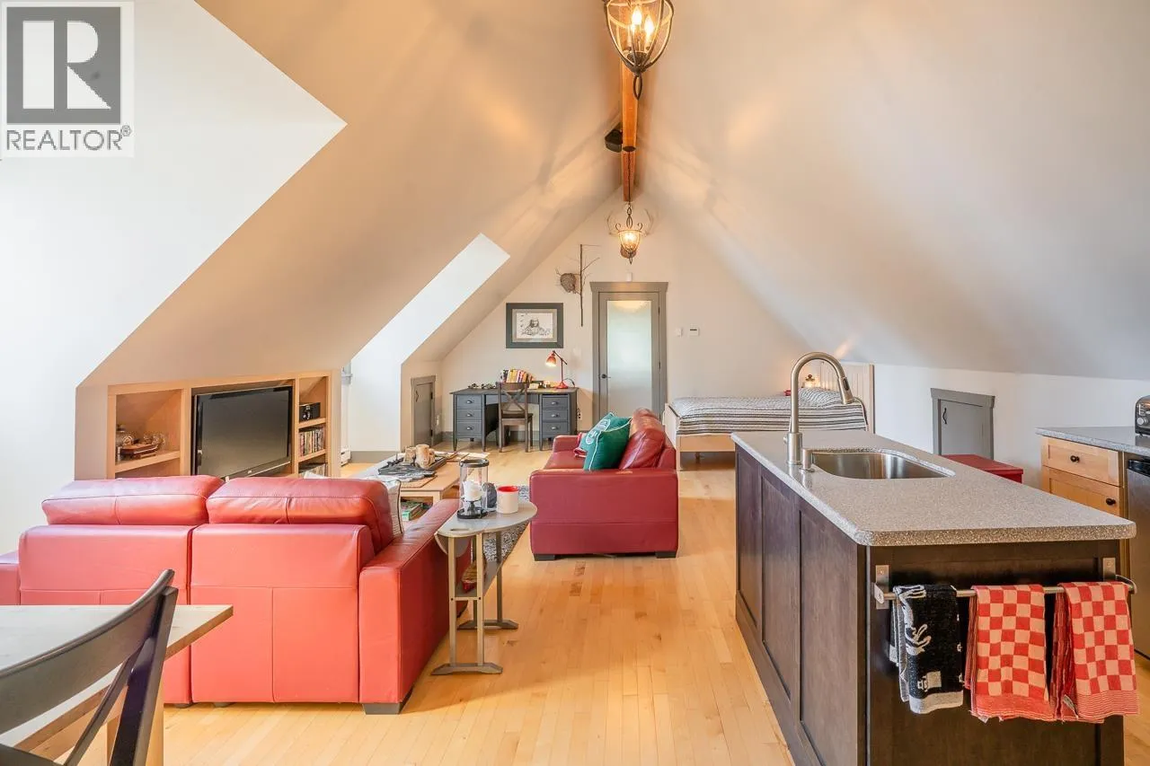 This unique Canim Lake property feels like you're living in the best kind of tree house. You'll wake up every morning to some of the most inspiring views you could imagine. The home is absolutely METICULOUS in detail. Downstairs is a spacious 2 car garage with a 3rd bay for storage or smaller equipment. Upstairs is the loveliest studio apartment with everything you need to live happily + two sleeping areas. And if you ever wanted to build something bigger, the owner has very conveniently run utility conduits to a future building site with the best lake views. There's cedar stairs available there for access down to the water and an incredible dock system- the stairs just need installing! Fresh air, nature and lush greenery at it's finest! (id:27476)