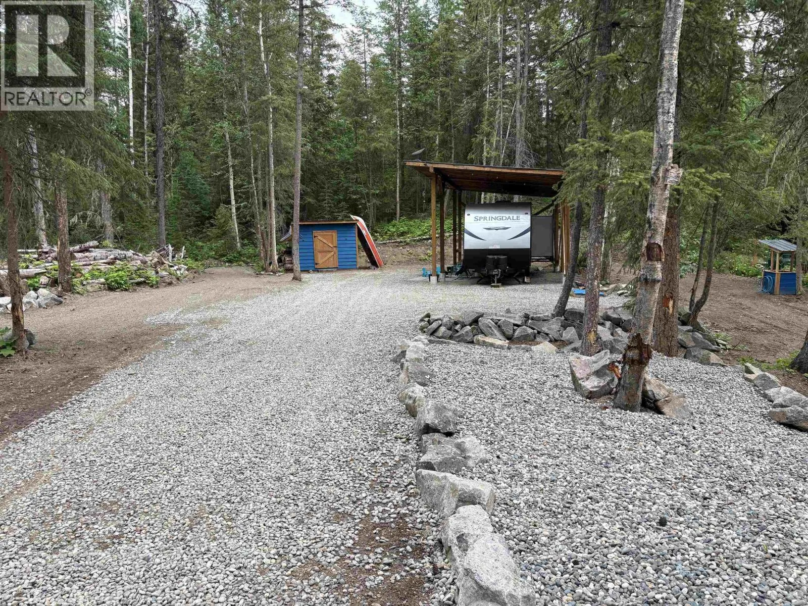 This .4 of an acre building lot at Hawkins Lake is just minutes from the public boat access. Build your home or get a way cabin as some of the work has already been done for you. The driveway is in, electrical service of 200 amp and some nice landscaping. A 500 gallon septic holding tank provides temporary service, 35'x20' RV shelter and 12'x8' storage shed. Located minutes from Canim Lake, great fishing, hunting, and hiking are what this area is known for. Travel trailer can be purchased directly from the Seller. (id:27476)