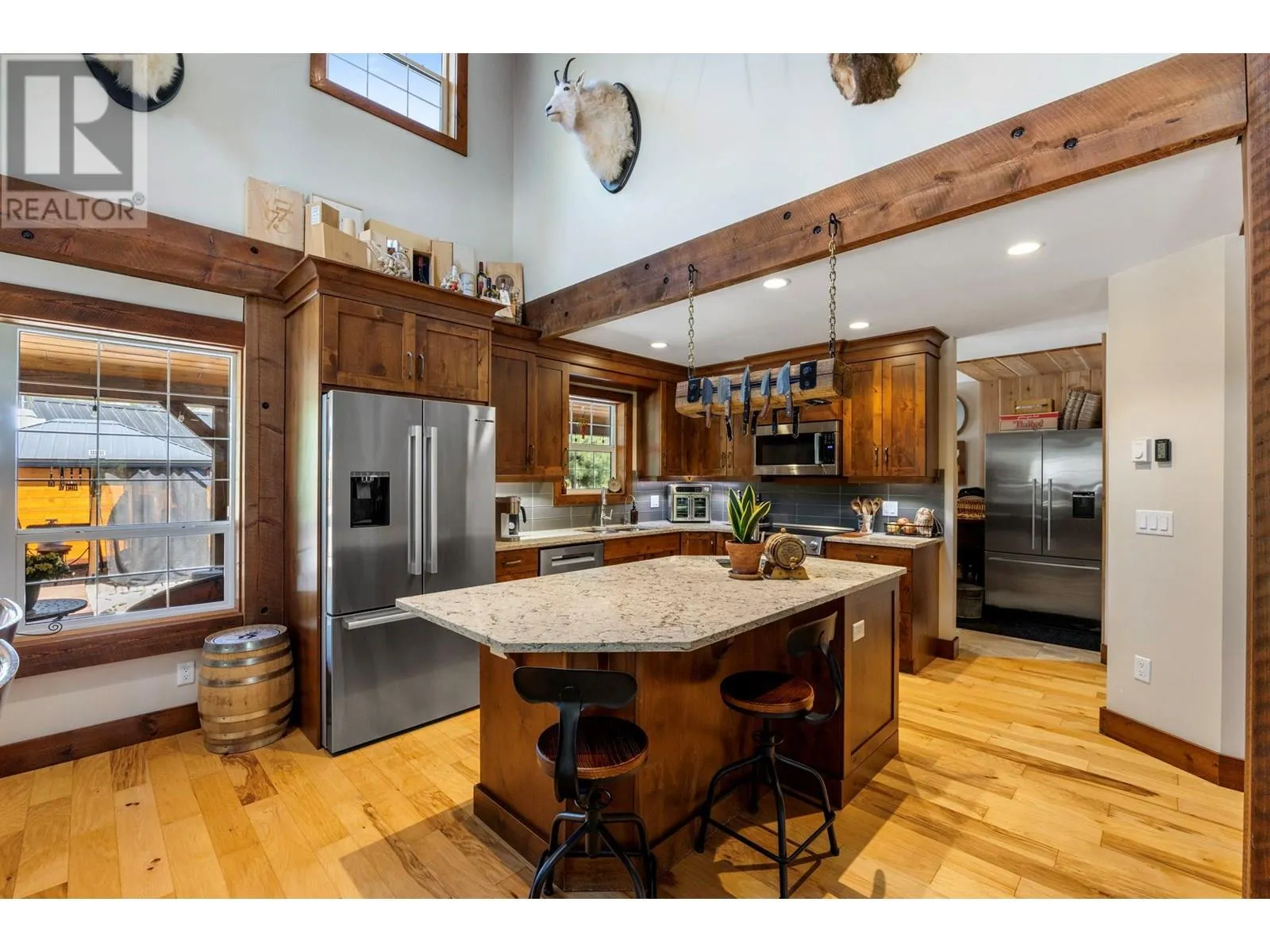 Rising River Ranch - a Private Wilderness Estate, in BCâs Okanagan. Discover an extraordinary opportunity to own this 43-acre riverside retreat along the serene Kettle Riverâwhere pristine wilderness meets refined rustic charm. Just five minutes from everyday amenitiesâand only 45 minutes from an international airportâthis rare property offers unmatched seclusion without sacrificing convenience. The thoughtfully appointed 3-bed, 2-bath main residence is a sanctuary in itself, featuring premium Bosch appliances, a high-tech steam shower, indoor cold plunge, and a cozy wood-burning fireplace for year-round comfort. Designed to elevate your lifestyle, every detail blends warmth with wellness. Step outside to an outdoor enthusiastâs paradise: Two new guest cabins with wood-stoves, propane-heated outdoor shower, outhouses, wood-fired sauna, hot tub, and multiple outbuildings. A fully equipped chefâs kitchen featuring the âOven Brothersâ wood-fired Fuoco table, pizza oven, and rotisserie. Panoramic views from the wraparound porch reveal 43 acres of natural splendour with irrigation rightsâ20 fenced and ideal for cows or horses. Wildlife thrives here, with frequent sightings of deer, moose, wild turkeys, and the occasional elk. Across the river, an additional 10 acres of additional land, surrounded by crown, invite you to hunt, hike, or explore on ATV. With no zoning restrictions, this retreat offers lifestyle flexibility and business potential. Private, turn-key, and truly rare. (id:27476)