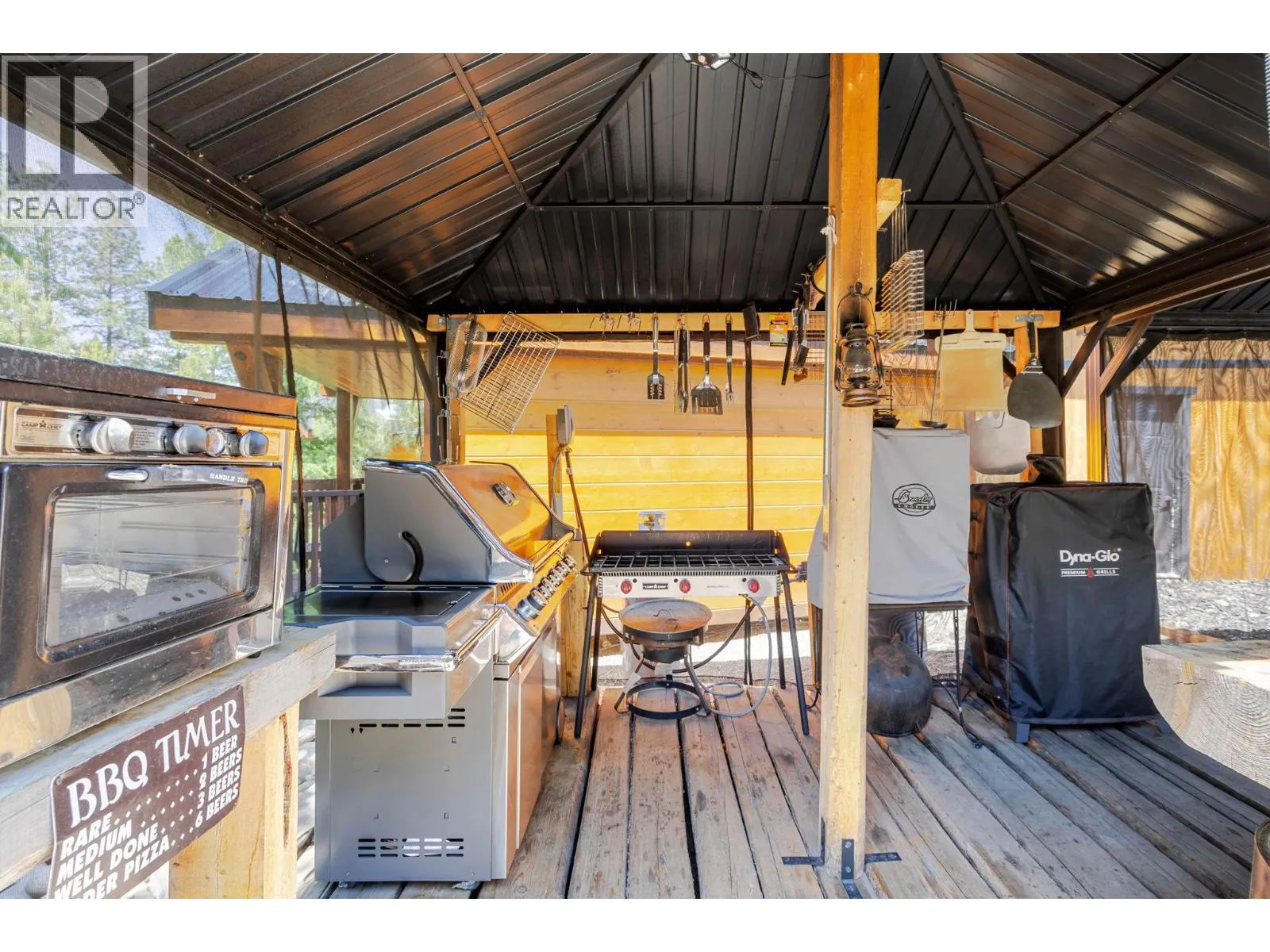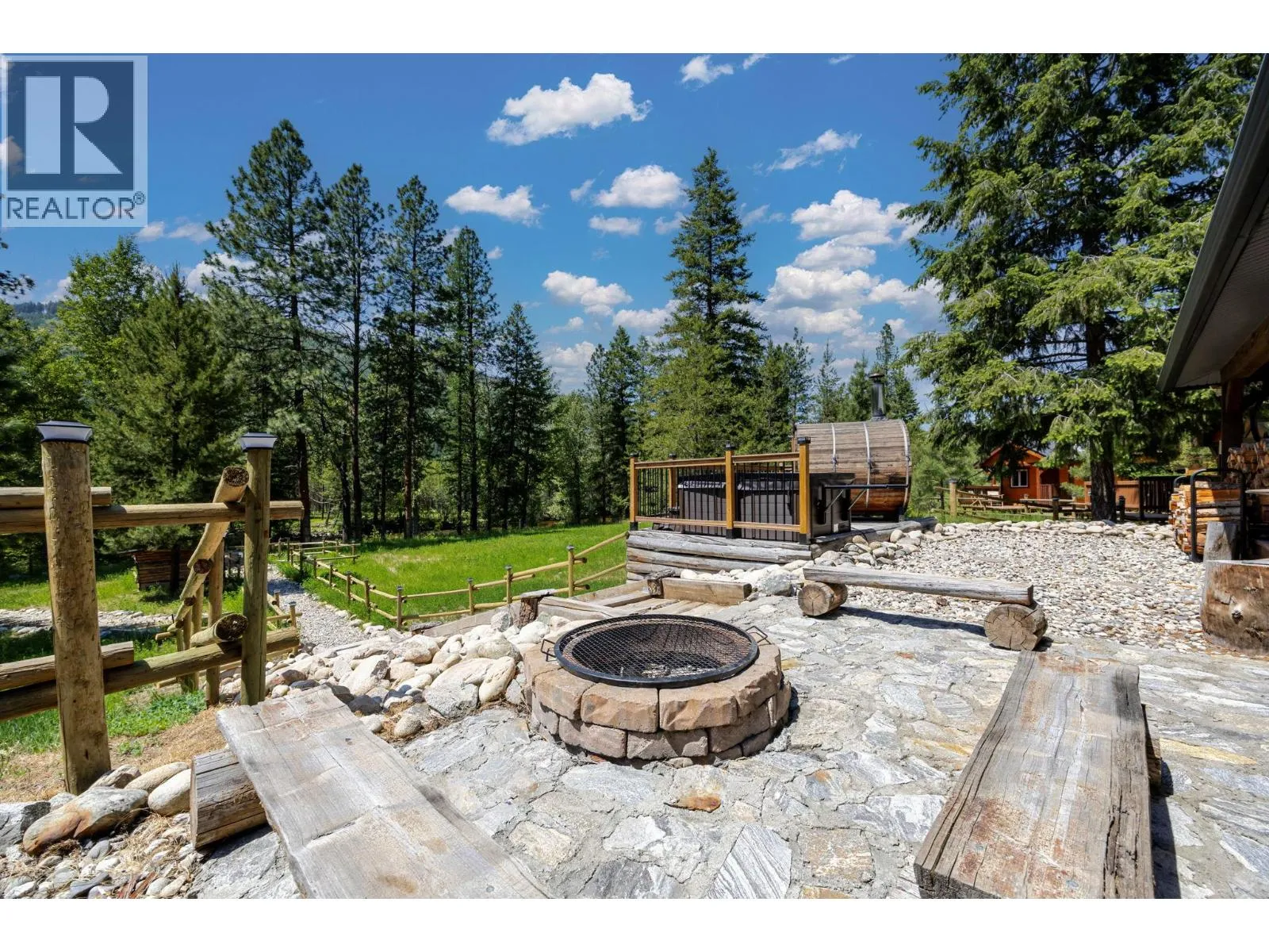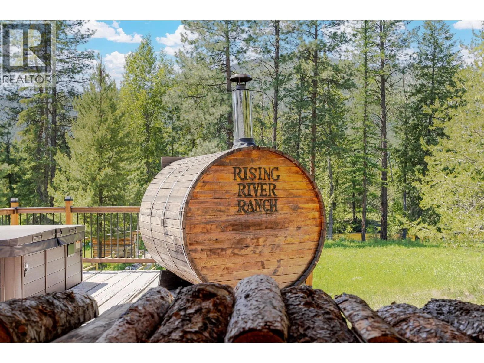 Rising River Ranch A 43 acre riverside Wilderness retreat in the Okanagan. Nature and privacy meets modern living. Along the serene W. Kettle River, this property offers a rare trifecta of privacy, rustic charm, and proximity to the regionâs premier destinations, just 5 min. from local amenities, 1 hour from Kelowna Airport, Big White Ski Village, and Osoyoos Wine Country, you are perfectly positioned for both adventure and convenience. The main home is a 3B/2B Timber Frame updated to blend cozy with high-tech efficiency, premium Bosch appliances, wood-burning stove, and a new high-tech steam shower. The home and outbuildings were recently upgraded with 9 Mysa Smart Thermostats, 6 digital smart locks and 6 Ring Smart Cameras and integrated lighting. 2 new guest cabins with woodstoves provide private retreats, with an upgraded electrical sauna, hot tub, and propane-heated outdoor shower. The outdoor kitchen boasts an Oven Brothers woodfired fuoco table, pizza oven, and rotisserie. Robust underground electrical runs to all outbuildings, ensuring seamless expansion. The land is for the naturalist and rancher alike. With 20 fenced acres, for horses or hay, the agricultural potential is significant. Another 10 acres of private wilderness across the river is bordered by Crown land, offering access to hundreds of km's of Forest Service Roads for hiking & hunting. Wildlife thrives here, while in the ALR, the property has no zoning restrictions. Seller motivated. (id:27476)