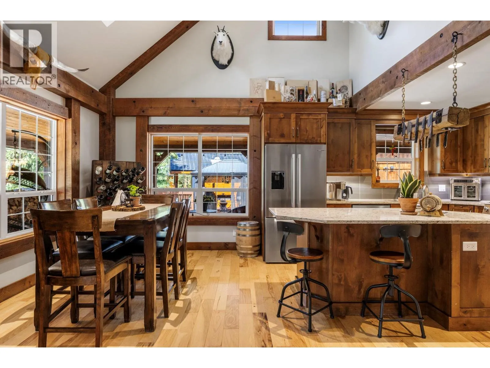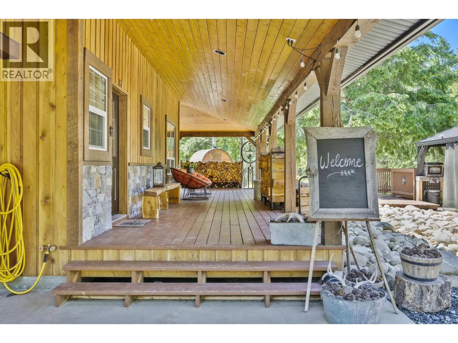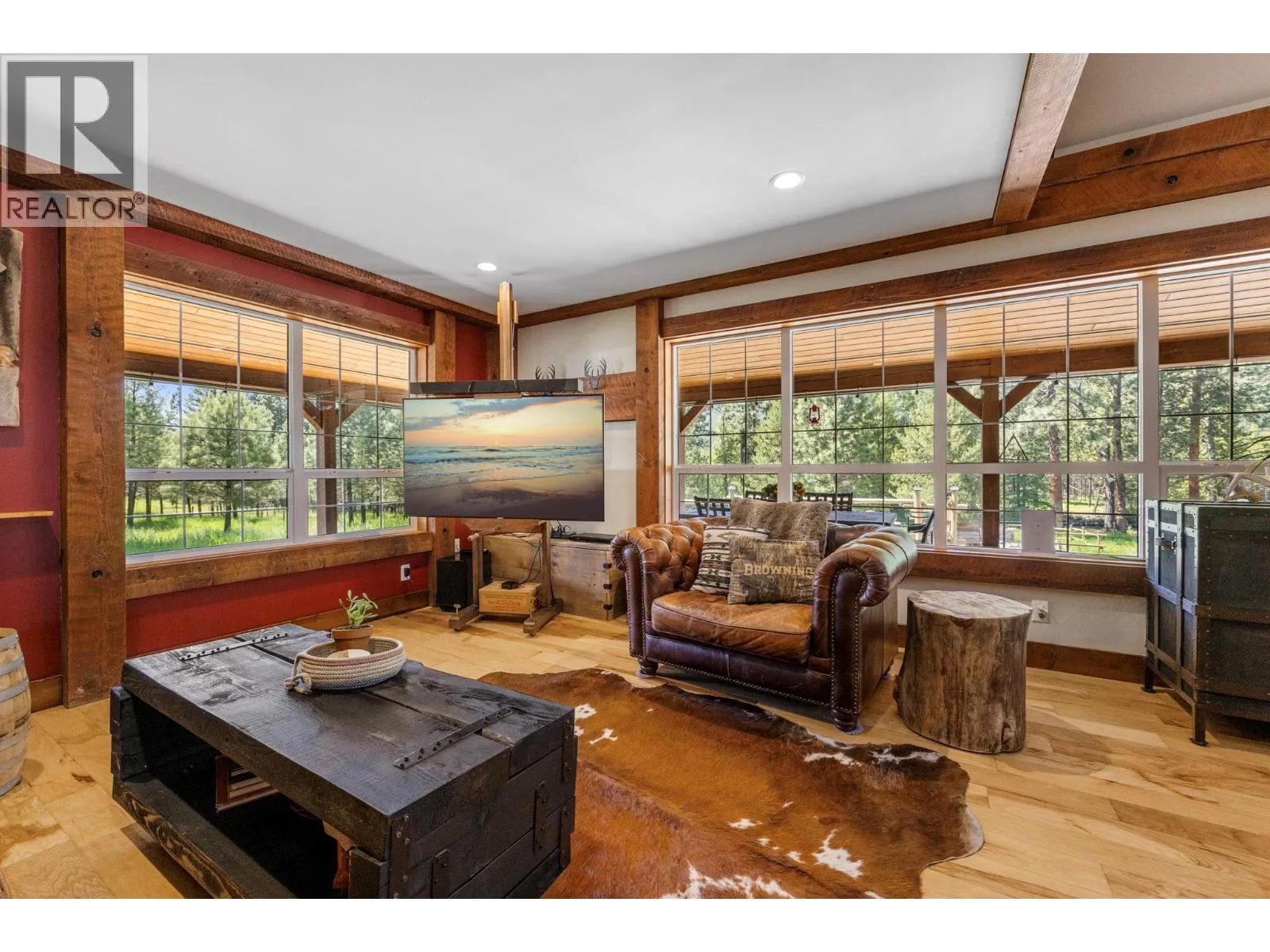 Rising River Ranch A 43 acre riverside Wilderness retreat in the Okanagan. Nature and privacy meets modern living. Along the serene W. Kettle River, this property offers a rare trifecta of privacy, rustic charm, and proximity to the regionâs premier destinations, just 5 min. from local amenities, 1 hour from Kelowna Airport, Big White Ski Village, and Osoyoos Wine Country, you are perfectly positioned for both adventure and convenience. The main home is a 3B/2B Timber Frame updated to blend cozy with high-tech efficiency, premium Bosch appliances, wood-burning stove, and a new high-tech steam shower. The home and outbuildings were recently upgraded with 9 Mysa Smart Thermostats, 6 digital smart locks and 6 Ring Smart Cameras and integrated lighting. 2 new guest cabins with woodstoves provide private retreats, with an upgraded electrical sauna, hot tub, and propane-heated outdoor shower. The outdoor kitchen boasts an Oven Brothers woodfired fuoco table, pizza oven, and rotisserie. Robust underground electrical runs to all outbuildings, ensuring seamless expansion. The land is for the naturalist and rancher alike. With 20 fenced acres, for horses or hay, the agricultural potential is significant. Another 10 acres of private wilderness across the river is bordered by Crown land, offering access to hundreds of km's of Forest Service Roads for hiking & hunting. Wildlife thrives here, while in the ALR, the property has no zoning restrictions. Seller motivated. (id:27476)
