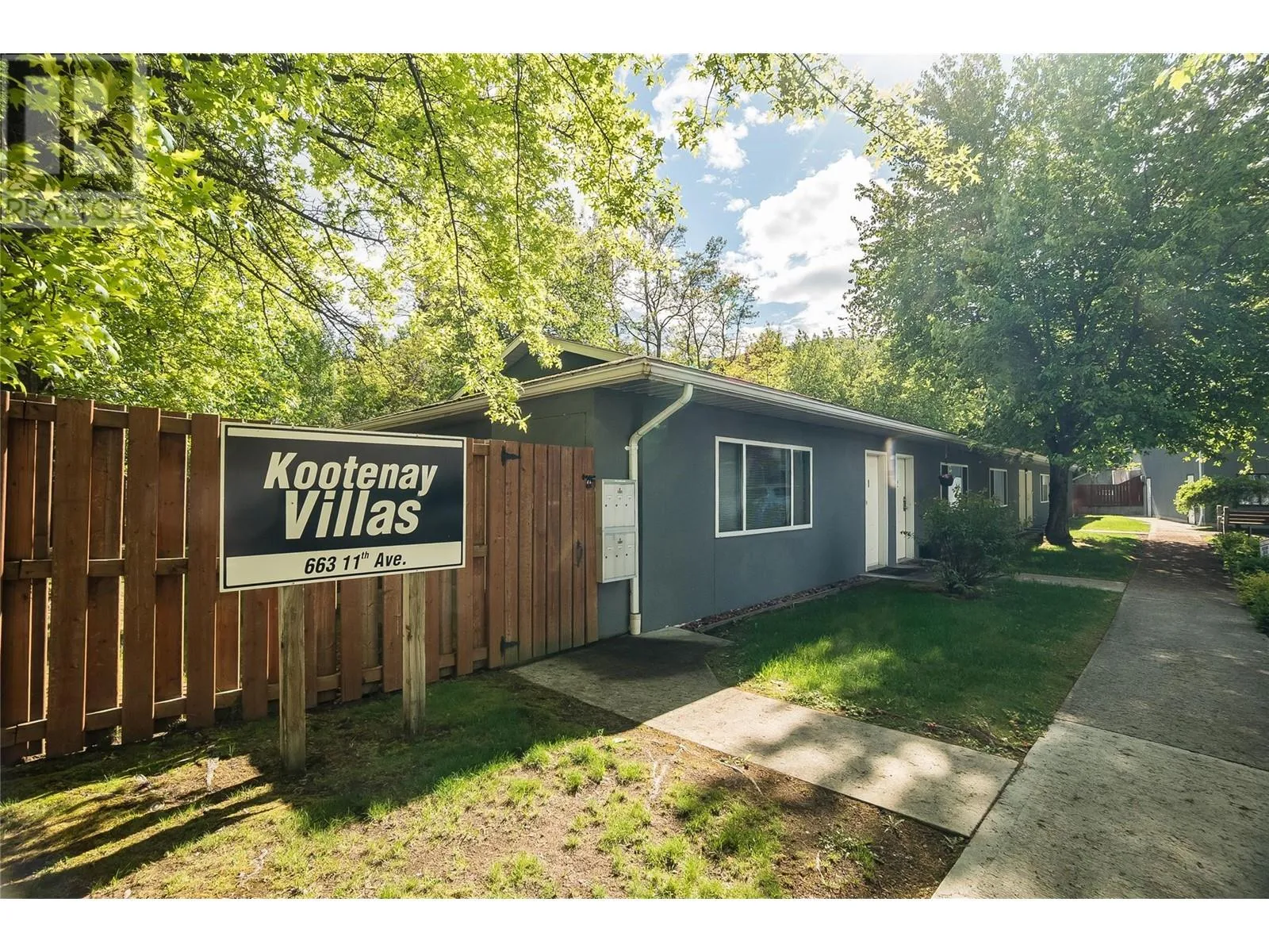 Exceptional Investment Opportunity! This value-packed combination of residential and commercial real estate offers stable returns of consistent revenue with strong potential for increased revenue over time. A modern, well maintained commercial structure, occupied by an established professional services tenant includes a flexible bachelor style residential space and is complimented by a detached residential building featuring 5 self-contained two bedroom rancher-style appartments. Each residential unit includes private outdoor yard spaces and an on-site parking lot serves the needs of both the residential and commercial tenants. Excellent commercial access to Columbia Avenue's service/commercial corridor is complimented by a peaceful setting accessible from 11th Avenue to the property's rear yelding an ideal mix of business exposure and residential enjoyment. The residential rental units are highly sought-after attracting longe term mature tenants seeking single level living in a peaceful locale with the convenience of shopping, services, parks, schools, public transit and more being just steps away. Storage units and shared coin-op laundry have been provided and the grounds are auto-irrigated for easy maintenance. Take the time to explore all that is included in this remarkable and unique offering in the growing community of Castlegar! (id:27476)