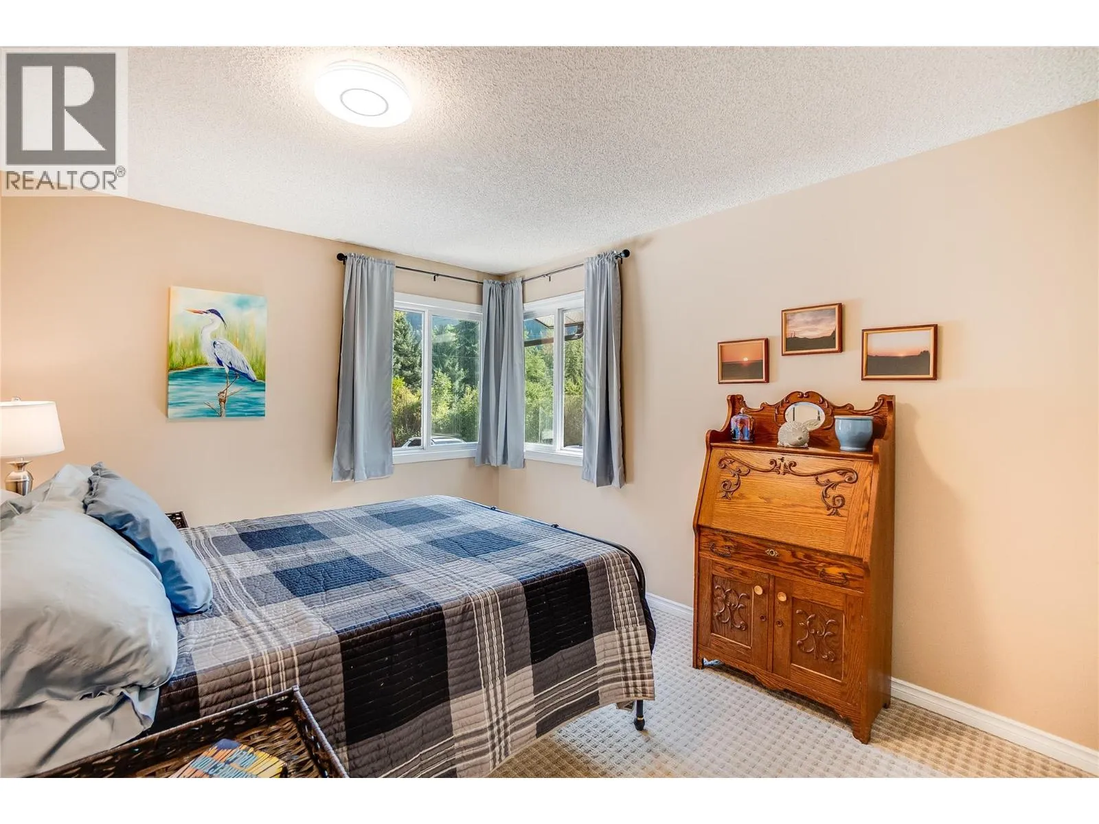 Welcome to this beautifully maintained, custom constructed, single-owner bungalow thoughtfully nestled on a level ½ acre property in an exclusive section of the highly-desirable Blueberry neighbourhood of South Castlegar where opportunities are rarely made available for purchase. This home boasts an ultra-functional floor plan with three spacious bedrooms, two full bathrooms and open-concept living areas filled with natural light from large picture windows that frame stunning panoramic views. Thoughtful upgrades include a newer roof, energy-efficient windows, and a modern heat pump system for year-round comfort. Cozy wood-burning fireplaces add warmth and character, perfect for gatherings or private reflection while the full basement with separate exterior access offers a blank canvas for your creative finishing touches. Step outside to a private outdoor living on the sun-soaked deck ideal for entertaining or peaceful relaxation. The beautifully landscaped yard is a true retreat with mature trees offering privacy and ample level space to exercise your green thumb, enjoy recreation, or store your possessions. Tucked away on a quiet no-through road, this serene property offers both privacy and convenience just minutes from downtown Castlegar, a short commute to Trail, and steps from a wealth of outdoor recreation. Donât miss this rare opportunity to own a move-in-ready home at an affordable price in one of South Castlegarâs most popular neighborhoods! (id:27476)