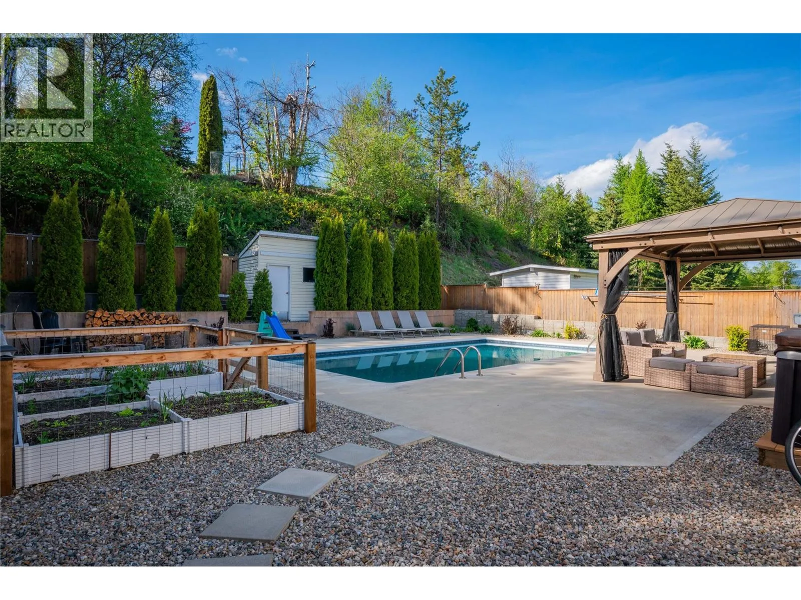Experience refined living in this stunning South Castlegar estate, offering over 3,000 sqft of beautifully updated space designed for comfort and sophistication. With 5 bedrooms and 2.5 luxurious bathrooms, this home blends upscale finishes with thoughtful functionality. The heart of the home is a show-stopping kitchen featuring high-end appliances, an expansive island, and a massive butlerâs pantryâperfect for seamless entertaining. The open-concept layout is anchored by a sleek gas fireplace and bathed in natural light. A spacious main-floor bonus roomâboasting nearly 430 sqftâoffers endless possibilities as a media room, play room, gym, or guest suite. All bedrooms are conveniently located upstairs, and the elegant primary suite includes a walk-in closet and a spa-inspired ensuite featuring a walk-in shower and luxurious jetted tub; a true private retreat. Step outside to your personal resort-style oasis to enjoy summers in the in-ground pool and entertain effortlessly with a built-in natural gas bbq and multiple seating areas. A charming garden and chicken coop add unique charm and versatility. Complete with a double garage and located in one of Castlegarâs most sought-after neighbourhoods, this exceptional home offers the ultimate in style, space, and lifestyle. A rare opportunity not to be missed! (id:27476)