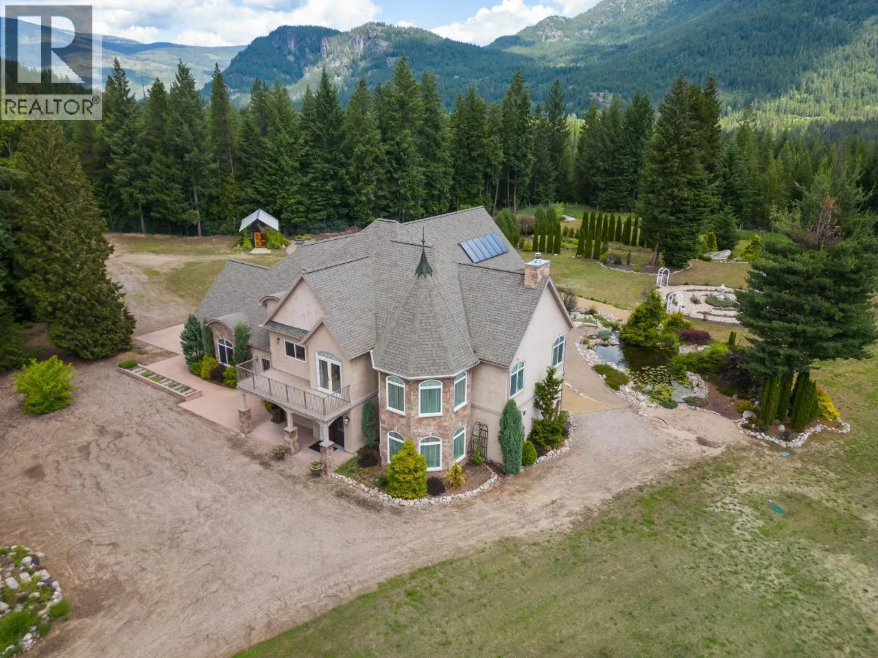 Paradise Found! Nestled on a private forested plateau beneath a stunning backdrop of majestic mountains and open skies this beautiful estate is the fulfillment of your ""Kootenay Life"" dream. The West Kootenay is a highly-desired destination for those seeking a retreat from the high-paced life of urban centers while offering world class outdoor recreation without tourist density. This strategically situated property provides the utmost in privacy and serenity coupled with links to the global community via high speed internet and a commute of only minutes to the regional airport, health care and municipal services. The breathtaking European inspired home of over 6500 sqft. combines the high quality finishes of stone counter tops, soaring ceilings, craftsman cabinetry, flawless finish carpentry and elegant fixtures with custom design features including an amazing kitchen/dinning area, spa-like master suite, open-concept living spaces, a truly ""awe inspiring"" indoor pool and a window schedule bathing the interior in natural light while enjoying the stunning natural views. Geothermal energy provides efficient climate control and an oversized attached garage allows for indoor parking or storage while the property of over 36 acres features a pastoral feel with custom-designed ponds and landscaping features surrounded by natural forest and significantly fenced for privacy and safety. Add a solid second home and professional greenhouse to complete an offering that simply must be seen! (id:27476)