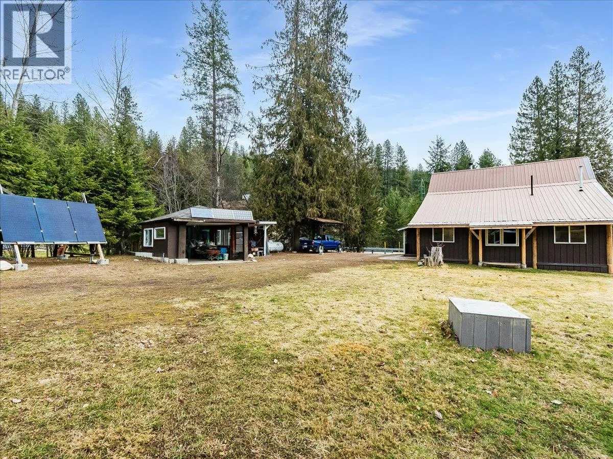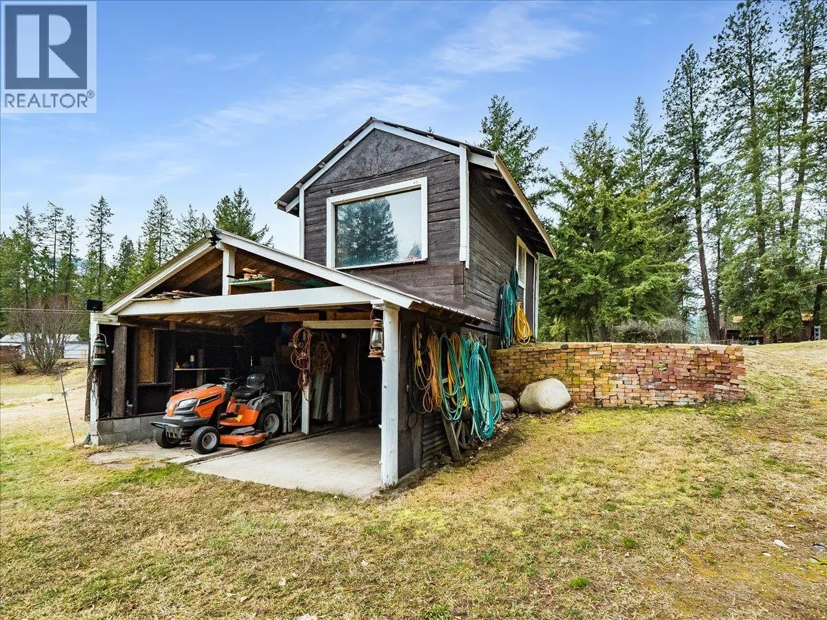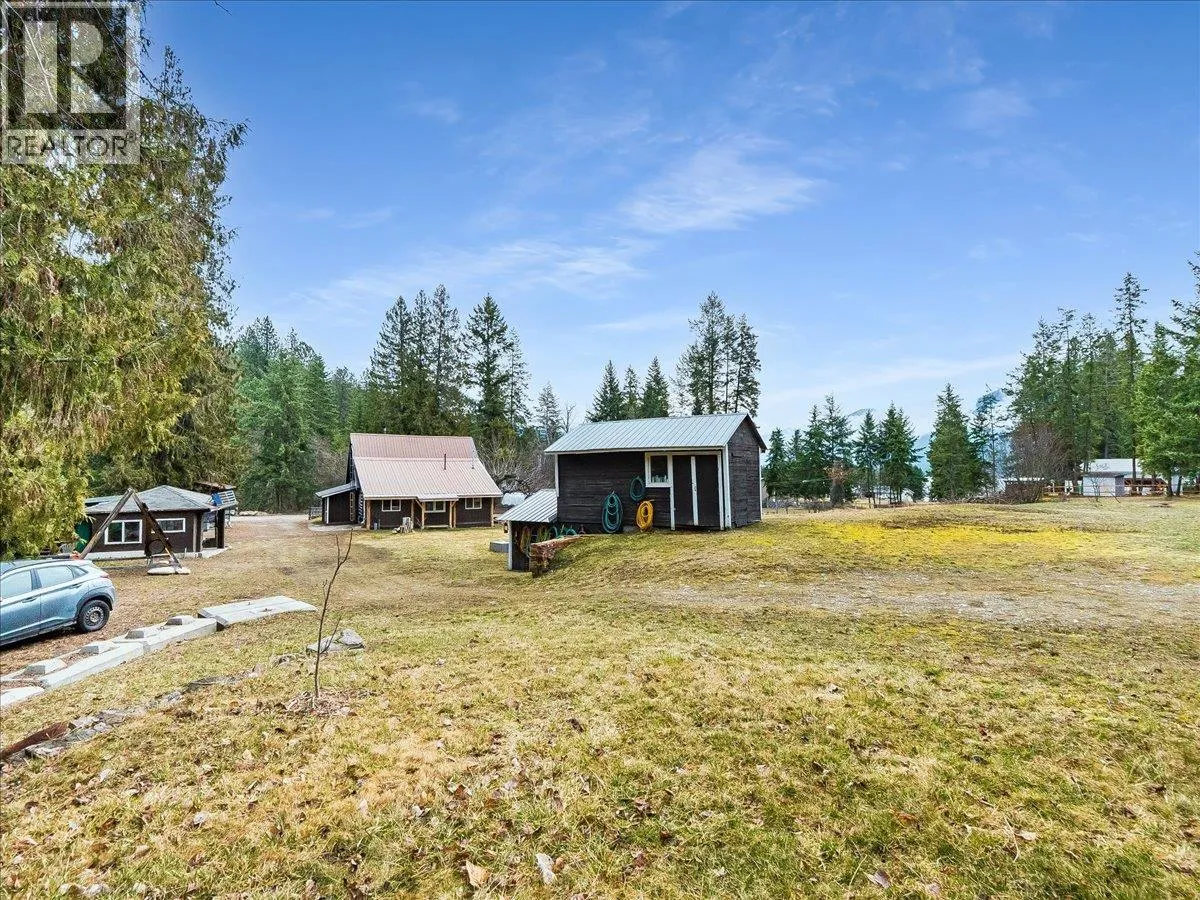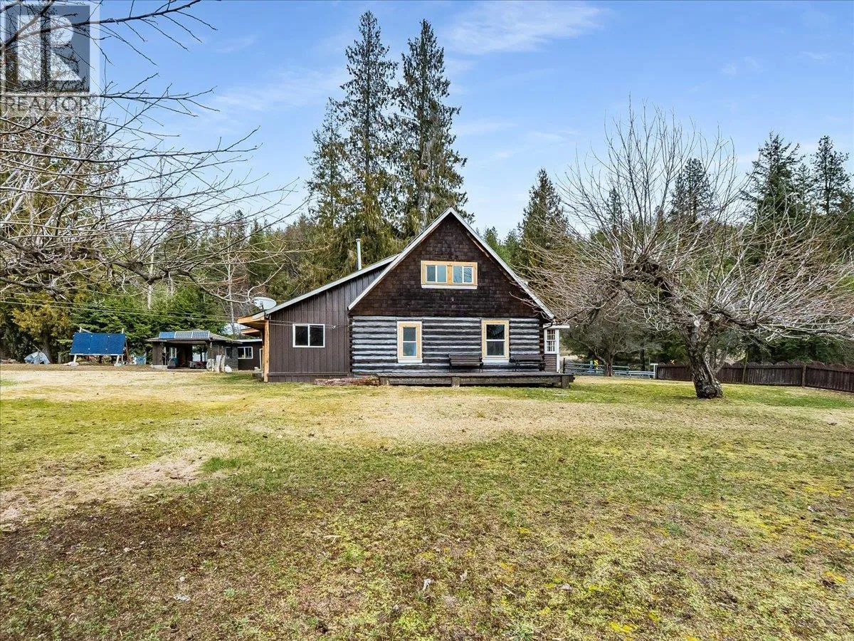 Life under the sun at the lake! A rare opportunity to own 2.53 beautiful acres in the welcoming community of Deer Park, within walking distance to a public beach and boat launch. Nestled alongside a year-round Kokanee spawning creek, this unique property includes two titles (both included in the sale), a charming log cabin, and potential to build a second home. The land features a newly fenced productive garden, mature fruit and nut trees including walnut, hazelnut, pear, plum, and apple, and zoning that allows farm animalsâperfect for hobby farming, recreation, or peaceful Kootenay living. The cozy log cabin is currently configured as a 2-bedroom, 1-bath home (with a non-load-bearing wall separating the bedrooms) and offers radiant hardwood floors, beautiful tongue-and-groove finishing, and an open-concept layout. A highly efficient Blaze King wood stove keeps the home warm and inviting year-round. Recent updates include new chinking, windows and doors, hardwood flooring, cedar and tongue-and-groove finishing, ceramic tile, fresh paint, select log replacements, metal siding and roofing, and a newly installed electrical and solar power system. Enjoy lake views and the soothing sounds of the creek from the cabin porch, with the beach just a short stroll away. The property also offers excellent storage with 5 sheds for firewood, equipment, and recreational gear, plus RV accommodation with its own roof structure and secondary bathroom for guests. Surrounded by waterfalls, natural water slides, hiking trails, and endless boating, quadding, and biking opportunities, this property offers the perfect recreational getaway, homestead, or full-time retreat in the heart of the Kootenays. (id:27476)