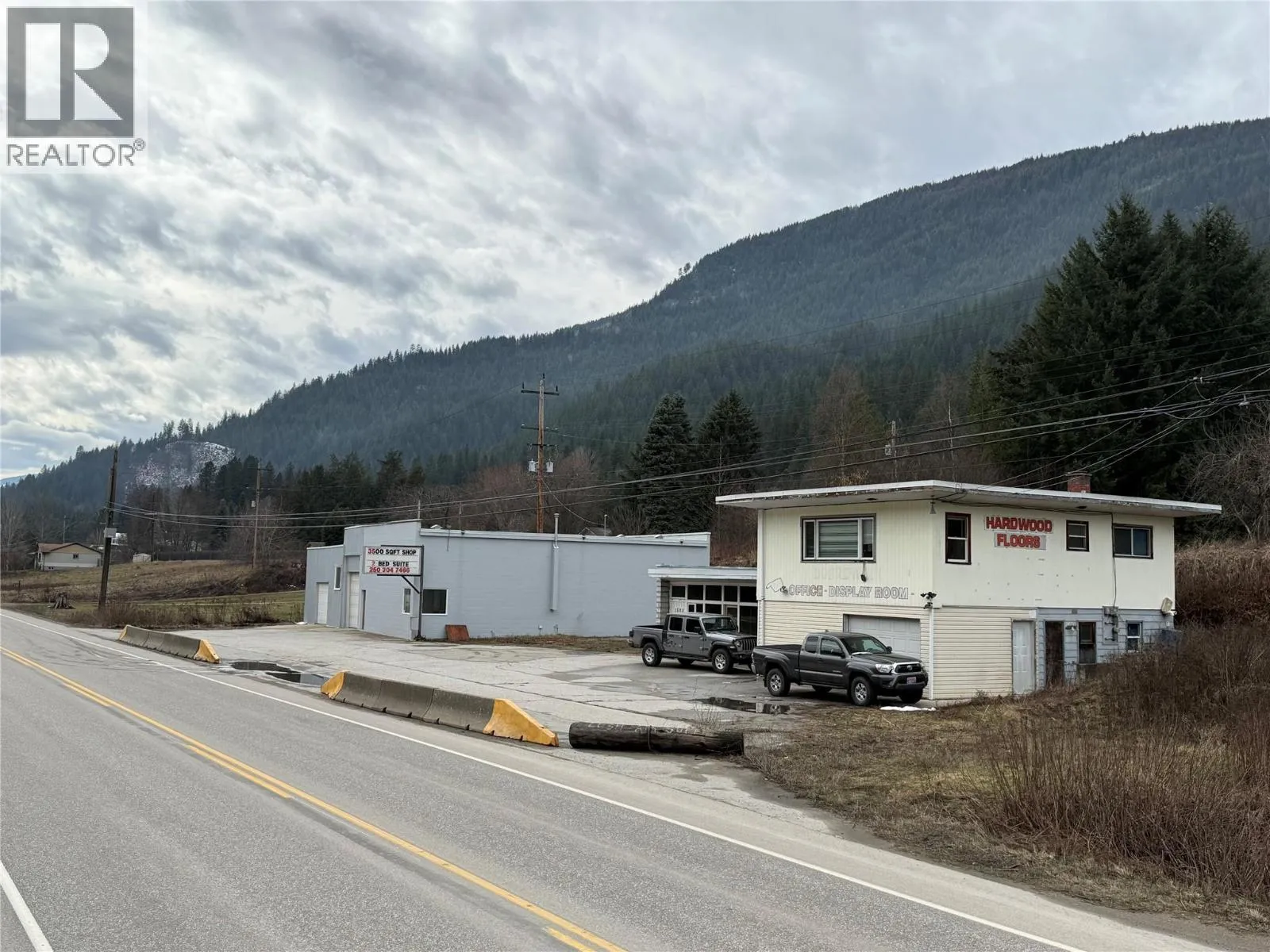 Strategically positioned on a busy highway just minutes from Castlegar, this commercial property offers outstanding visibility and accessibility in a prime location. Centrally situated between Castlegar and Nelson, and only 5 km north of the Castlegar Airport, this versatile property is ideal for investors or business owners seeking strong exposure and convenience to full amenities. The commercially zoned property features two separate warehouse buildings totaling approximately 3,000 sq. ft., both equipped with impressive 14-foot ceilings and a 200-amp power supplyâperfect for a variety of industrial or commercial uses. A second standalone building includes a functional office space of approximately 650 sq. ft., a shared mechanical room, and additional storage, providing flexibility for operations or multiple tenants. Upstairs, a well-appointed two-bedroom, one-bathroom residential suite offers additional income potential or on-site living convenience, complete with its own electrical meter for easy separation of utilities. With excellent highway frontage, strong income potential, and a highly desirable location in a growing corridor, this property presents a rare opportunity to invest in a multi-use commercial asset with built-in revenue streams and long-term upside. (id:27476)