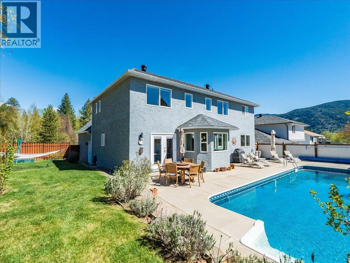 Welcome to 3312 Southridge Drive! Immaculate 4-bedroom, 3-bath home in the highly desirable South end of Castlegar. This stunning property welcomes you with a beautifully upgraded interior and a true outdoor oasis. The home has undergone extensive renovations over the last few years, including newer flooring across the entire main level and upstairs, plus three newly renovated bathrooms and a gorgeous new kitchen. A upgraded furnace ensures efficiency year-round, and thereâs demand hot water and air conditioning for modern comfort. Freshly painted throughout, the main floor features a bright new kitchen with nook and pantry, a separate dining room and living room with a cozy gas fireplace, and a family room with garden doors opening to the back yard. The newly renovated main-floor laundry adds convenience, along with a new 2-piece bathroom for guests. Upstairs youâll find four bedrooms and two updated bathrooms, including a large primary bedroom with a stunning new ensuite featuring heated floors and a walk-in closet. A generous bonus room adds versatile living space. Outside, enjoy the meticulously backyard oasis with a beautiful inground pool, raised garden beds, a new fence, and inground sprinklers for low-maintenance care. This home exudes pride of ownership and offers a rare combination of modern updates, practical layout, and an exceptional outdoor setting. A must-see for discerning buyers seeking comfort, quality, and a premier Castlegar address. (id:27476)
