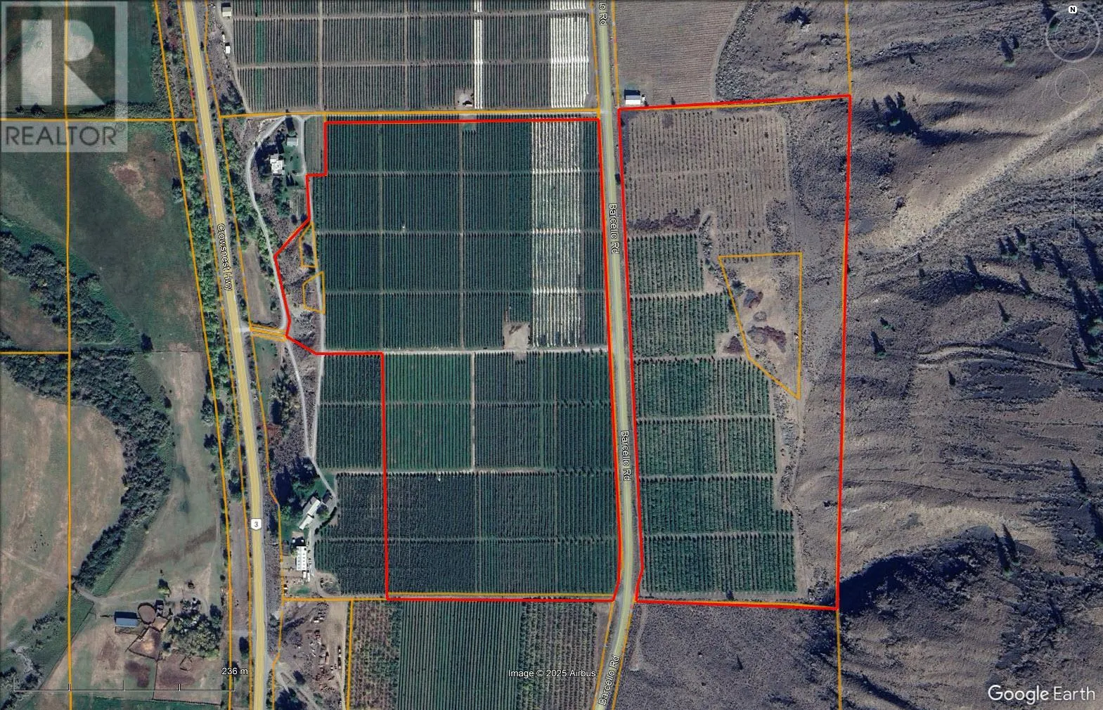 Exceptional 61-acre apple orchard in scenic Cawston, featuring high-density plantings of Galas, Ambrosias, Granny Smiths, and Fujis for premium yield and quality. Situated in a coveted Class 1 soils region, this established and profitable orchard offers modern irrigation, multiple building sites, and great access via Barcelo Road. One of the largest parcels of prime agricultural land in the area. Beautiful views and amazing climate. Just four km south of Cawston and 37 km northwest of Osoyoos, the property is ideal for investors or agricultural enthusiasts looking to expand or continue its legacy. Listed below appraised value, this rare opportunity won't last-call the listing realtor for details. (id:27476)