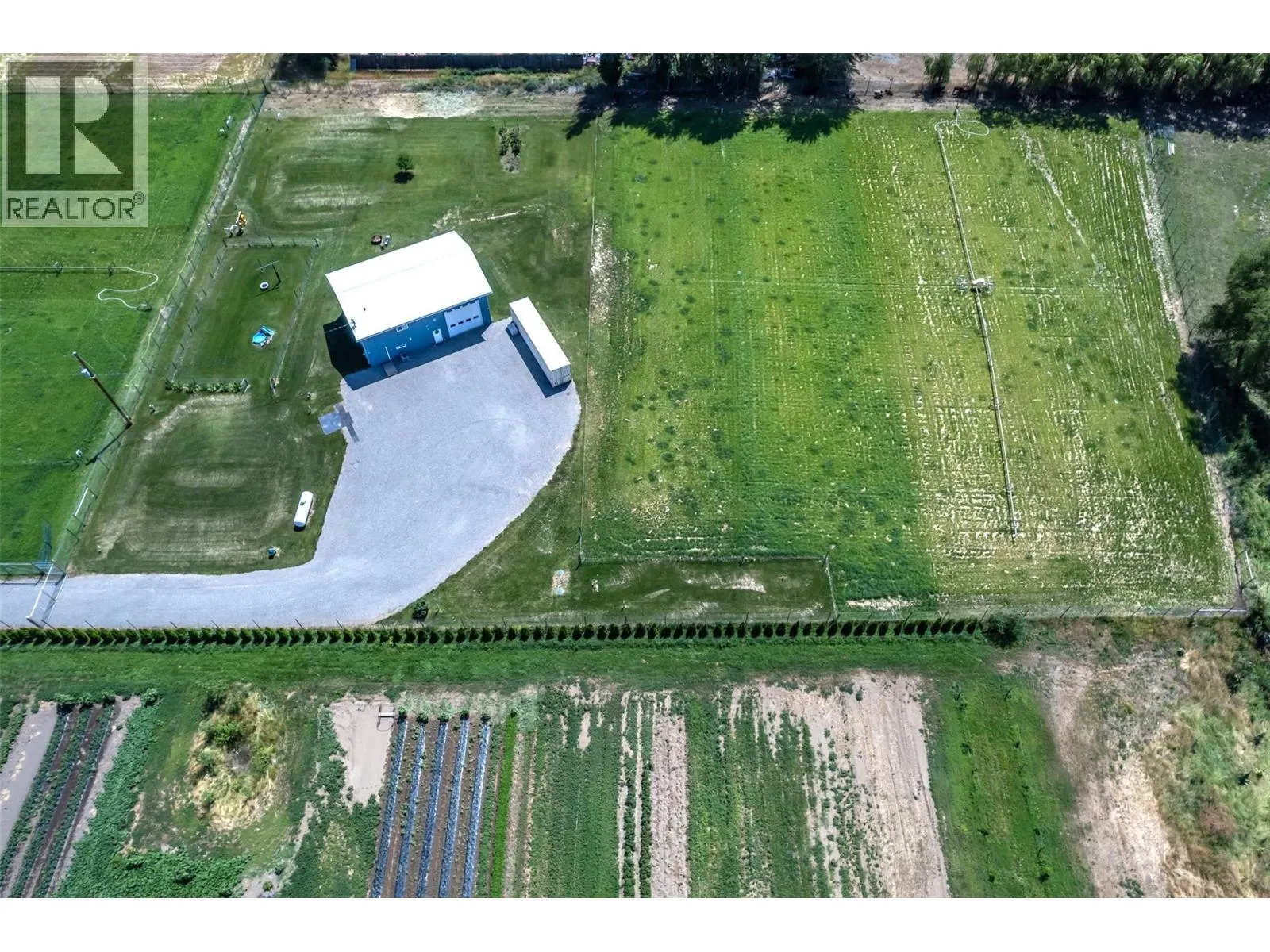 A rare Okanagan acreage that truly has it all. ZONED FOR FLEXIBILITY-This exceptional 6.58-acre property blends practicality, versatility, and natural beautyâperfect for those seeking a peaceful rural retreat, farm, or horse property. The land is flat, fully usable, immaculately maintained, fully irrigated and thoughtfully cared for, the pride of ownership is evident throughout. The move-in-ready, custom-built home offers a bright open-concept layout, a functional kitchen with custom cabinetry, and a spacious primary bedroom complete with built-in closet organizers. A true highlight of the property is the 985 sq. ft. heated workshop, featuring soaring 18-foot ceilings, a 14â x 14â garage door, a 200-amp panel plus an additional 200-amp feed, and a 60-amp receptacleâideal for welding, air tools, or serious projects. Water is abundant with both a domestic well and a separate irrigation well, providing flexibility for future enhancements such as a pool, gardens, or expanded agricultural use. Hosting guests or extended family is effortless with full RV or trailer hookups, including 50-amp power. This turnkey acreage offers endless possibilities in one of the Okanaganâs most desirable rural settings. A must-see property that captures the essence of the Okanagan lifestyleâspace, freedom, and opportunity all in one remarkable package. * Information package is available upon request* Some pictures are virtually staged* (id:27476)