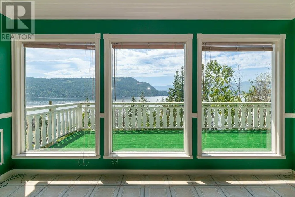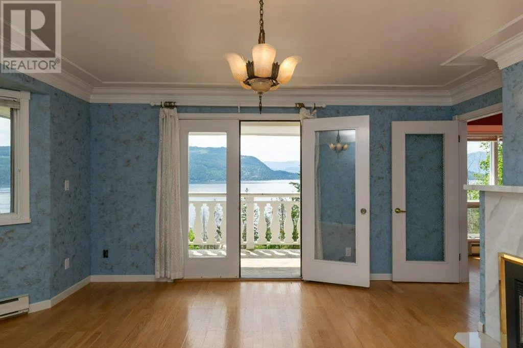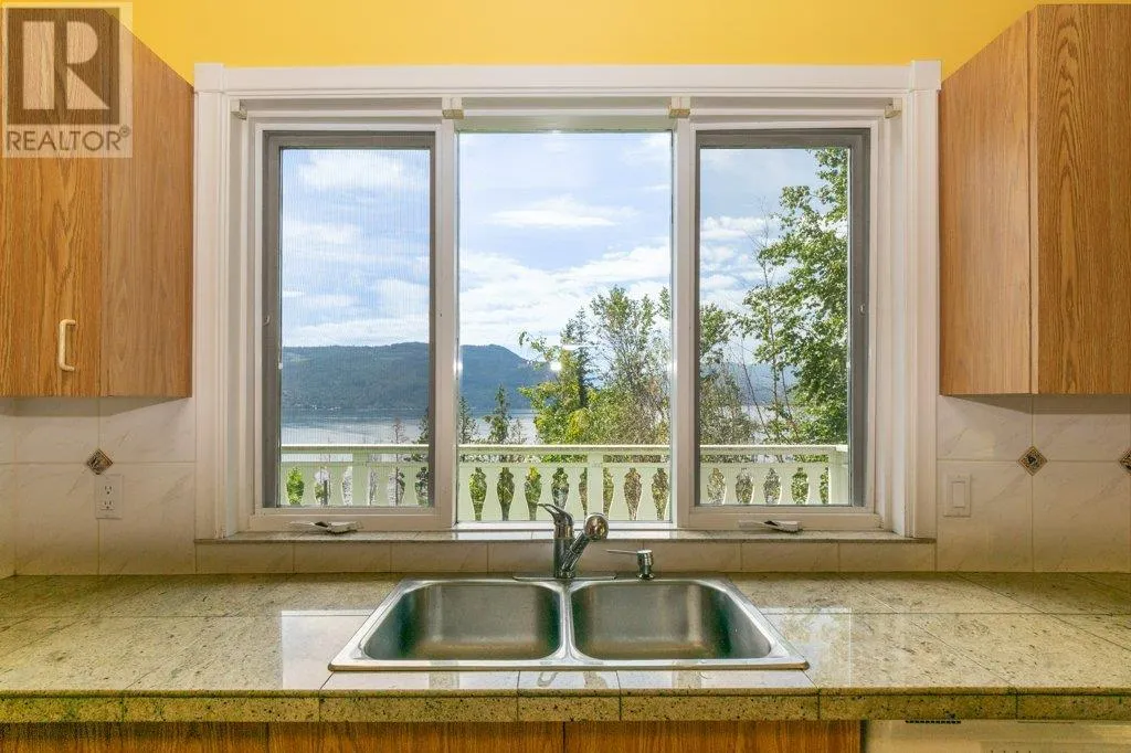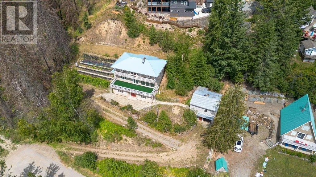 Expansive 4-bedroom mansion with over 3000 square feet across 3 levels. This charming home features 2 living rooms, 4 bathrooms, and a large workshop above the detached single garage. Enjoy stunning lake views from the huge sundeck and second smaller sundeck. The property offers the potential for membership to a private beach and boat launch. Updates include a newer metal roof and deck. Relax in the private lawn area surrounded by beautiful gardens. This is a rare opportunity to own a spacious and well-maintained retreat with ample space for indoor and outdoor living. (id:27476)