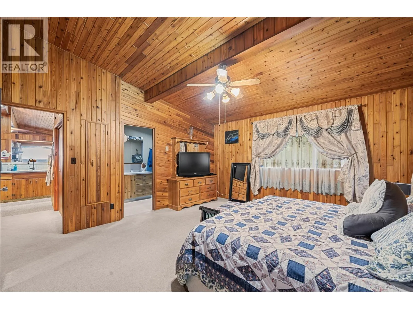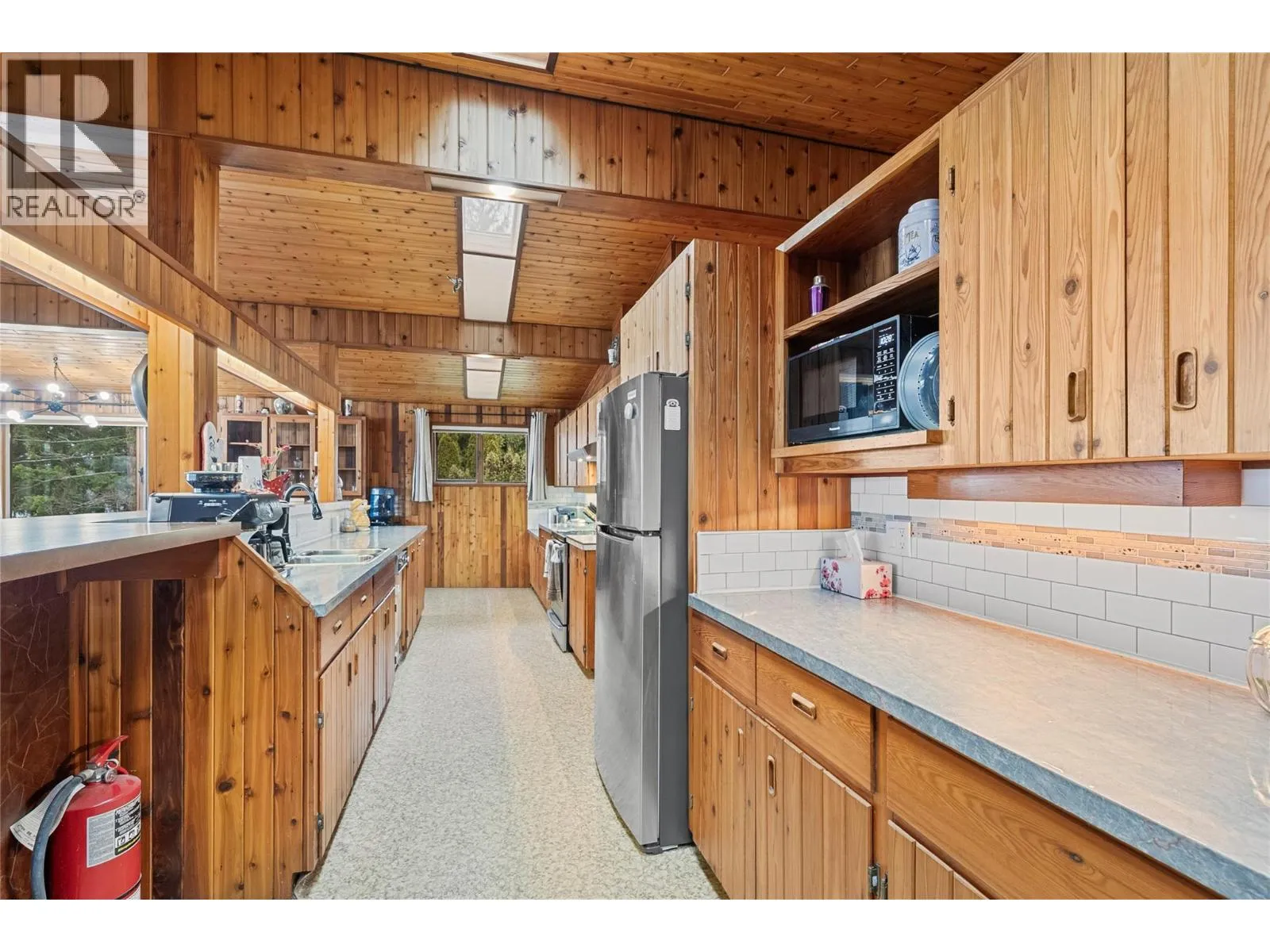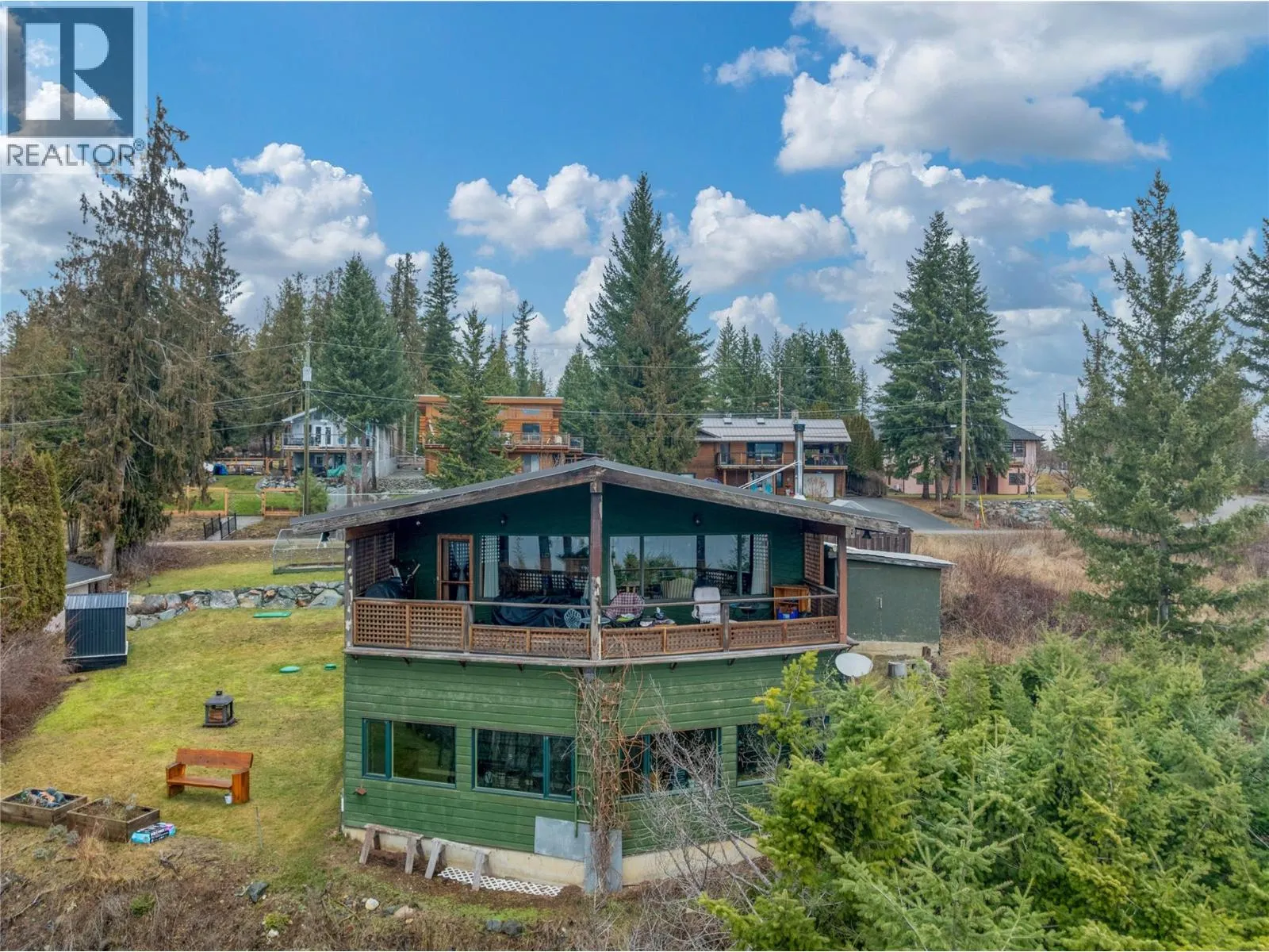 Welcome to this stunning 4 bedroom, 3 bathroom lake view home, offering over 2800 sq/ft. of thoughtfully designed living space on a quiet road in paradise. This home features large open-concept floor plan, 10-foot ceilings, and 180-degree panoramic views of Shuswap Lake that can be enjoyed from a covered deck. Located in Meadow Creek Properties, ownership includes membership rights to 1,600 feet of private lakefront, complete with a boat launch, volleyball court, and moreâthe perfect setting for the family. Inside, youâll find vaulted ceilings, and an abundance of natural light from newer skylights, all protected by a standing-seam metal roof installed in 2021. The home is equipped with two propane fireplaces, a new wood-burning fireplace, and a heat pump with A/C for year-round comfort. The kitchen offers practical roll-out cabinetry, expansive countertops and exceptional storage throughout. The large vaulted master bedroom with ensuite is waiting for your personal updates with incredible potential. Additional features include main floor laundry, built-in vacuum, electric heat pump, garden bed and tons of storage space. Outside, enjoy the privacy of a no-through road next to a cul-de-sac, and lake view gardening with plenty of sunshine facing south. (id:27476)