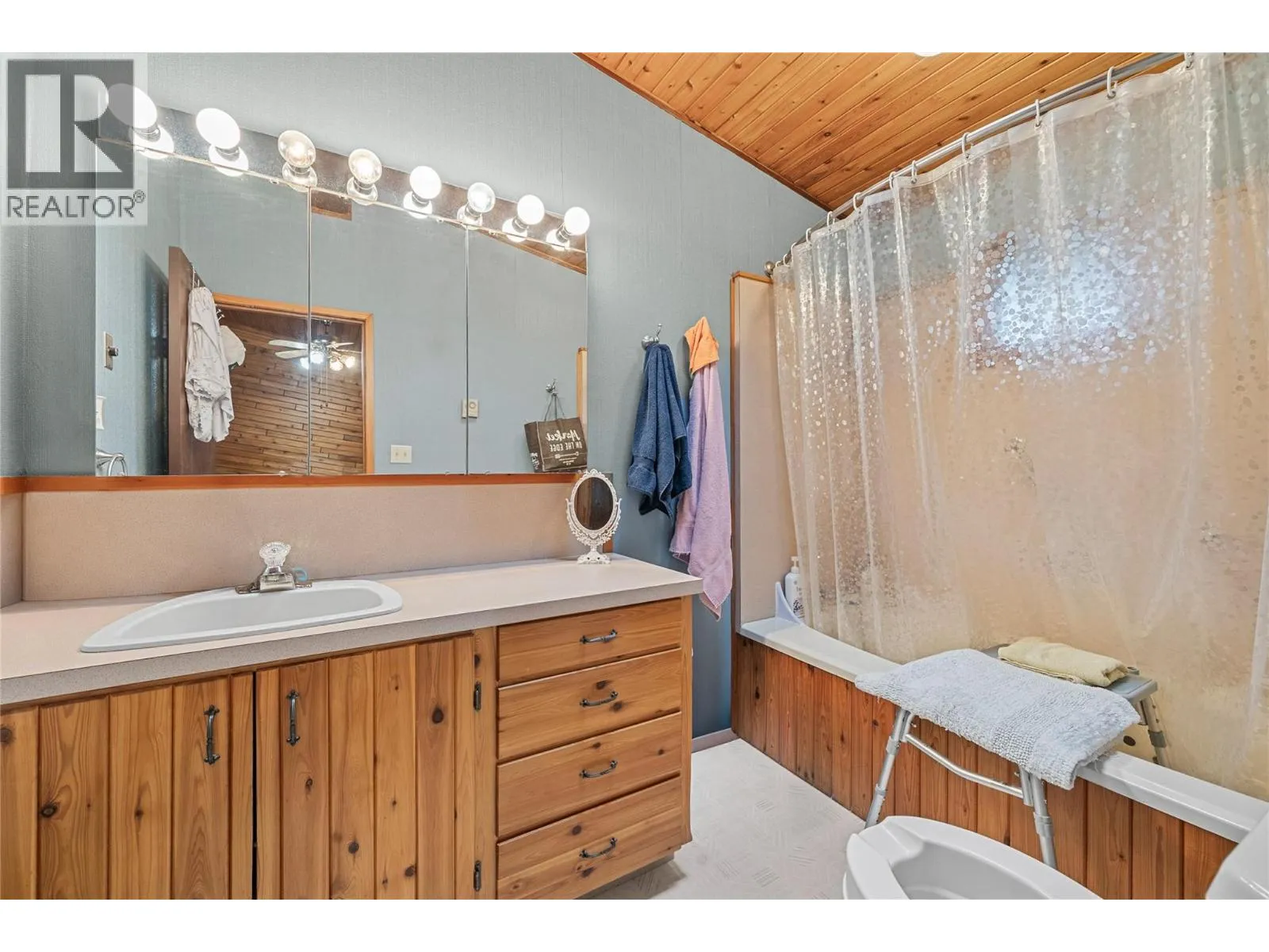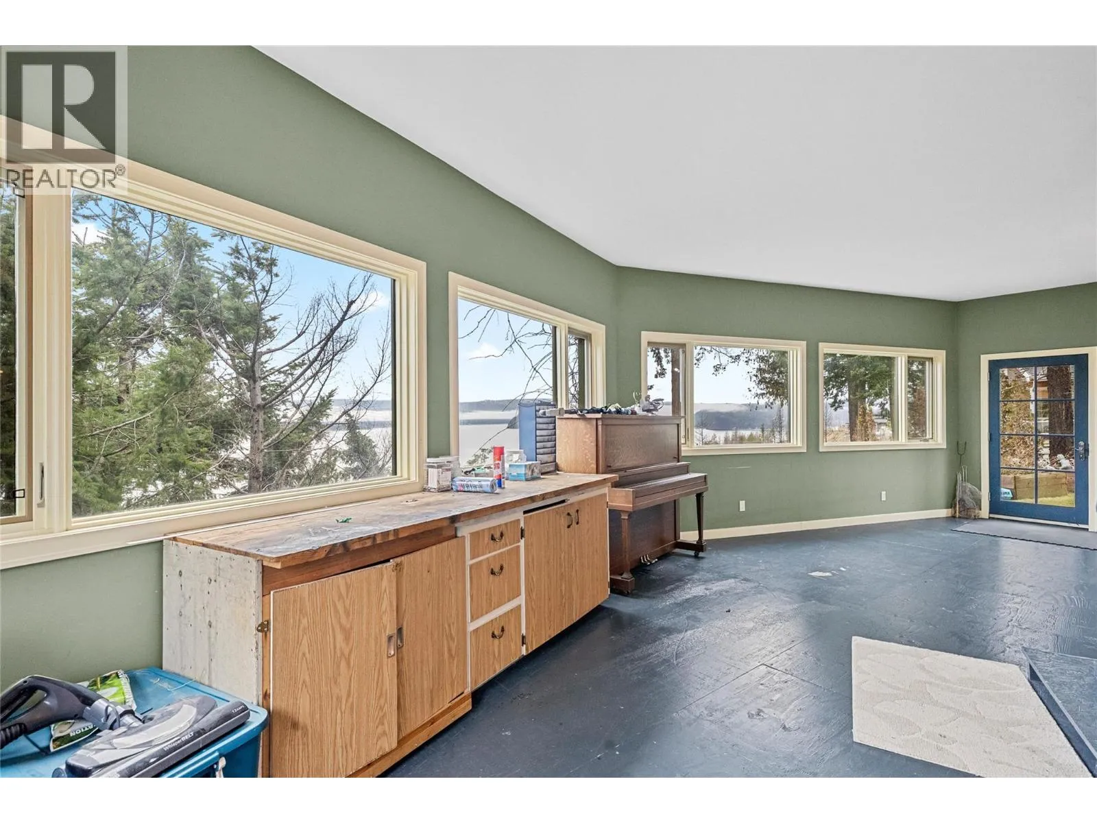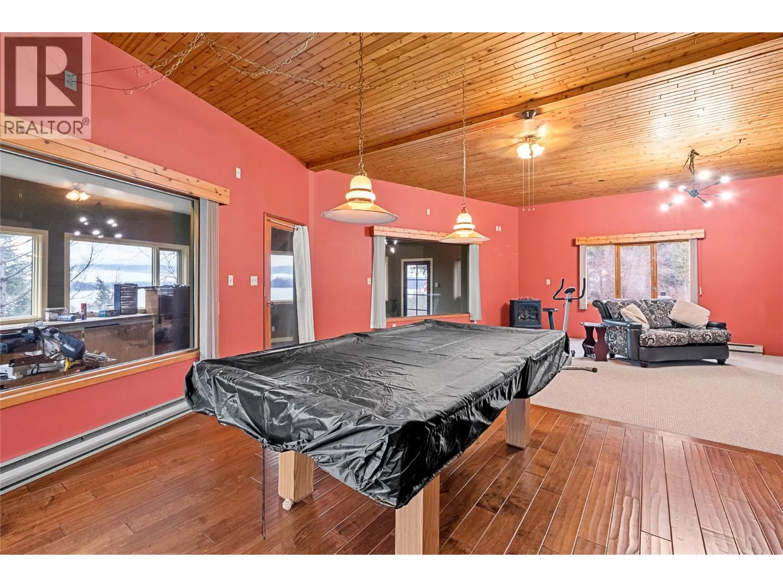 Welcome to this stunning 4 bedroom, 3 bathroom lake view home, offering over 2800 sq/ft. of thoughtfully designed living space on a quiet road in paradise. This home features large open-concept floor plan, 10-foot ceilings, and 180-degree panoramic views of Shuswap Lake that can be enjoyed from a covered deck. Located in Meadow Creek Properties, ownership includes membership rights to 1,600 feet of private lakefront, complete with a boat launch, volleyball court, and moreâthe perfect setting for the family. Inside, youâll find vaulted ceilings, and an abundance of natural light from newer skylights, all protected by a standing-seam metal roof installed in 2021. The home is equipped with two propane fireplaces, a new wood-burning fireplace, and a heat pump with A/C for year-round comfort. The kitchen offers practical roll-out cabinetry, expansive countertops and exceptional storage throughout. The large vaulted master bedroom with ensuite is waiting for your personal updates with incredible potential. Additional features include main floor laundry, built-in vacuum, electric heat pump, garden bed and tons of storage space. Outside, enjoy the privacy of a no-through road next to a cul-de-sac, and lake view gardening with plenty of sunshine facing south. (id:27476)