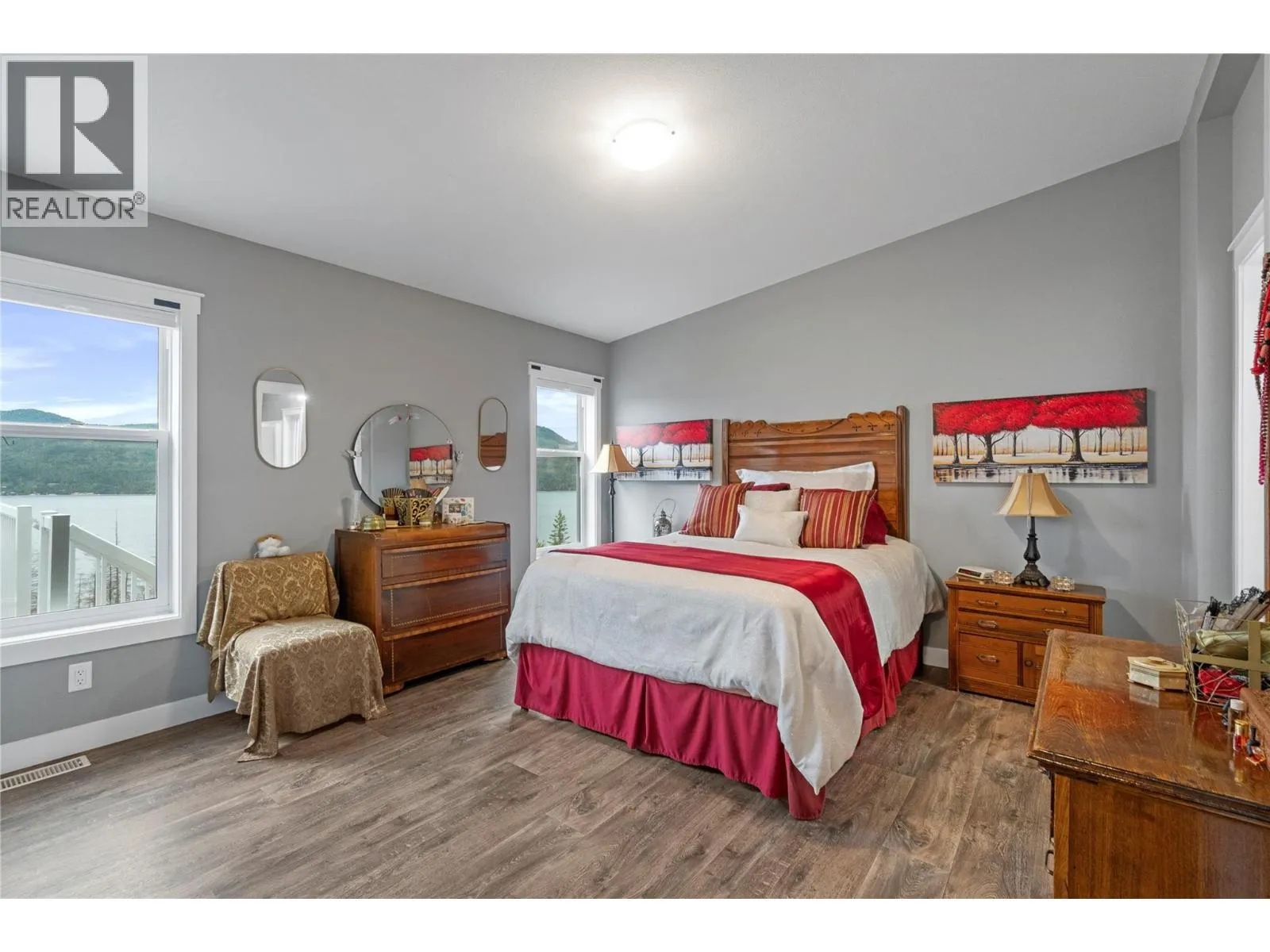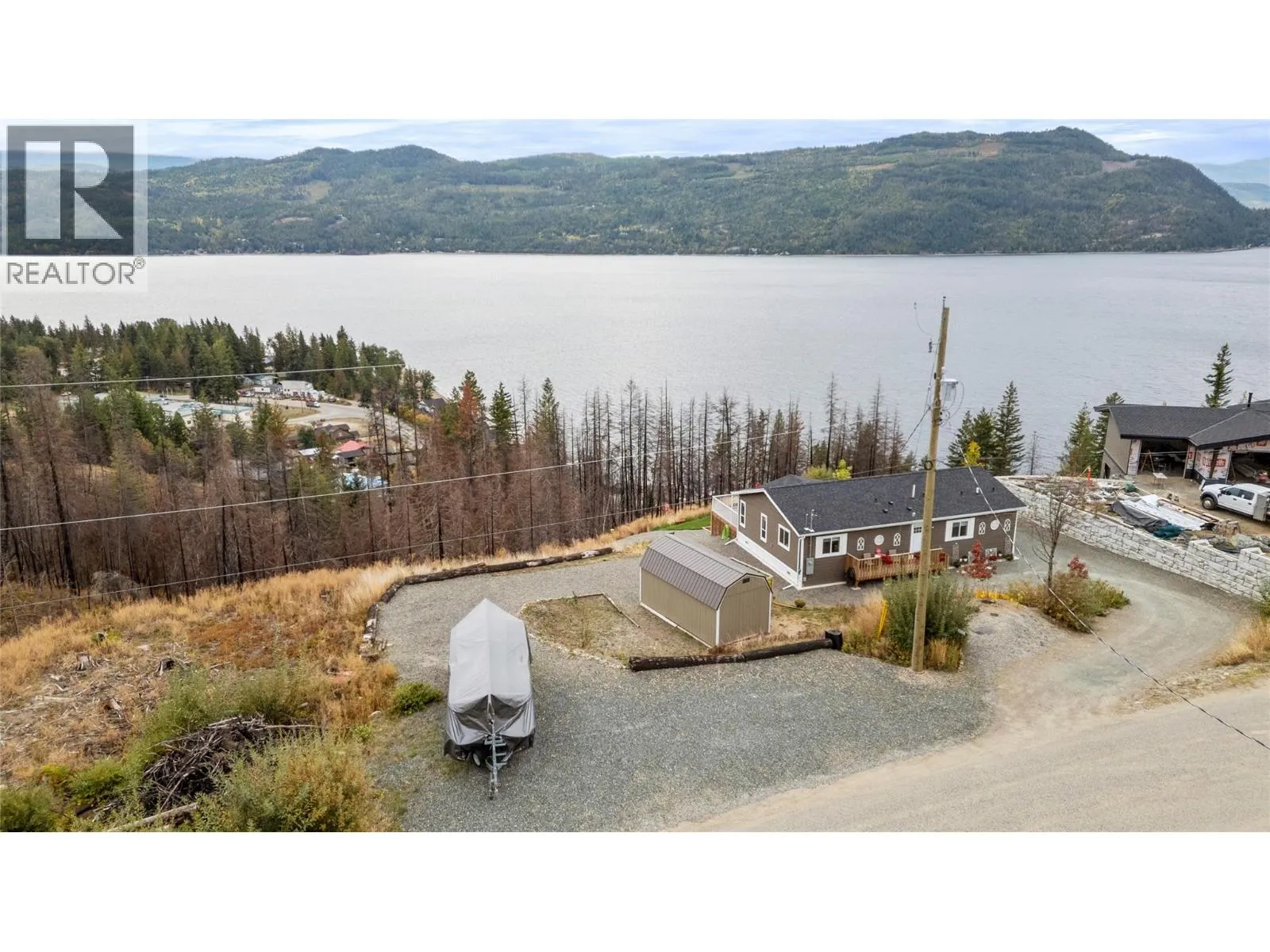Welcome to this stunning 2024 Cornerstone Modular Home in Celista, offering panoramic views of Shuswap Lake and the surrounding mountains. Thoughtfully designed for both comfort and lifestyle, this 2-bedroom, 2-bathroom home features an open-concept floor plan with high ceilings and quality 2x6 construction. A dedicated office provides flexibility and could easily be converted into a third bedroom if needed. Outdoor living is just as impressive, with a large deck perfectly positioned to capture the breathtaking scenery. Below, is a fire pit area overlooking the lake, offering an ideal setting for evening gatherings with family and friends. Ownership includes access to Meadow Creek Properties for a low annual fee, with 1,600 feet of beach access, a dock for loading and offloading, and a boat launch. An added bonus is the included adjacent lot next door, presenting incredible potential to build a garage with a carriage house or a workshop. The home is covered under New Home Warranty, and a heat pump is currently being installed to provide efficient year-round comfort. Ideally situated close to North Shuswap Elementary School, the Bristow Road boat launch, and Fetch Panda Convenience Store. Winter enthusiasts will appreciate being near Crowfoot Mountain for snowmobiling, while summer brings endless adventure on the lake. This is a rare opportunity to enjoy modern lakeview living with year-round outdoor adventure right at your doorstep. (id:27476)
