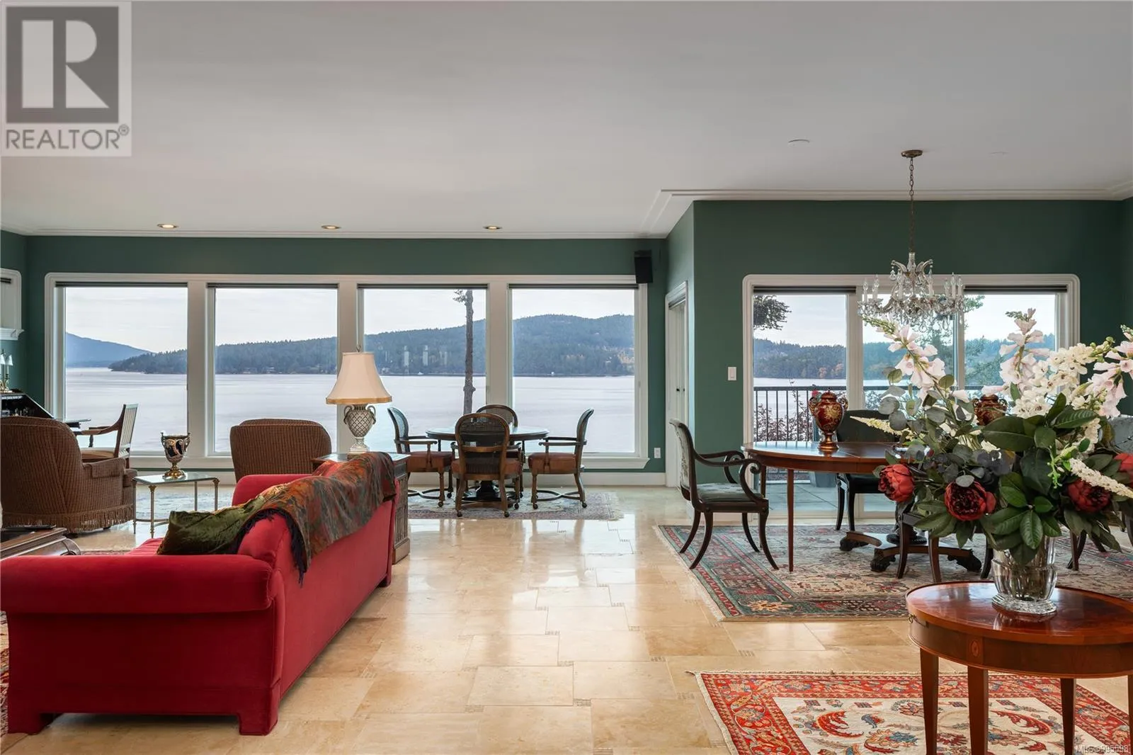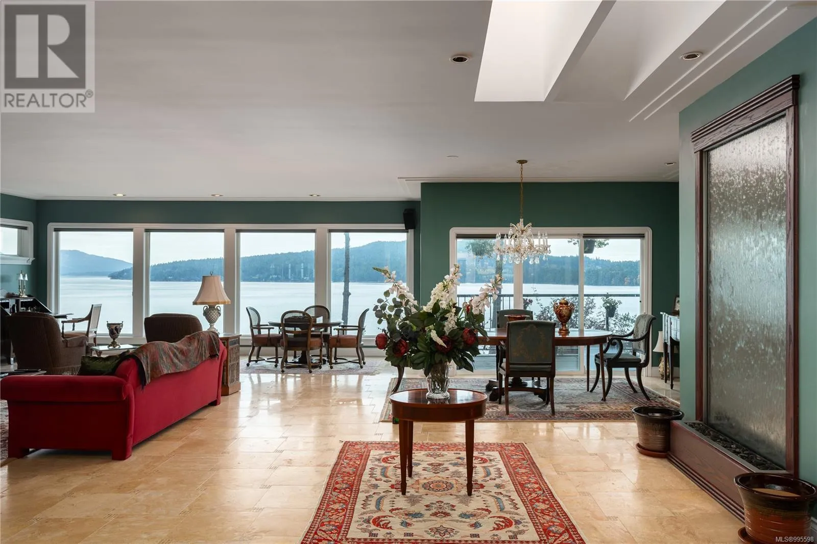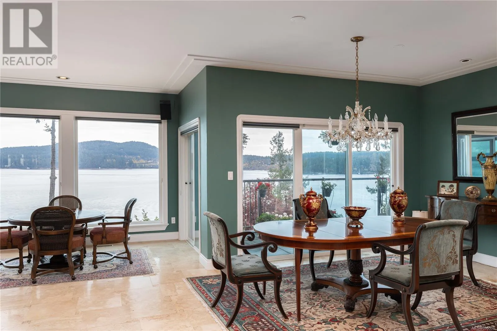 Welcome to 7318 Mark Lane. A serene oceanfront retreat in Willis Point. This remarkable property offers an idyllic oceanfront escape that dreams are made of. With its own private dock and breathtaking views from nearly every room, this coastal gem is a sanctuary of serenity. The home features extremely large rooms that provide a sense of scale that must be experienced to be fully appreciated. It's an ideal canvas for both luxurious living and entertaining. The home boasts vaulted ceilings that create a sense of space and airiness, adding to the overall grandeur of the property with awe-inspiring vistas of Brentwood Marina and Senanus. Expansive walls of windows ensure you never miss a moment of the natural beauty surrounding you. The kitchen is a chef's dream, featuring two islands and modern amenities. It's not just a place for cooking; it's a gathering spot where friends and family can enjoy the beauty of the surroundings. The primary suite is a true haven, complete with a walk-in closet, ensuite bath, and a walkout to your very own hot tub. Relax and unwind while enjoying the sights and sounds of the ocean. With a generous 1500 square feet of deck and patio space, outdoor living is a delight. Take in the captivating views, soak up the sun, or entertain guests in style. The warm, calm waters of Saanich Inlet provide one of Vancouver Island's most coveted waterfront settings, perfect for boating, kayaking, paddleboarding, and all your water adventures. Prawning and crabbing are just a short distance away from your private wharf. Deep moorage is available for boats of all sizes, making it easy to indulge in your marine passions. (id:27476)