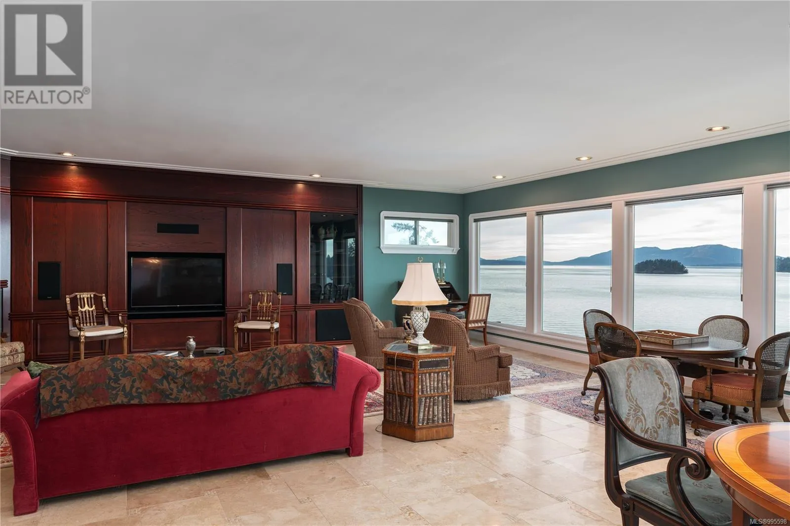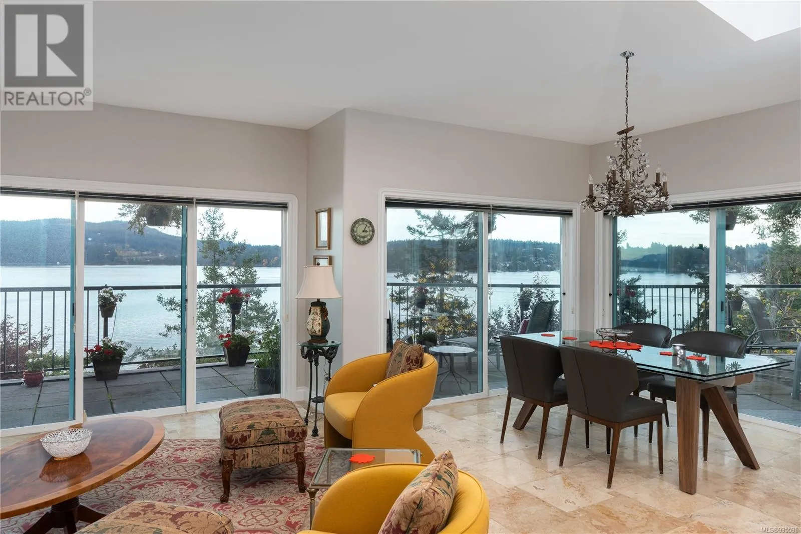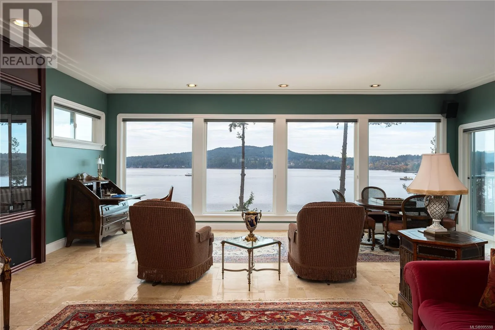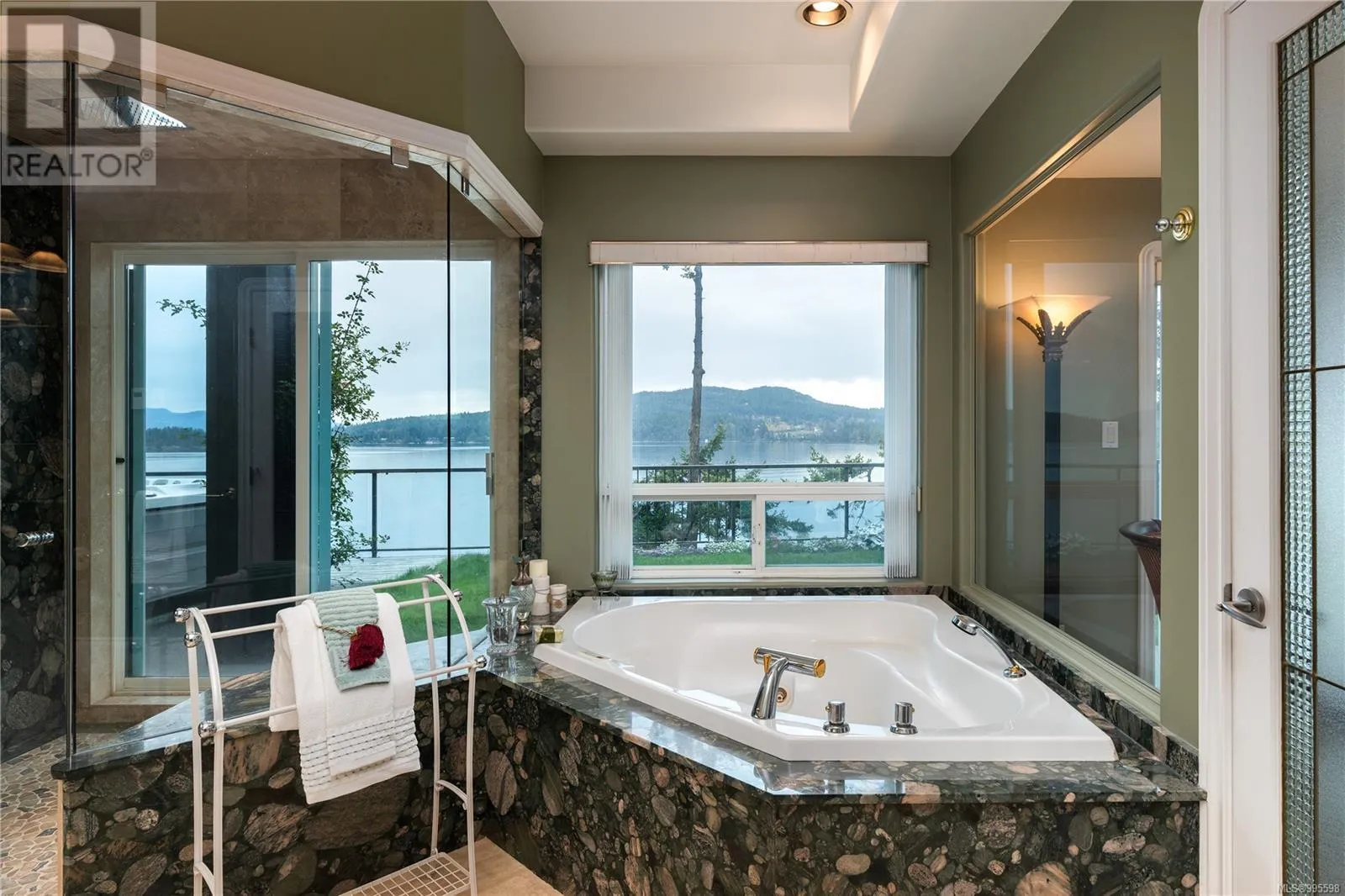 Welcome to 7318 Mark Lane. A serene oceanfront retreat in Willis Point. This remarkable property offers an idyllic oceanfront escape that dreams are made of. With its own private dock and breathtaking views from nearly every room, this coastal gem is a sanctuary of serenity. The home features extremely large rooms that provide a sense of scale that must be experienced to be fully appreciated. It's an ideal canvas for both luxurious living and entertaining. The home boasts vaulted ceilings that create a sense of space and airiness, adding to the overall grandeur of the property with awe-inspiring vistas of Brentwood Marina and Senanus. Expansive walls of windows ensure you never miss a moment of the natural beauty surrounding you. The kitchen is a chef's dream, featuring two islands and modern amenities. It's not just a place for cooking; it's a gathering spot where friends and family can enjoy the beauty of the surroundings. The primary suite is a true haven, complete with a walk-in closet, ensuite bath, and a walkout to your very own hot tub. Relax and unwind while enjoying the sights and sounds of the ocean. With a generous 1500 square feet of deck and patio space, outdoor living is a delight. Take in the captivating views, soak up the sun, or entertain guests in style. The warm, calm waters of Saanich Inlet provide one of Vancouver Island's most coveted waterfront settings, perfect for boating, kayaking, paddleboarding, and all your water adventures. Prawning and crabbing are just a short distance away from your private wharf. Deep moorage is available for boats of all sizes, making it easy to indulge in your marine passions. (id:27476)