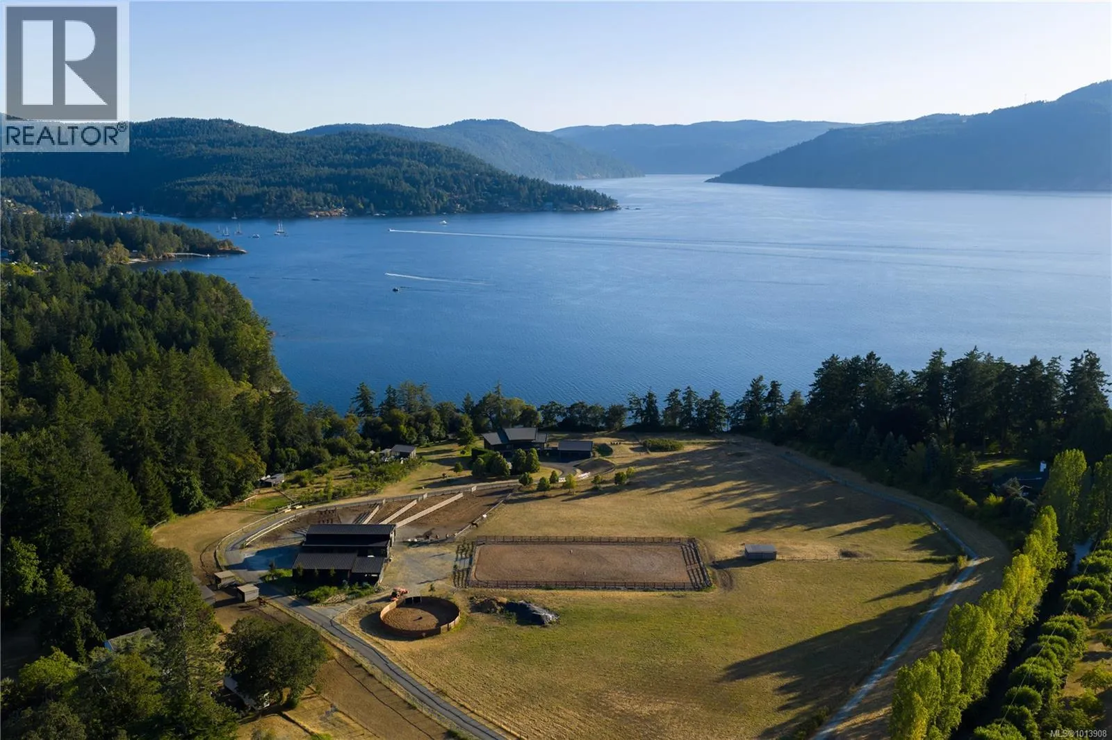 Roundstone Estate â A luxury equestrian property by the Sea. Set on nearly 14 acres, including 236 feet of pristine waterfront in Central Saanich, Southern Vancouver Island, this rare offering blends modern architecture with pastoral beauty. The re-imagined 2010 residence showcases steel beams, cedar cladding, Loewen glass, soaring ceilings, and a chefâs kitchen with Wolf, Sub-Zero, and Miele appliances. Comfort is assured with radiant in-floor heating, five-zone cooling, and backup generator. Equestrian facilities include a 72â x 36â stable with six stalls, heated tack rooms, wash bay, riding ring, and multiple fenced paddocks and pastures. A 180-mixed-fruit tree orchard, abundant irrigation, and Hagen Creek water rights ensure sustainable living. A self-sustaining sanctuary designed for elegance, equestrian pursuits, and oceanfront serenity a short drive from Victoria International Airport, Swartz Bay ferry terminal and the city of Victoria. (id:27476)