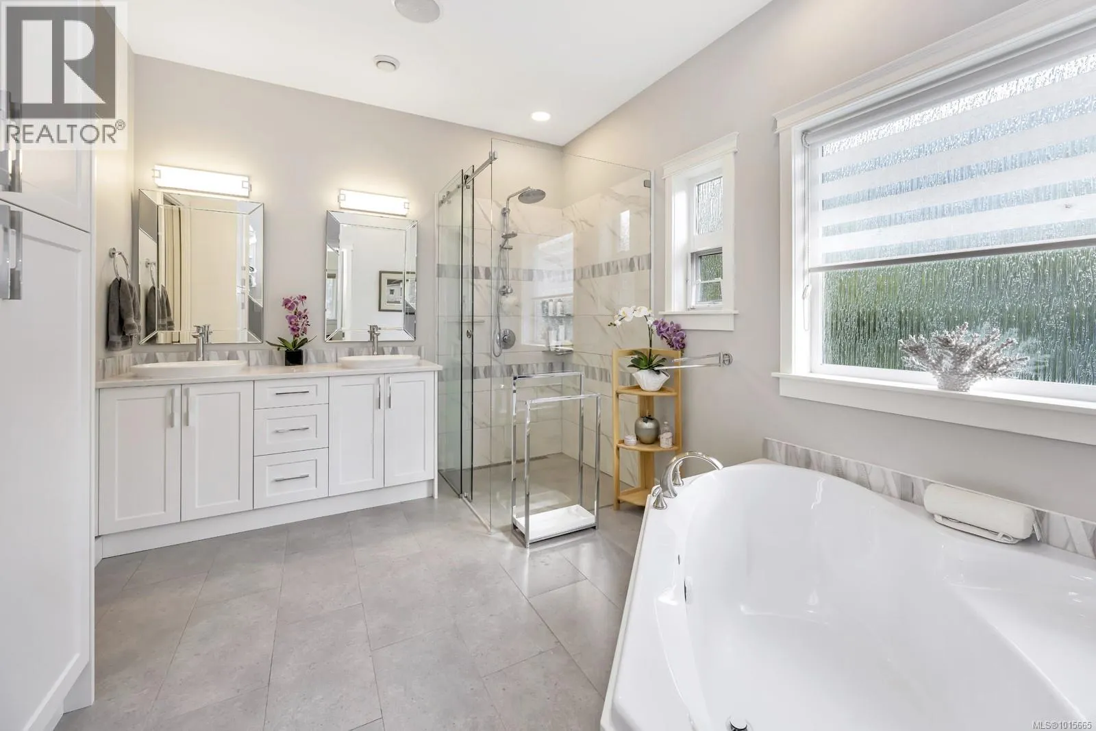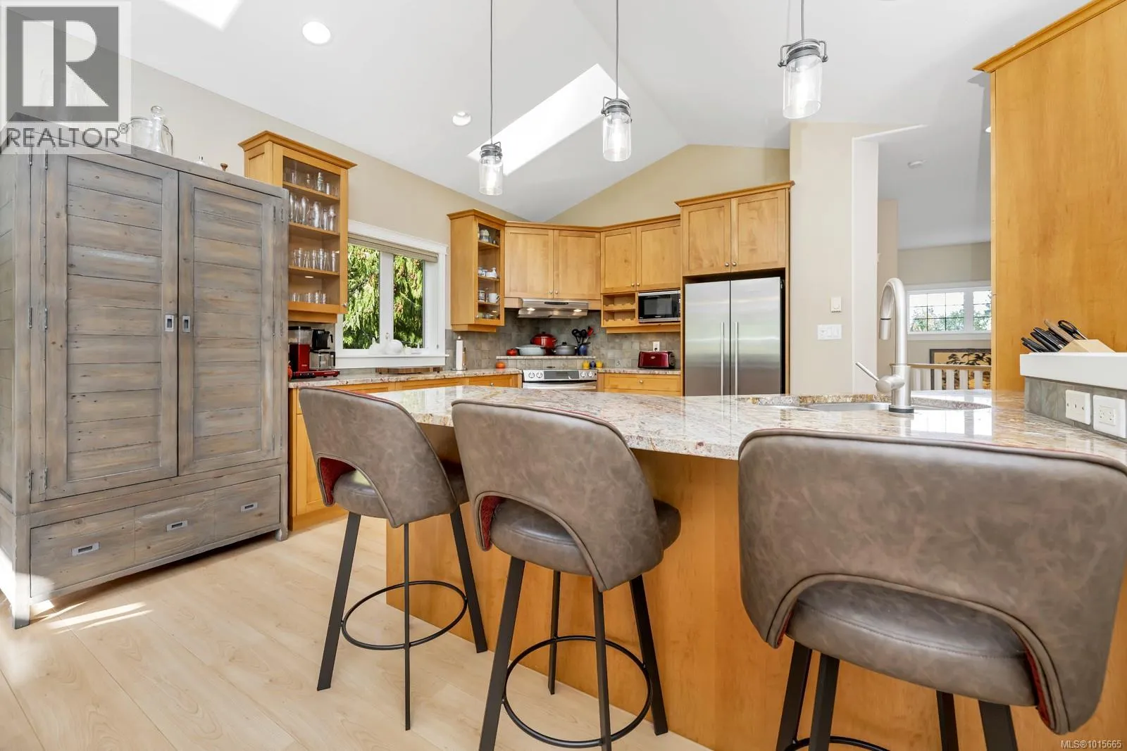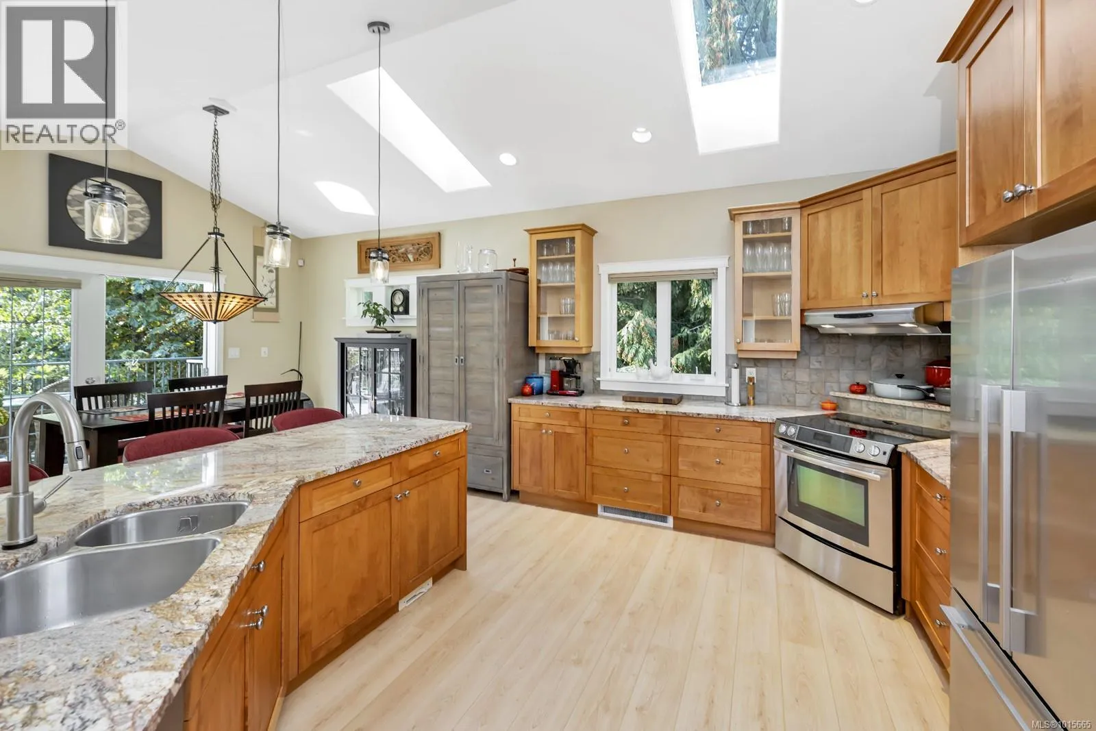 Generational Family Living! Custom built & designed in 2002 as two independent homes for family or equal ownership. Viewing will enlighten your appeal with its many windows & stylish open plans, all beautifully maintained & updated inside & out with recent upgrades. The grand two level entry boasts a circular open stairway leading to the welcoming upper main living level, vaulted ceilings & skylights in the kitchen, 3 bedrooms, deluxe ensuite-renovated bathrooms with heated floors. Ground level 2 bedroom suite on full crawl space, two private entrances with direct access to extensive patios/decks, gazebo & rear gardens, lots of light with extra sunroom/family room, custom renovated kitchen with high end appliances, new gas fireplace, deluxe ensuite/main bath, second bedroom could be fourth bedroom for upstairs. Features include 9 ft ceilings on both levels, two HRV's, gas BBQ's, granite/quartz counters, sundeck, covered front porch, triple wide driveway & double garage plus RV parking. (id:27476)
