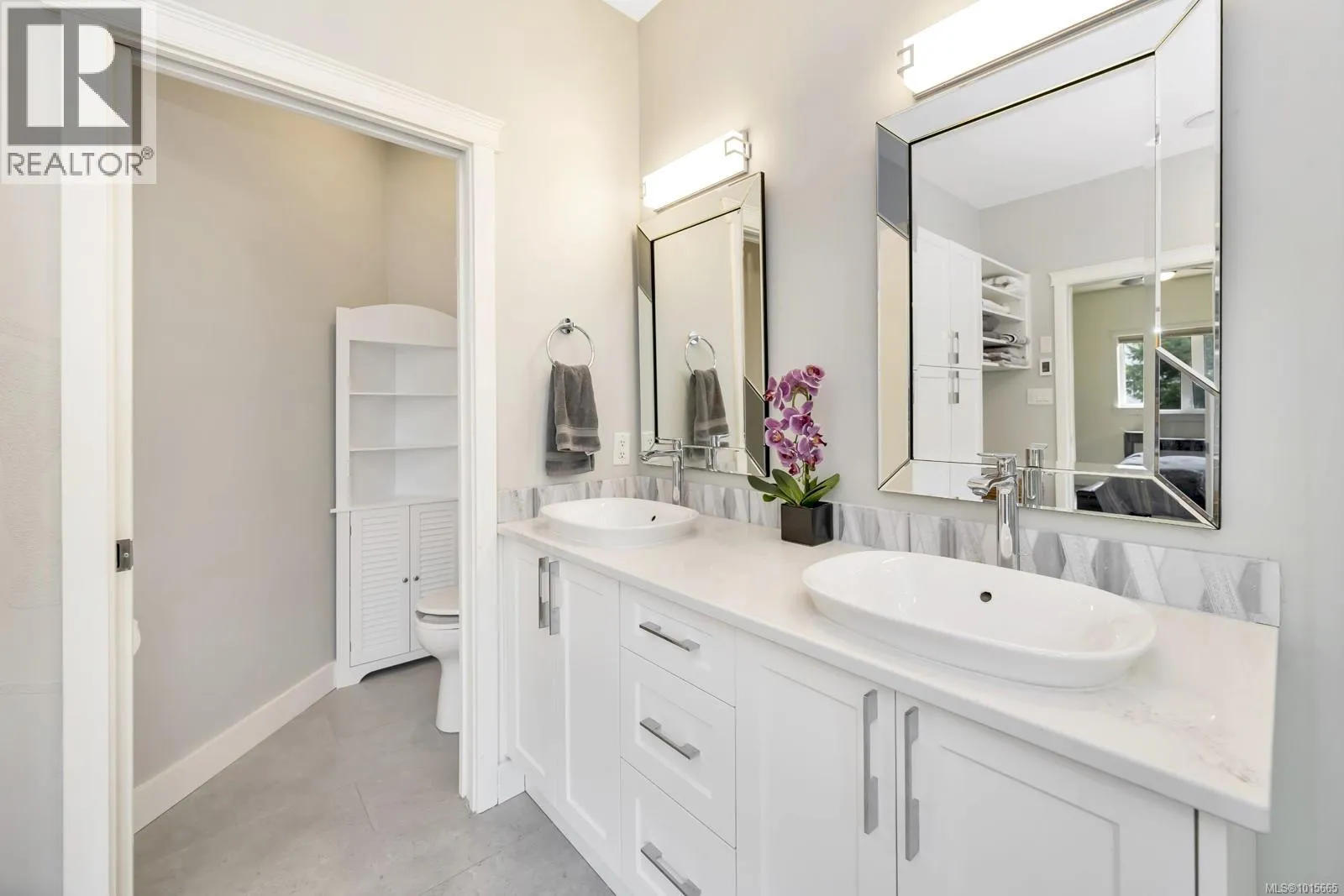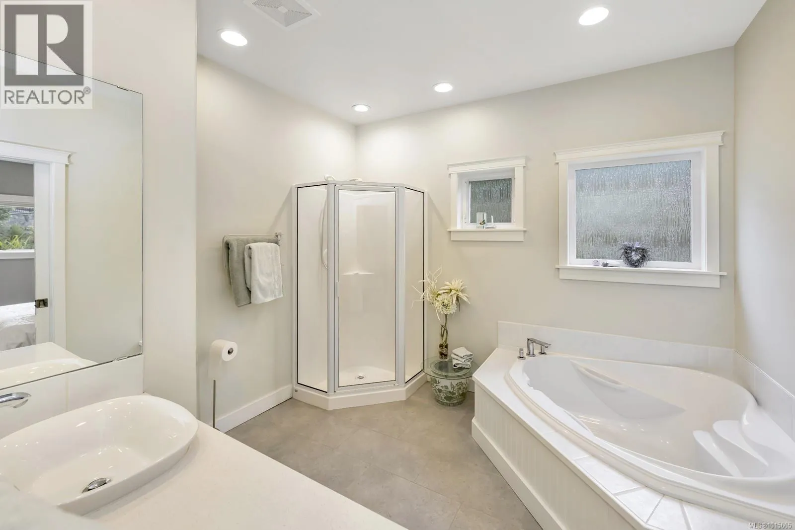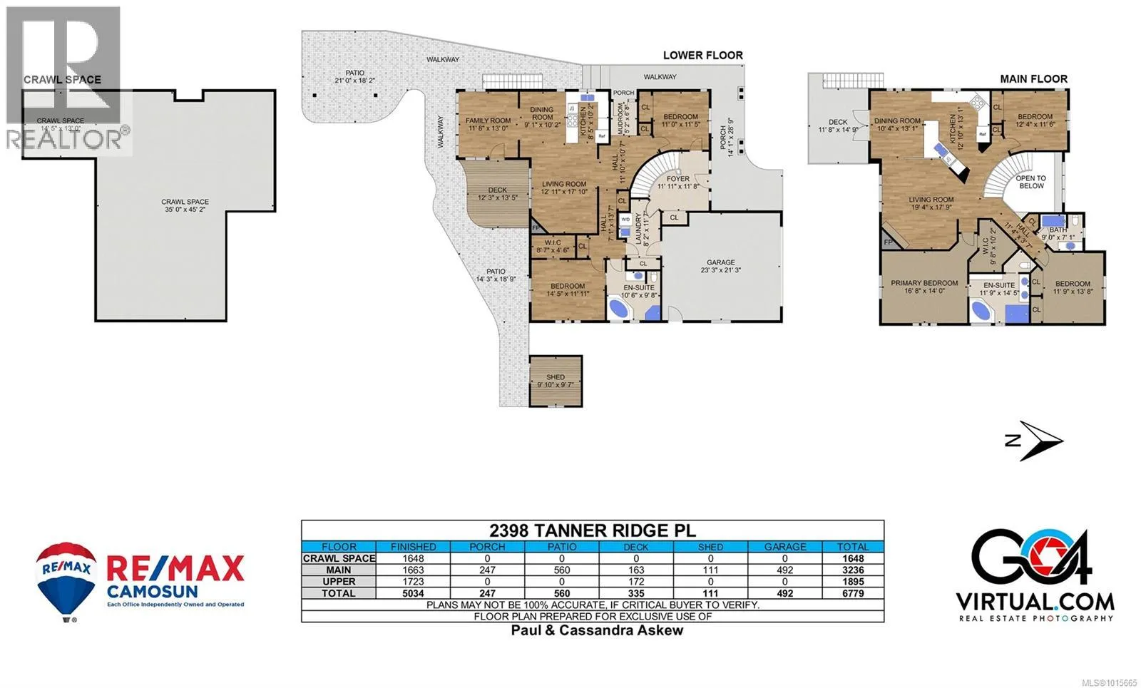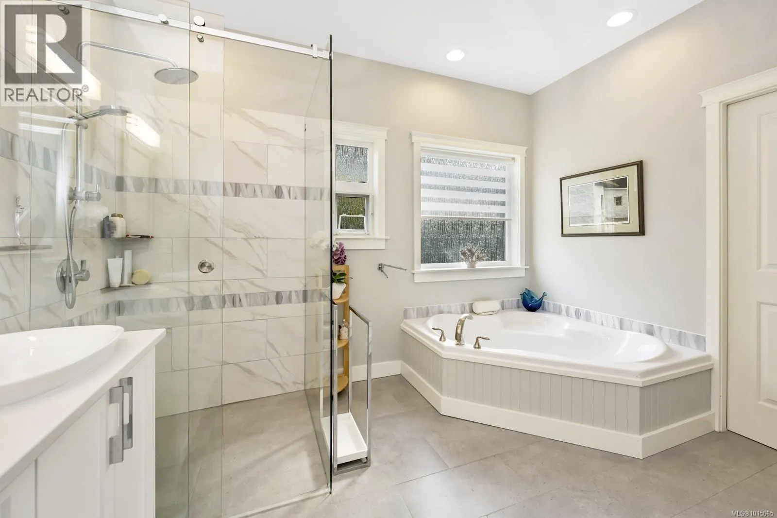 Generational Family Living! Custom built & designed in 2002 as two independent homes for family or equal ownership. Viewing will enlighten your appeal with its many windows & stylish open plans, all beautifully maintained & updated inside & out with recent upgrades. The grand two level entry boasts a circular open stairway leading to the welcoming upper main living level, vaulted ceilings & skylights in the kitchen, 3 bedrooms, deluxe ensuite-renovated bathrooms with heated floors. Ground level 2 bedroom suite on full crawl space, two private entrances with direct access to extensive patios/decks, gazebo & rear gardens, lots of light with extra sunroom/family room, custom renovated kitchen with high end appliances, new gas fireplace, deluxe ensuite/main bath, second bedroom could be fourth bedroom for upstairs. Features include 9 ft ceilings on both levels, two HRV's, gas BBQ's, granite/quartz counters, sundeck, covered front porch, triple wide driveway & double garage plus RV parking. (id:27476)