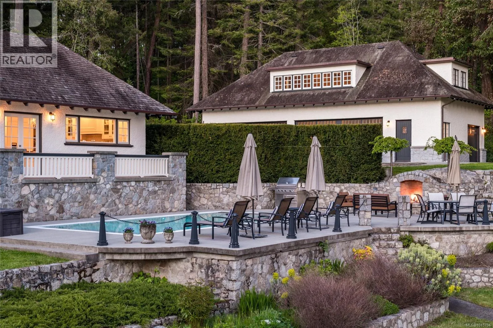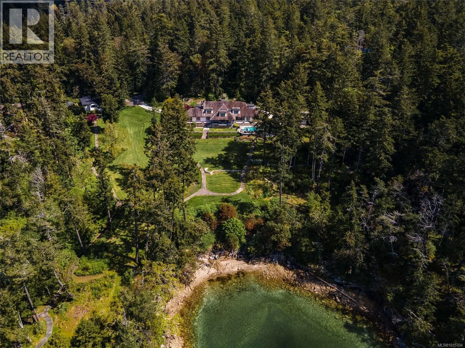 Commissioned in the 1920s, this Samuel McClure-era home combines timeless architectural beauty with modern updates, while preserving its old-world charm. Situated on nearly 5 acres, this waterfront estate offers breathtaking views of Squally Reach, Senanus Island, and Saanich Inlet. The property is private, gated, and peaceful, providing a perfect retreat surrounded by nature. The main home features superior craftsmanship and sweeping water views from every principal room. The gourmet kitchen boasts custom cabinetry, stone countertops, high-end appliances, a pantry, and an island with bar seating. The adjacent dining area is ideal for hosting, and the stylish living room, with its statement fireplace, leads to a covered deck. The primary suite includes a walk-in closet, fireplace, and three-piece ensuite, with deck access. The main floor also offers a second bedroom, a study, a family room, mudroom, and two bathrooms. Upstairs, the second primary suite features a spa-like ensuite and walk-in closet, along with two more bedrooms, two bathrooms, a balcony, and ample attic storage. The lower level is an entertainment hub, with a billiards room, media room, sitting area, and changing room. A separate Caretakerâs/Guest Cottage includes two bedrooms, a bathroom, laundry, a full kitchen, and a family room. The workshop features 12-foot garage doors for boat or RV storage and includes woodworking equipment, work benches, mezzanine, and attic storage. The estate has two distinct waterfront features: a sheltered bay for swimming and tidepool exploration, and a point with deeper water access, perfect for watersports, along with stunning vistas and sunsets. Exceptional outdoor living spaces include a swimming pool, multiple patios, meandering trails, and manicured landscaping. Explore the bountiful surrounding waters and rugged coastline from your yacht or pleasure craft, with the convenience of a boathouse with a mechanized marine way. True resort style living year round! (id:27476)
