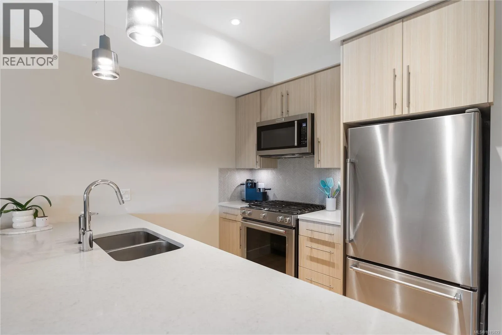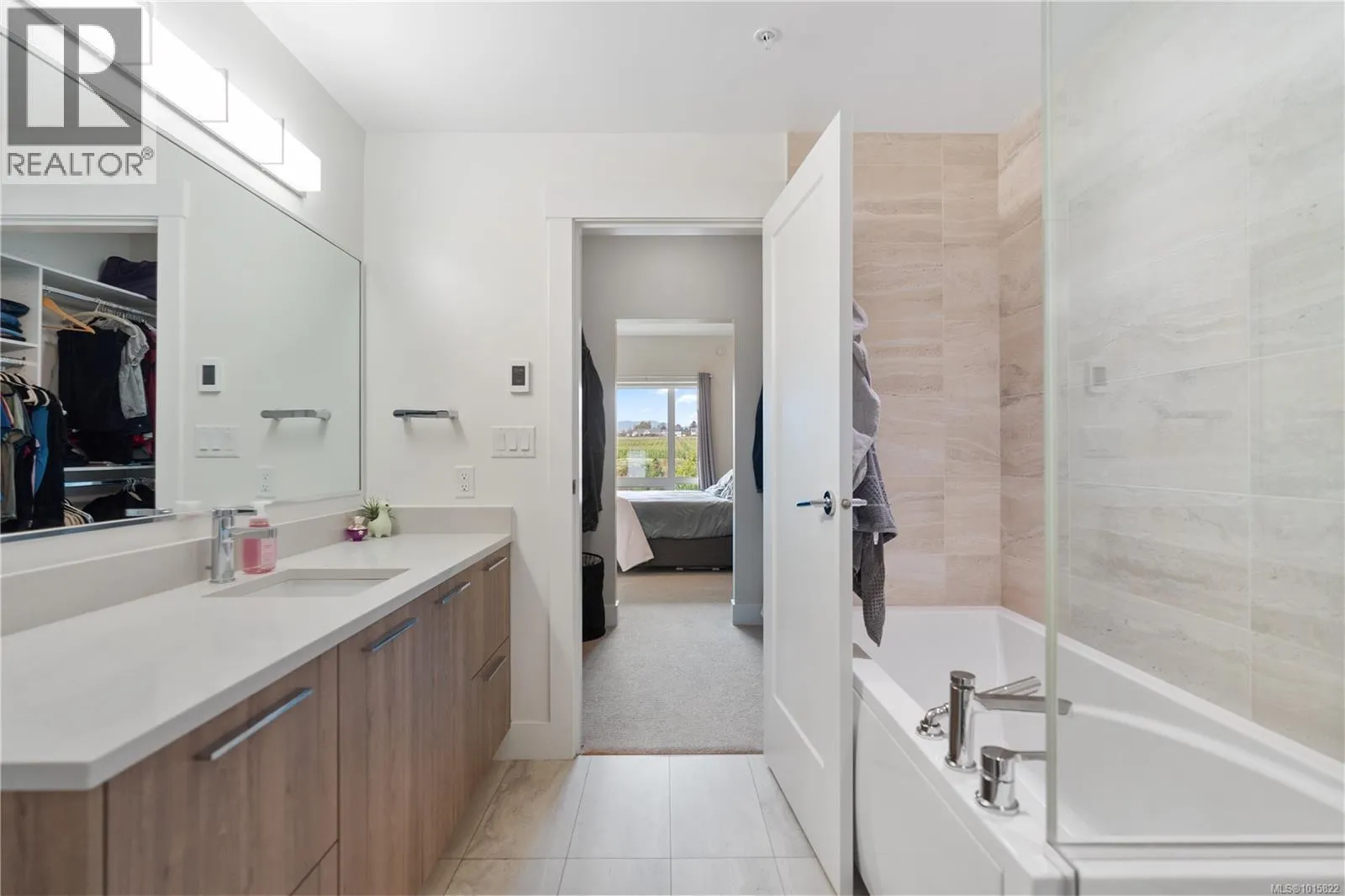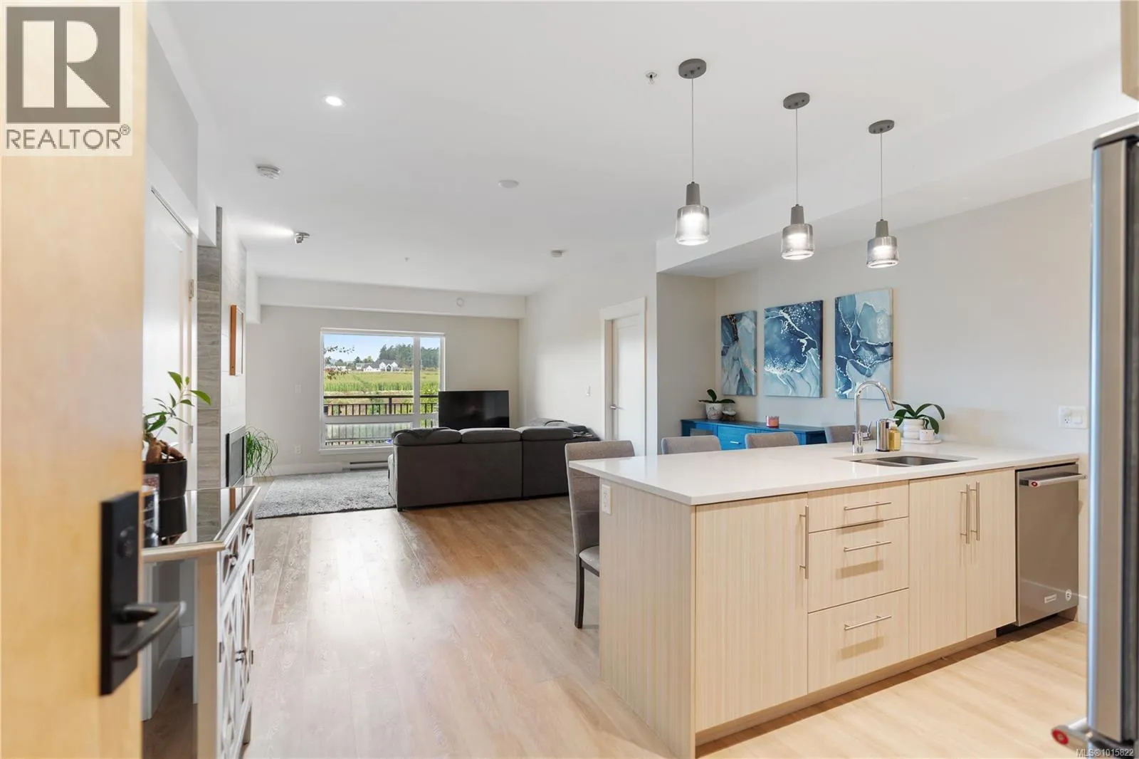 Listed at $44,000 under assessed value! This immaculate 2-bedroom, 2-bath condo offers a smart, open layout with bedrooms on opposite sides, each featuring a spacious walk-in closet and private ensuite. The modern kitchen is equipped with stainless steel appliances and flows seamlessly into a bright living area with 9-foot ceilings and large windows that fill the space with natural light. Enjoy a generous deck, ample storage, and secure underground parking. Pets are welcome! Perfectly located to the ocean, Lochside Trail, and Marigold Café, and only a short drive to Sidney or Victoria, this home combines peaceful, country-style living with easy access to everyday amenities and city convenience. (id:27476)