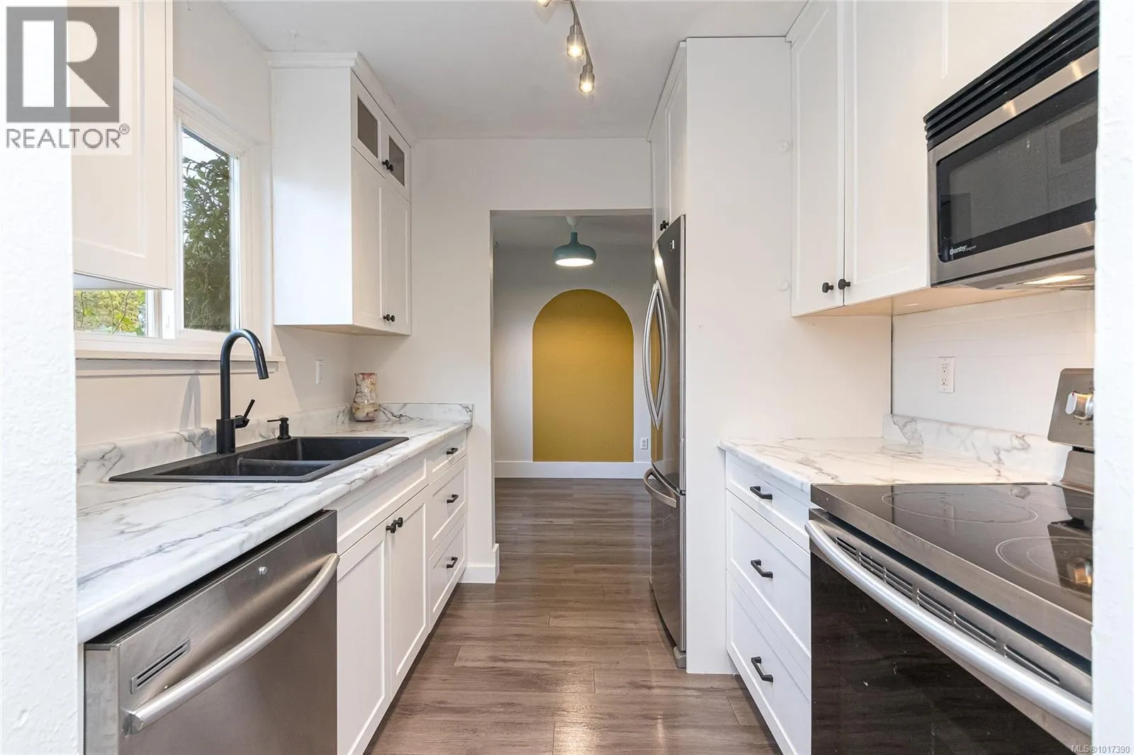 Welcome home to this tastefully updated 3-bedroom end-unit townhome in the heart of Saanichton. Move-in ready with fresh paint, modern lighting, and stylish flooring throughout, this home blends comfort with colourful touches of whimsy. The main level offers a bright kitchen, dining area, powder room, laundry, and a spacious living room opening onto a sunny, fully fenced backyard â perfect for kids, pets, and BBQ gatherings. Upstairs features three bedrooms, including a generous primary with walk-in closet and an updated 4-piece bath. A versatile flex/office/storage space just off the living area adds extra functionality. Enjoy two parking stalls, a large garden shed, and visitor parking. Meadow View is a well-run, family- and pet-friendly strata just steps from Saanichton Village shops and cafes, Centennial Park, and minutes to the hospital, airport, and downtown Victoria. (id:27476)