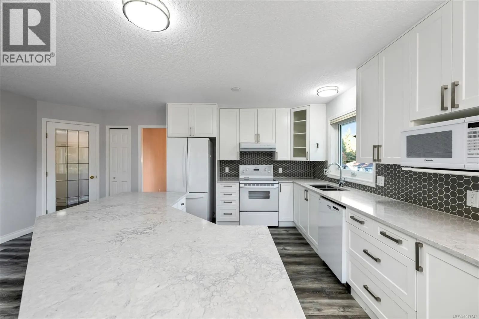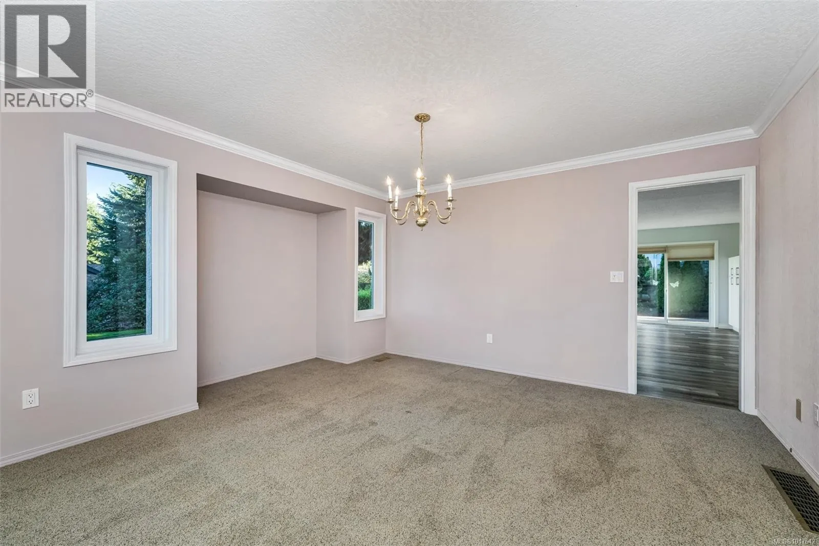 This exceptional Tanner Ridge rancher is a rare find set up on a prime corner lot in a sought-after neighborhood. Offering over 1700 sqft, it features 3 spacious bedrooms, 2 bathrooms, a fantastic kitchen, and a cozy family room that opens to a sunny south-facing deck and patio. The combination living/dining room is ideal for hosting memorable gatherings. Several rooms offer stunning views. The bright, airy interior boasts a functional layout and includes a new heat pump for year-round comfort. Additional highlights include a crawl space, a double garage, and parking for a boat or trailer. Conveniently located near dog parks, Island View Beach, walking trails, Elk Lake, Victoria, the airport, and the ferry, this home is truly a gem. (id:27476)