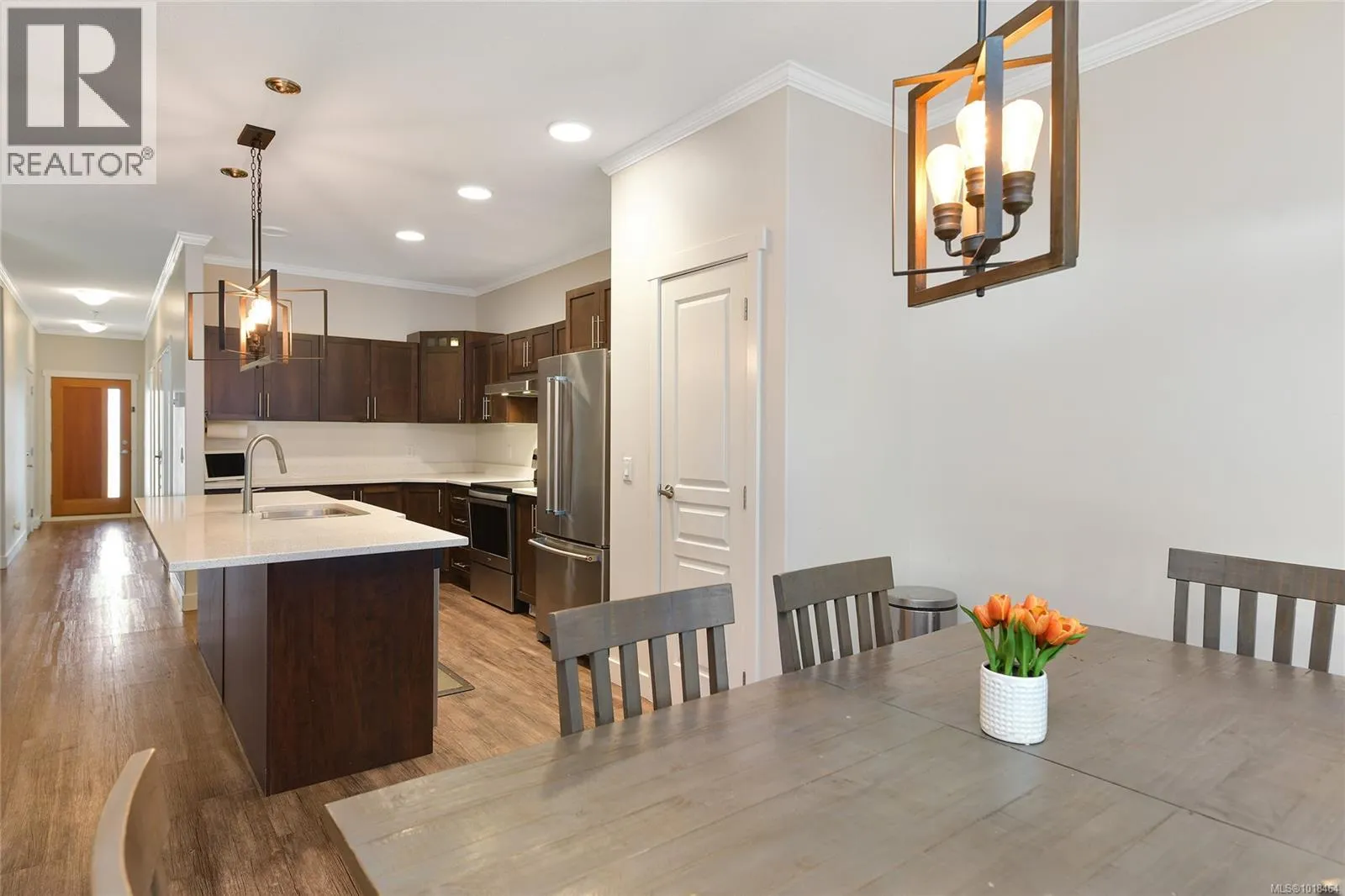 Modern family home with bonus suite and solar upgrade on the largest lot in the development! Welcome to 17 Saanich Ridge Drâa 5 bed, 4 bath home offering 2,384 sq ft of versatile living space. Built in 2018 and located on a quiet cul-de-sac in Central Saanich, this property is ideal for multi-generational living or rental income with a fully self-contained 1 bed suite. The main level features an open-concept layout with stylish light fixtures, spacious kitchen with large island, bright living/dining areas, and a convenient main floor bedroom. Upstairs offers 3 more bedrooms, including a primary with ensuite and walk-in closet. Enjoy a $22,000 solar panel package, low-maintenance yard, large single garage, and parking for four. Minutes to schools, parks, shops, and the oceanâthis is a rare opportunity to own a smart, functional, and stylish home in a growing community. Contact Shane Cyr @ eXp Realty to book your private showing 250-893-9164 (id:27476)